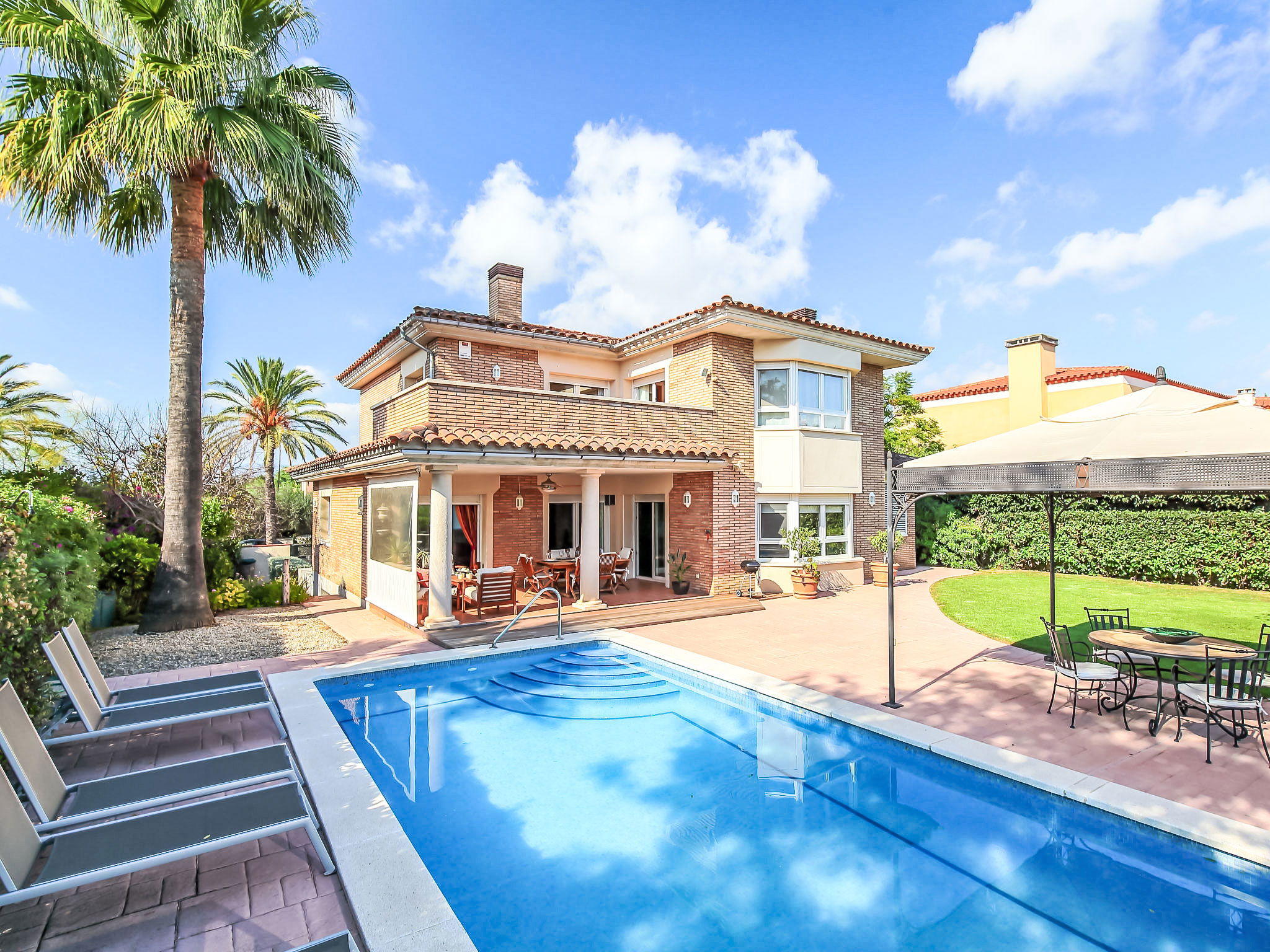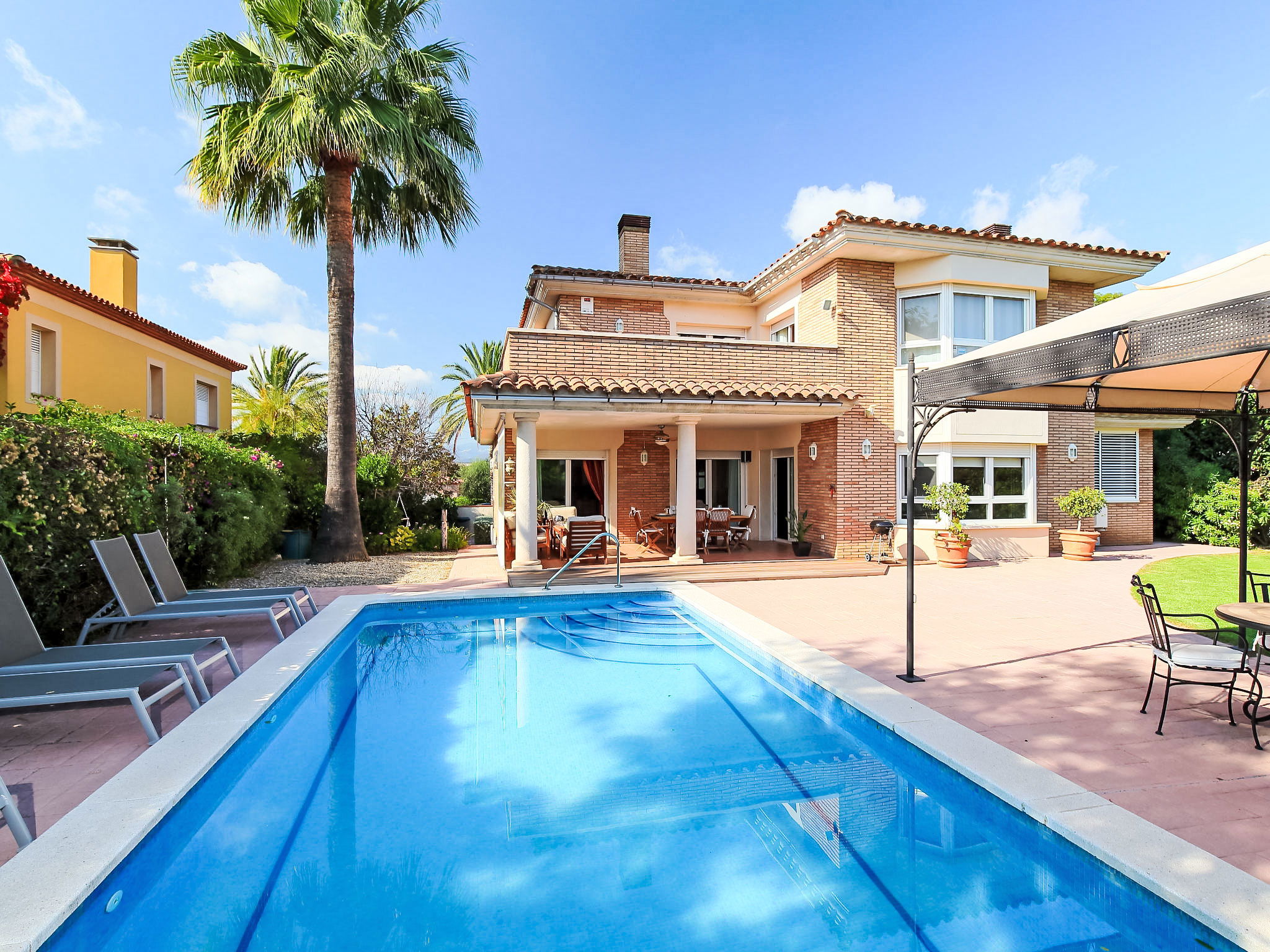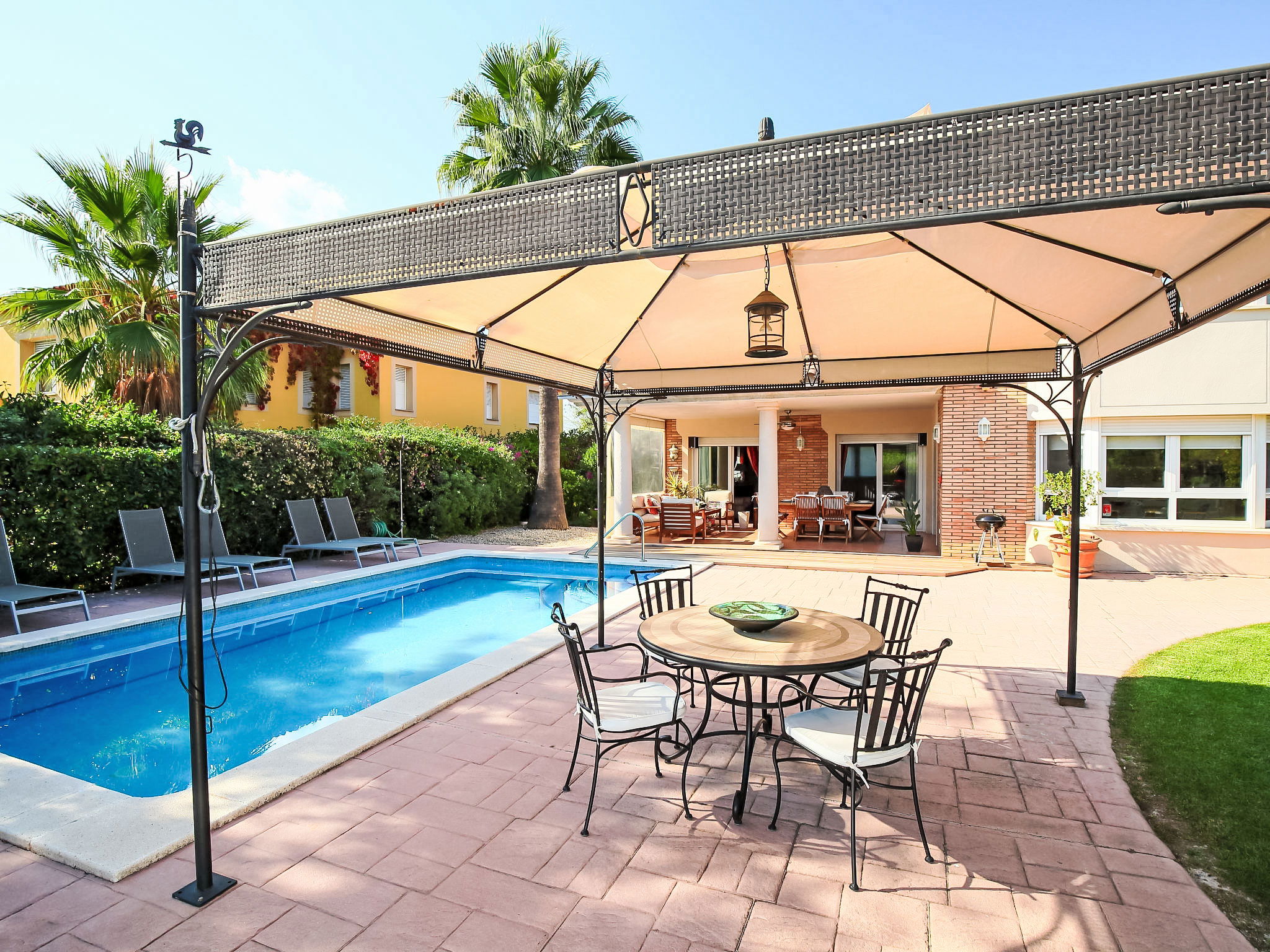 Gaudi Reus Golf 9 km from Cambrils: Very large, luxurious villa "Bertoni Golf & Sea", 2 storeys. Outside the resort, 3 km from the centre of Reus, in the district Les Palemeres d'Aigüesverds, in a quiet position residential area (villas), traffic calmed area, 9 km from the sea, 9 km from the beach, on the golf course, north-east facing position. For shared use: tennis (extra), table tennis, basketball, children's playground (slide). Private: beautiful garden to relax, swimming pool angular, heated (8 x 4 m, seasonal availability: 01.Jan. - 31.Dec.) with internal staircase. Outdoor shower, pool maintenance by the owner/gardener. In the complex: restaurant, bar. Public parking on the road. Grocery 3 km, supermarket 3 km, shopping centre 7 km, restaurant, bar, café 600 m, pedestrian zone 3 km, bus stop "Reus" 3 km, railway station "Reus" 7 km. Sports harbour 12 km, golf course (18 hole) 25 m, surf school 12 km, sailing school 12 km, tennis 600 m, riding stable 3 km, cycle lane 100 m. Nearby attractions: Port Aventura 10 km, Aquum Spa 12 km. Hiking paths: La Mussara 40 km. Please note: car recommended. Baby equipment on request. The owner does not accept any youth groups. Loading and unloading of baggage is possible at the holiday house. 24hr guard. Airfield close by. Neighbourhood highly sensitive to noise. Quietness and good behaviour expected.