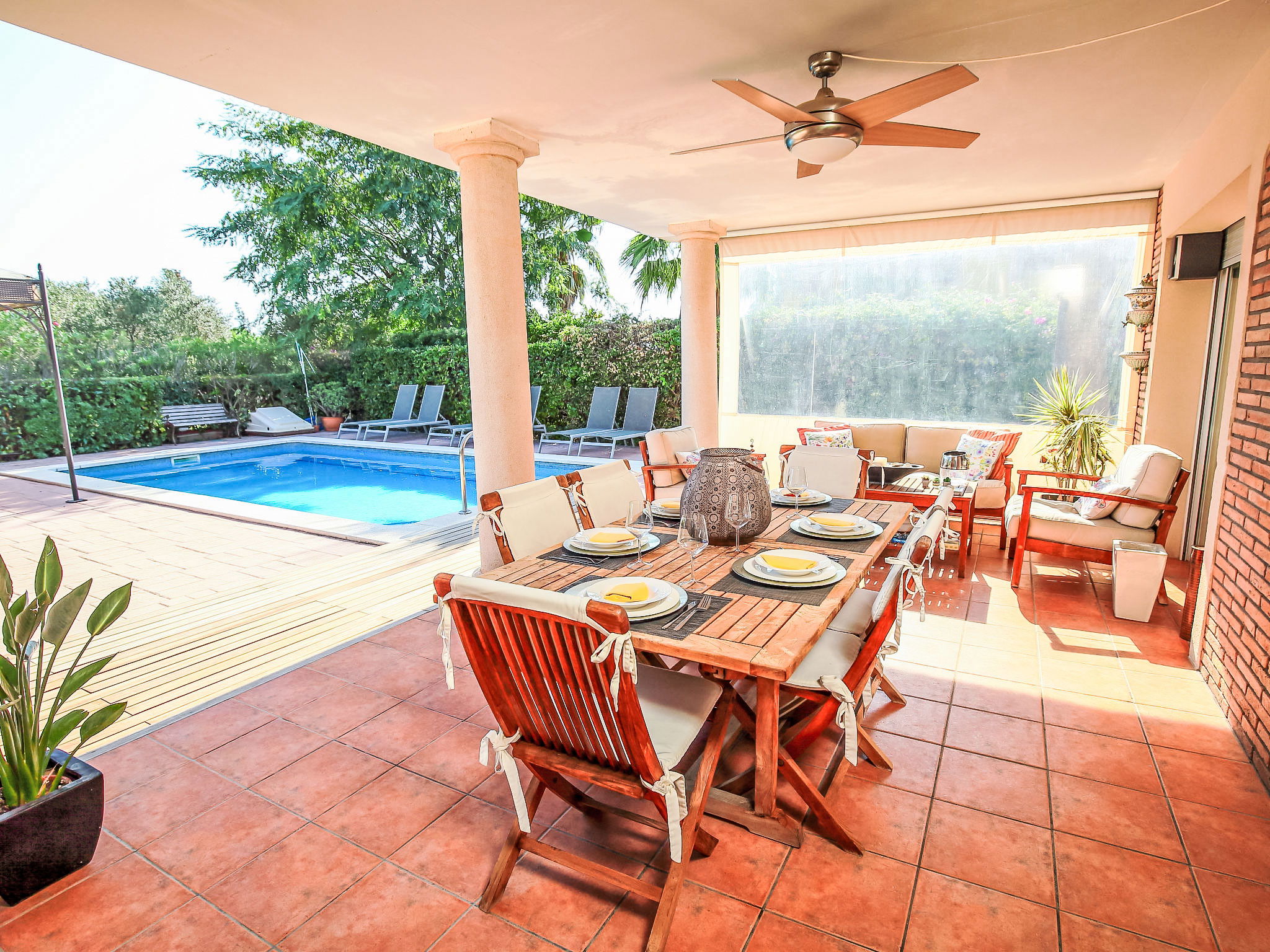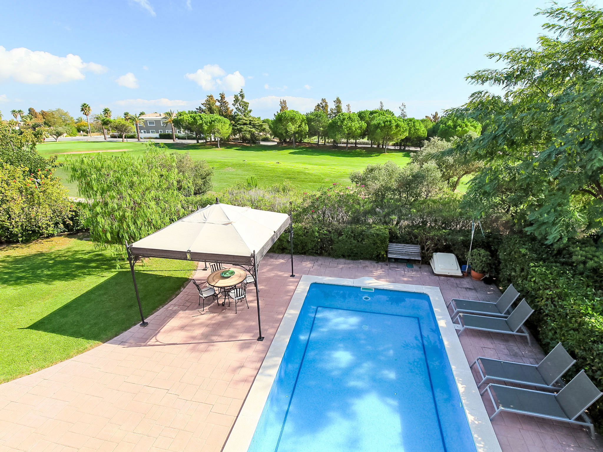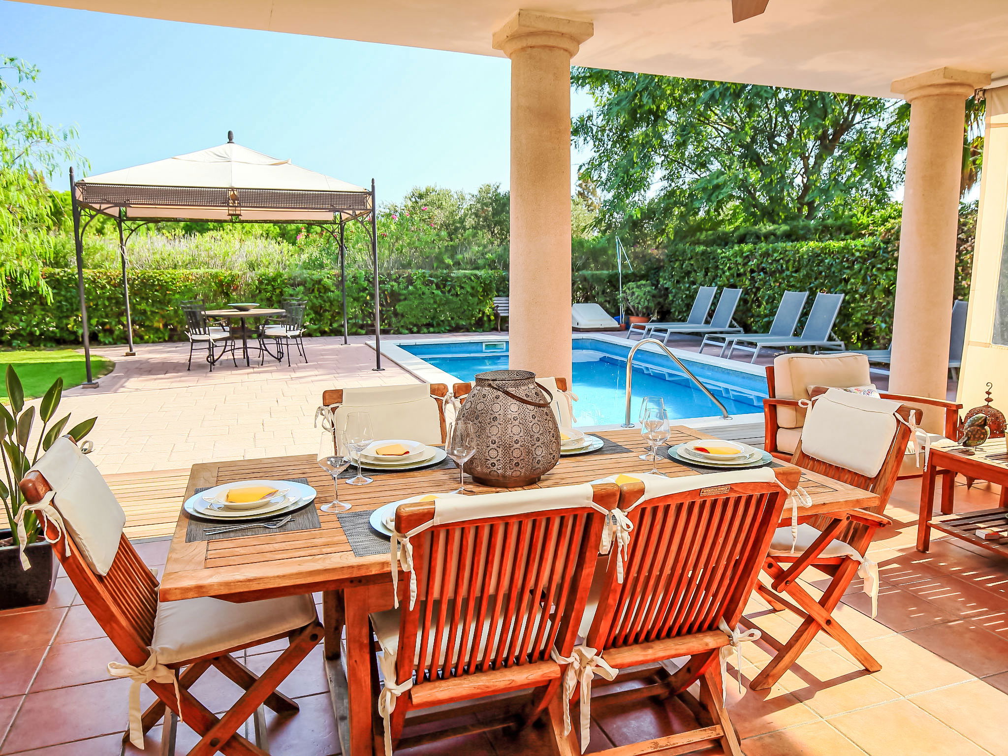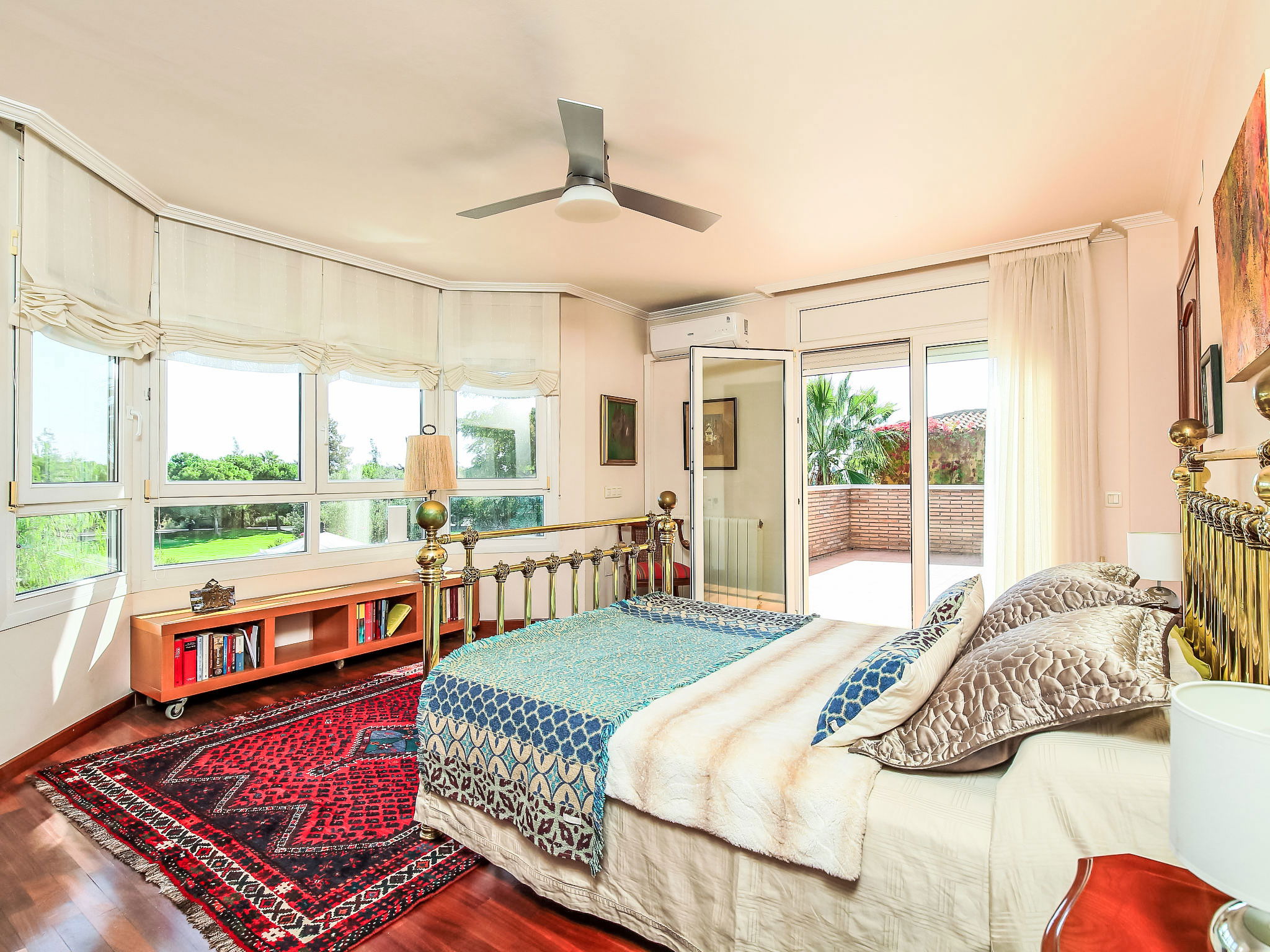 Gaudi Reus Golf 9 km from Cambrils: Very large, luxurious villa "Bertoni Golf & Sea", 2 storeys. Outside the resort, 3 km from the centre of Reus, in the district Les Palemeres d'Aigüesverds, in a quiet position residential area (villas), traffic calmed area, 9 km from the sea, 9 km from the beach, on the golf course, north-east facing position. For shared use: tennis (extra), table tennis, basketball, children's playground (slide). Private: beautiful garden to relax, swimming pool angular, heated (8 x 4 m, seasonal availability: 01.Jan. - 31.Dec.) with internal staircase. Outdoor shower, pool maintenance by the owner/gardener. In the complex: restaurant, bar. Public parking on the road. Grocery 3 km, supermarket 3 km, shopping centre 7 km, restaurant, bar, café 600 m, pedestrian zone 3 km, bus stop "Reus" 3 km, railway station "Reus" 7 km. Sports harbour 12 km, golf course (18 hole) 25 m, surf school 12 km, sailing school 12 km, tennis 600 m, riding stable 3 km, cycle lane 100 m. Nearby attractions: Port Aventura 10 km, Aquum Spa 12 km. Hiking paths: La Mussara 40 km. Please note: car recommended. Baby equipment on request. The owner does not accept any youth groups. Loading and unloading of baggage is possible at the holiday house. 24hr guard. Airfield close by. Neighbourhood highly sensitive to noise. Quietness and good behaviour expected.