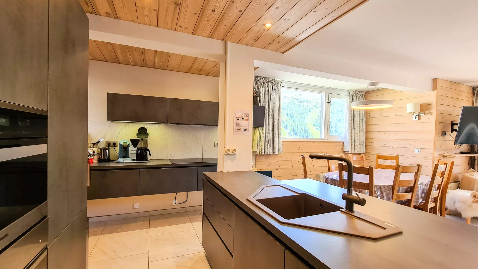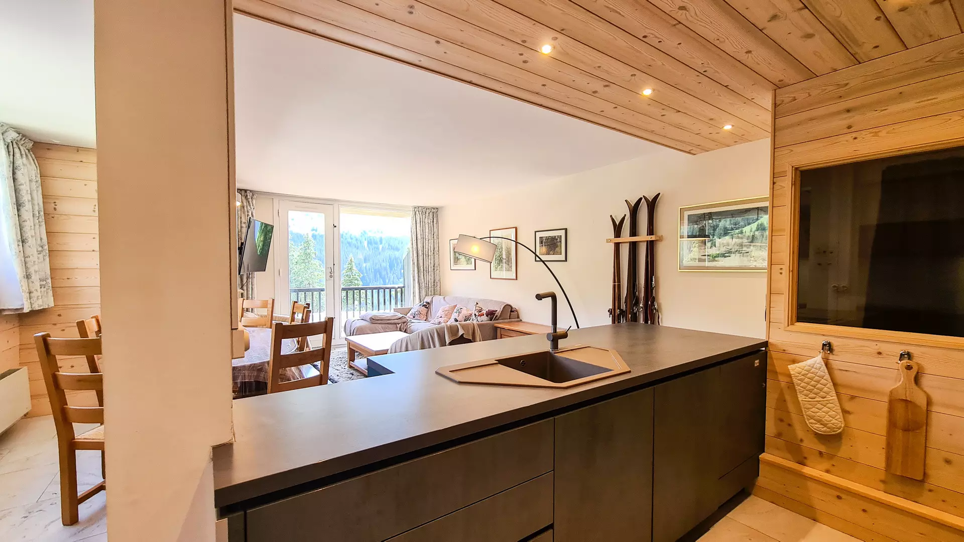 Large balcony facing south and east. Very quiet. Located at the foot of the slopes and the ski school meeting point.
