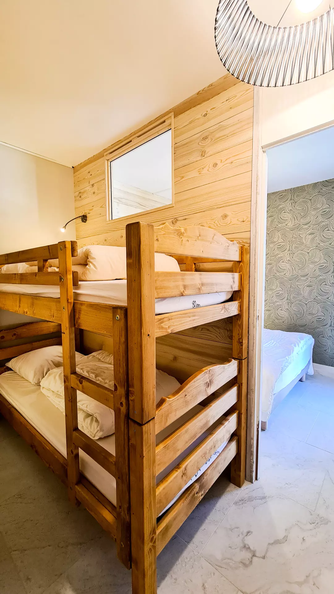 Possibility of booking it with 2 rooms + adjoining 6-person cabin to make an apartment for 13 to 14 people