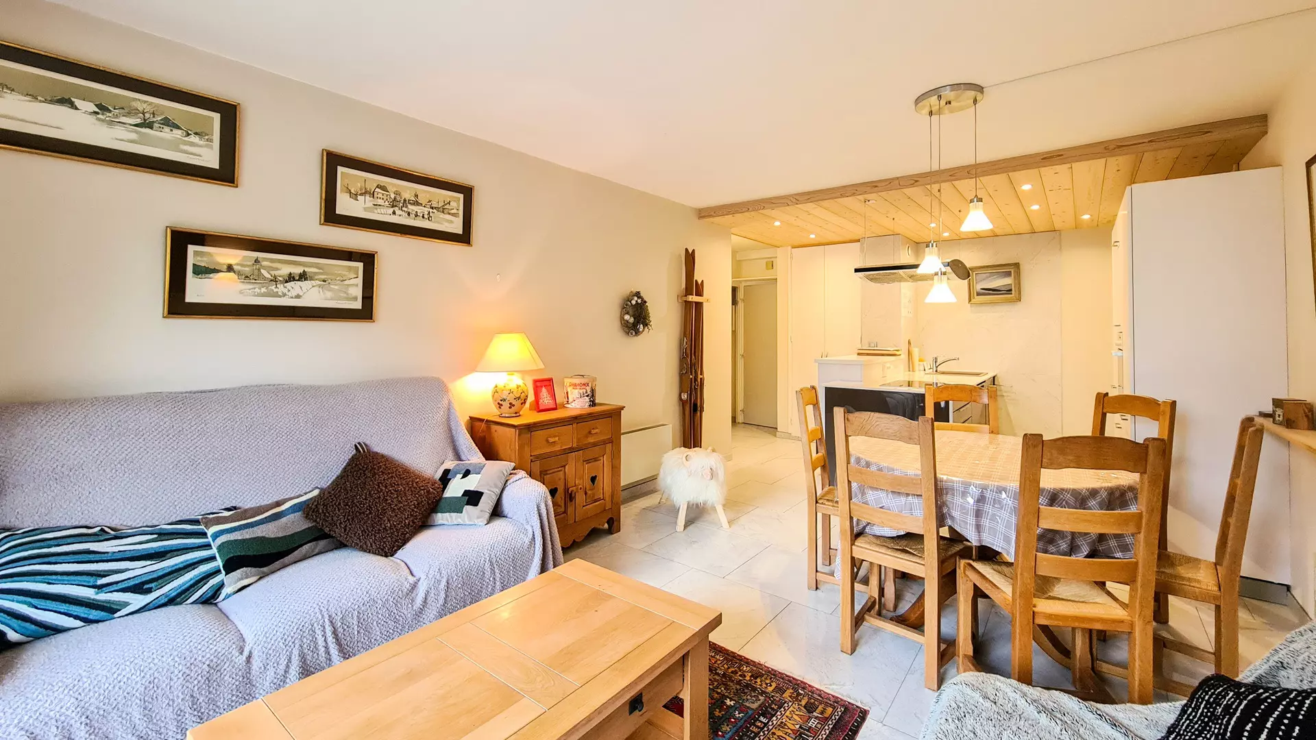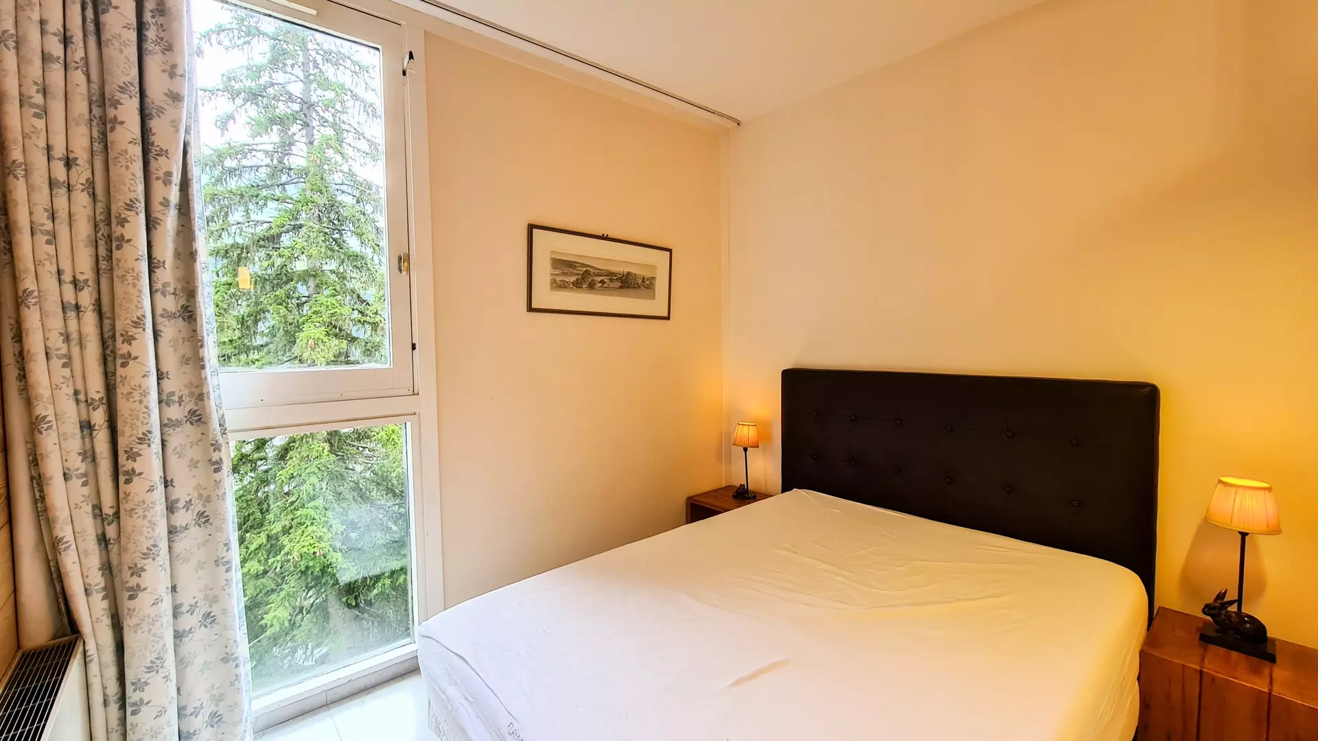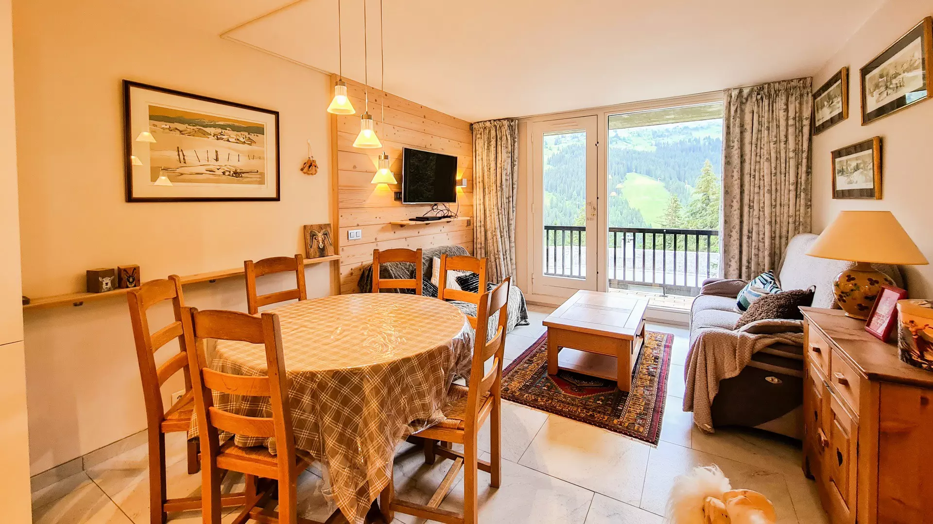 Large 2-room cabin South comfort 48 m2 on the 1st floor (entrance floor, only 2 steps to access) very spacious and facing South. Large balcony. Very quiet. Located at the foot of the slopes and the ski school meeting point