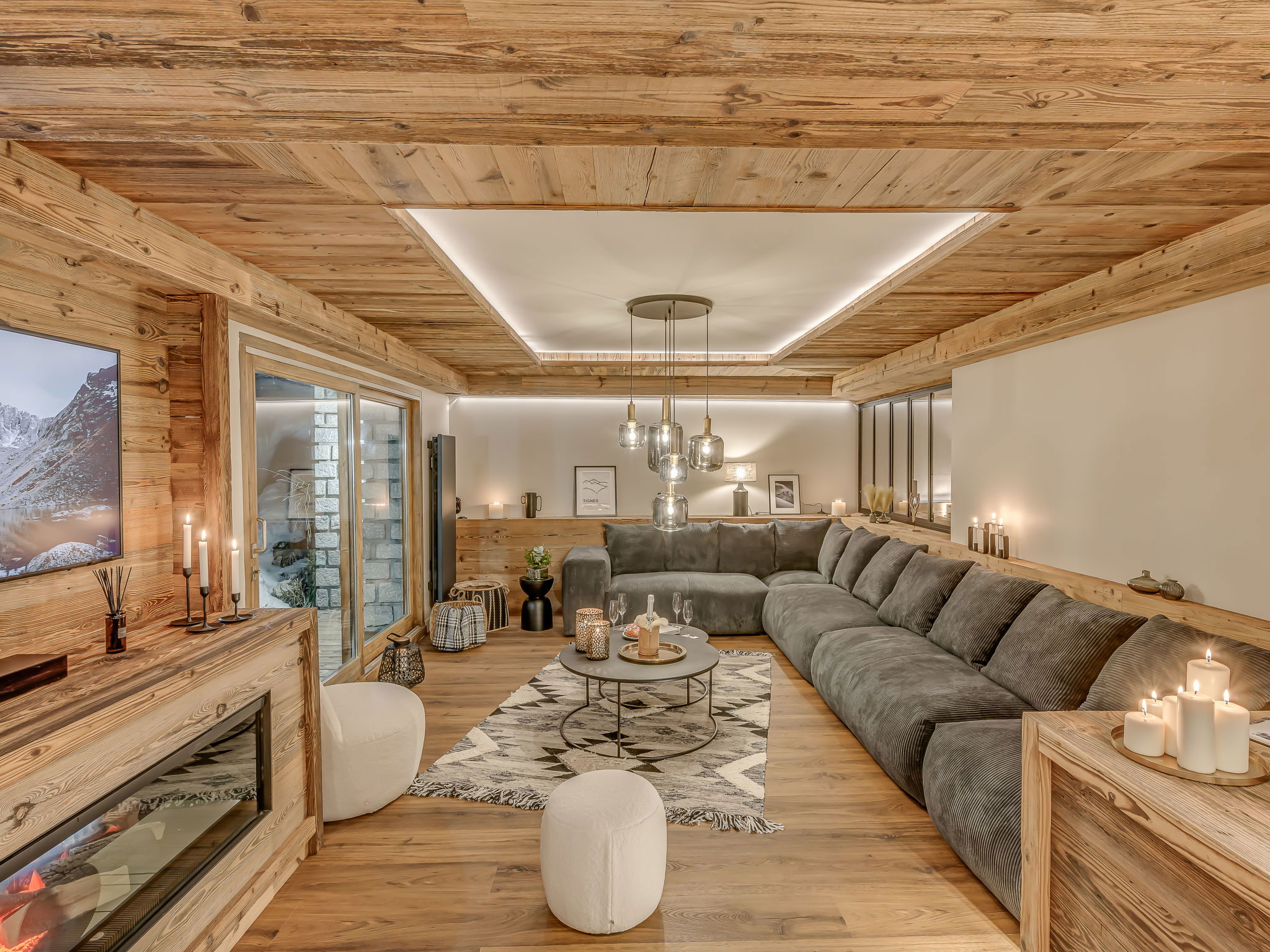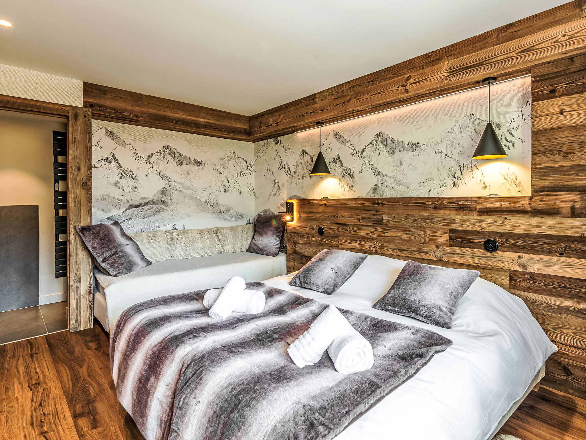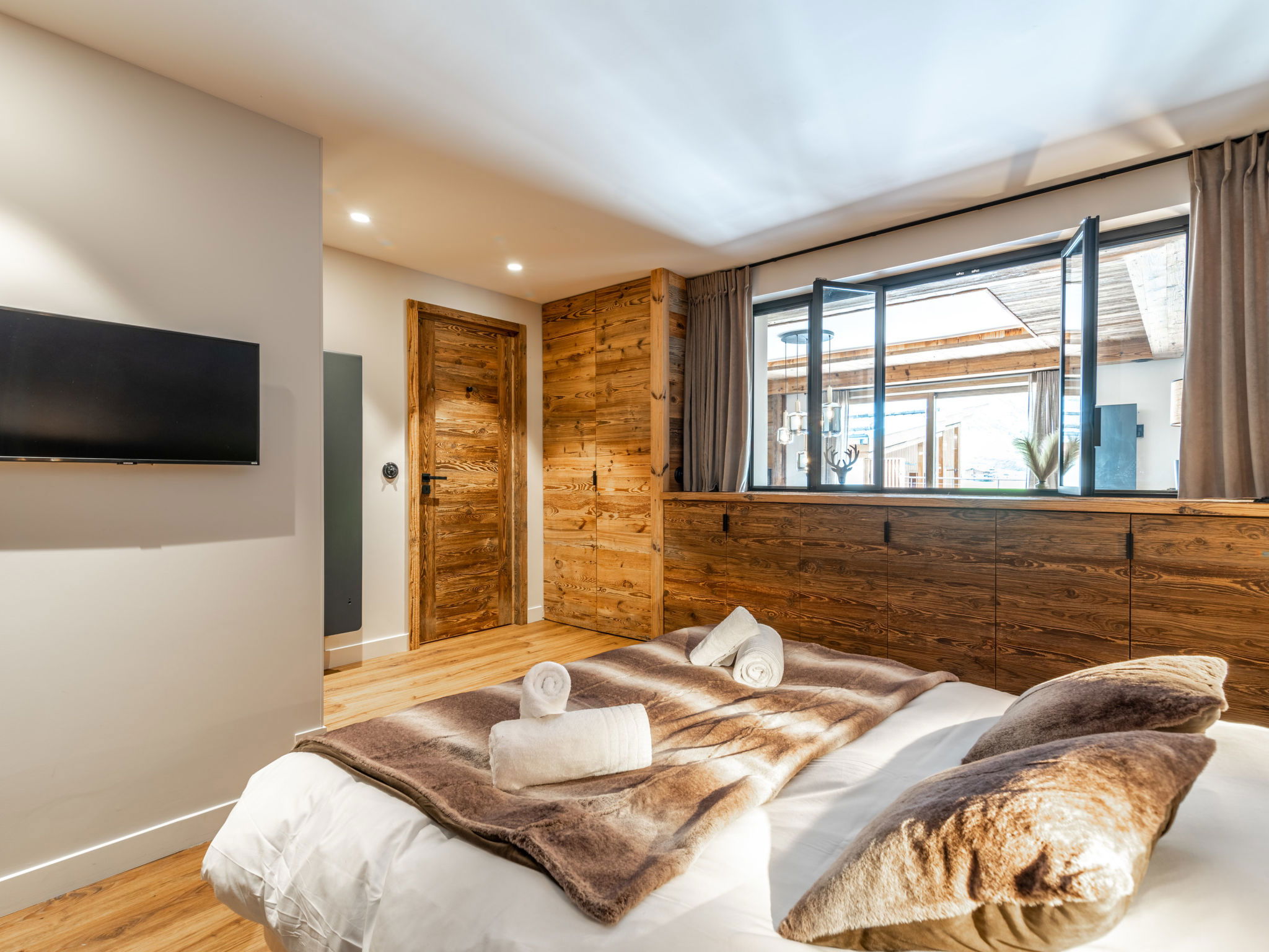 "Le Blanc des Cimes", 3-room apartment 142 m2 on 2nd floor. Spacious, fully renovated in 2023, luxurious and tasteful furnishings: lounge with open-hearth fireplace, TV and international TV channels (flat screen), electric shutters. Exit to the terrace. Dining room with panoramic window. 1 room with 1 bed (80 cm, length 190 cm), 1 french bed (1 x 180 cm, length 200 cm), shower/WC, TV, satellite TV and electric shutters. Exit to the terrace. 1 room, window onto the living room with 1 bed (80 cm, length 190 cm), 1 french bed (1 x 180 cm, length 200 cm), shower/WC and TV (flat screen). Luggage room with hand-basin and boiler (999 litres). Entrance hall with separate WC. Large, open kitchen (oven, dishwasher, 4 induction hot plates, toaster, kettle, microwave, freezer, electric coffee machine, Capsules for coffee machine (Nespresso) extra, raclette grill, cooking island, fondue Set (cheese)). Large terrace 80 m2, south-east facing position. Terrace furniture. Very beautiful panoramic view of the lake and the mountains. Facilities: washing machine, dryer, iron, hair dryer. Internet (WiFi). Garage. Please note: non-smokers only. Smoke alarm. Offer by a private individual according to Art. 155, IV of CGI.