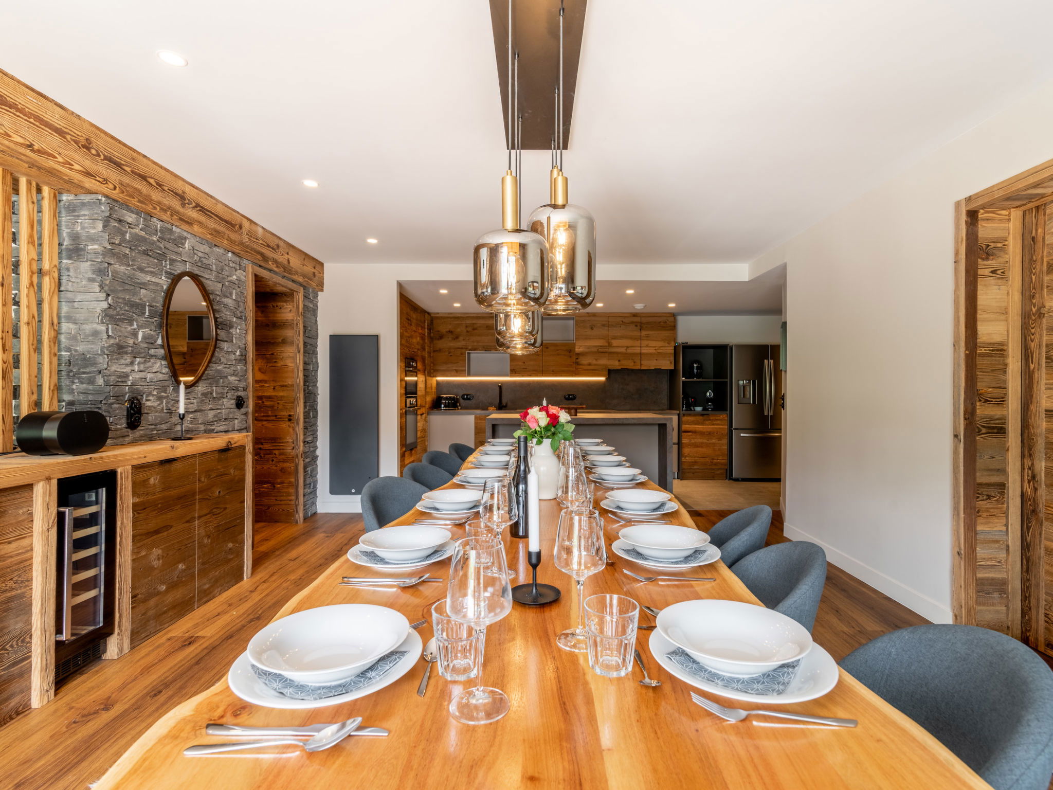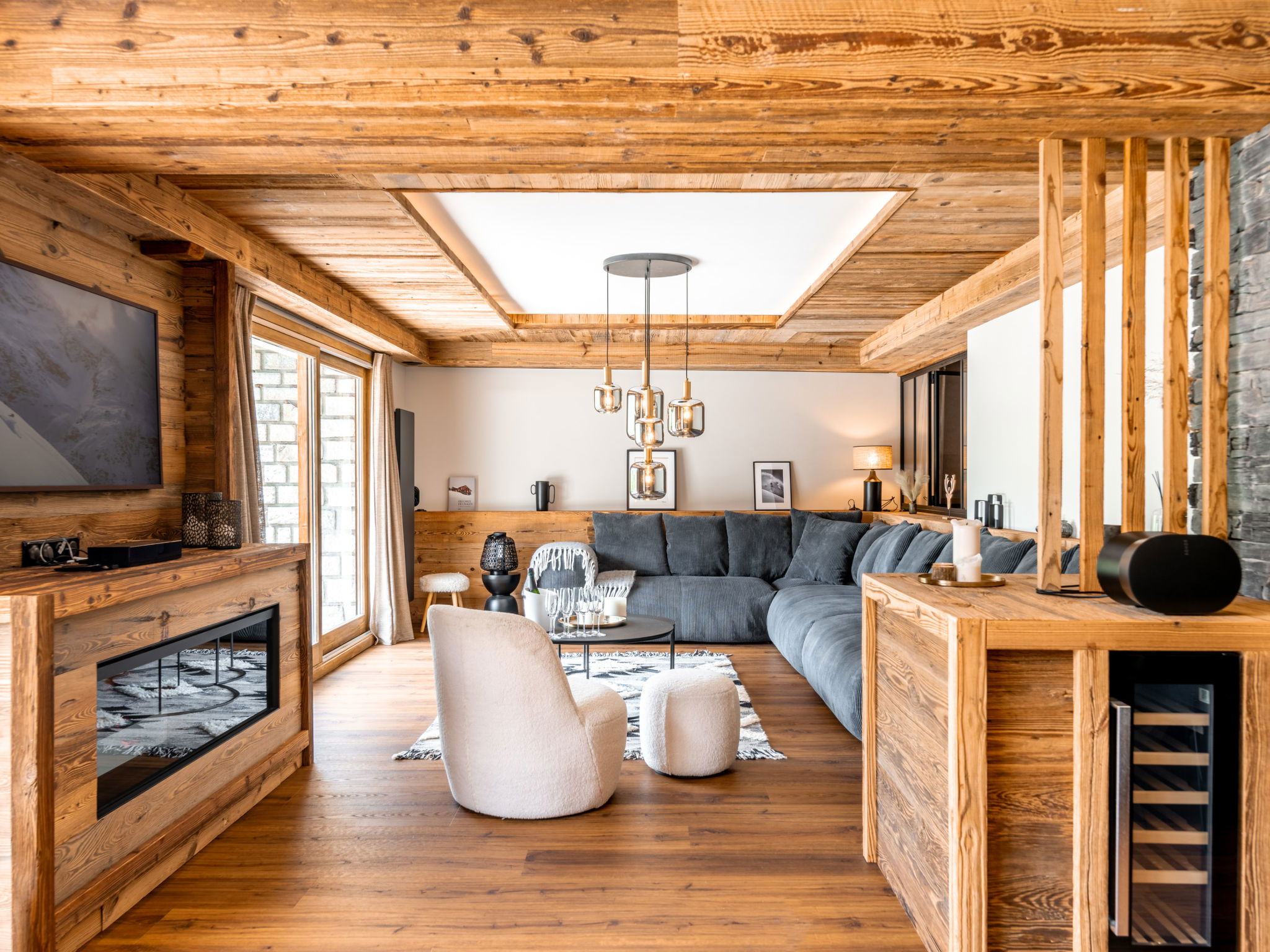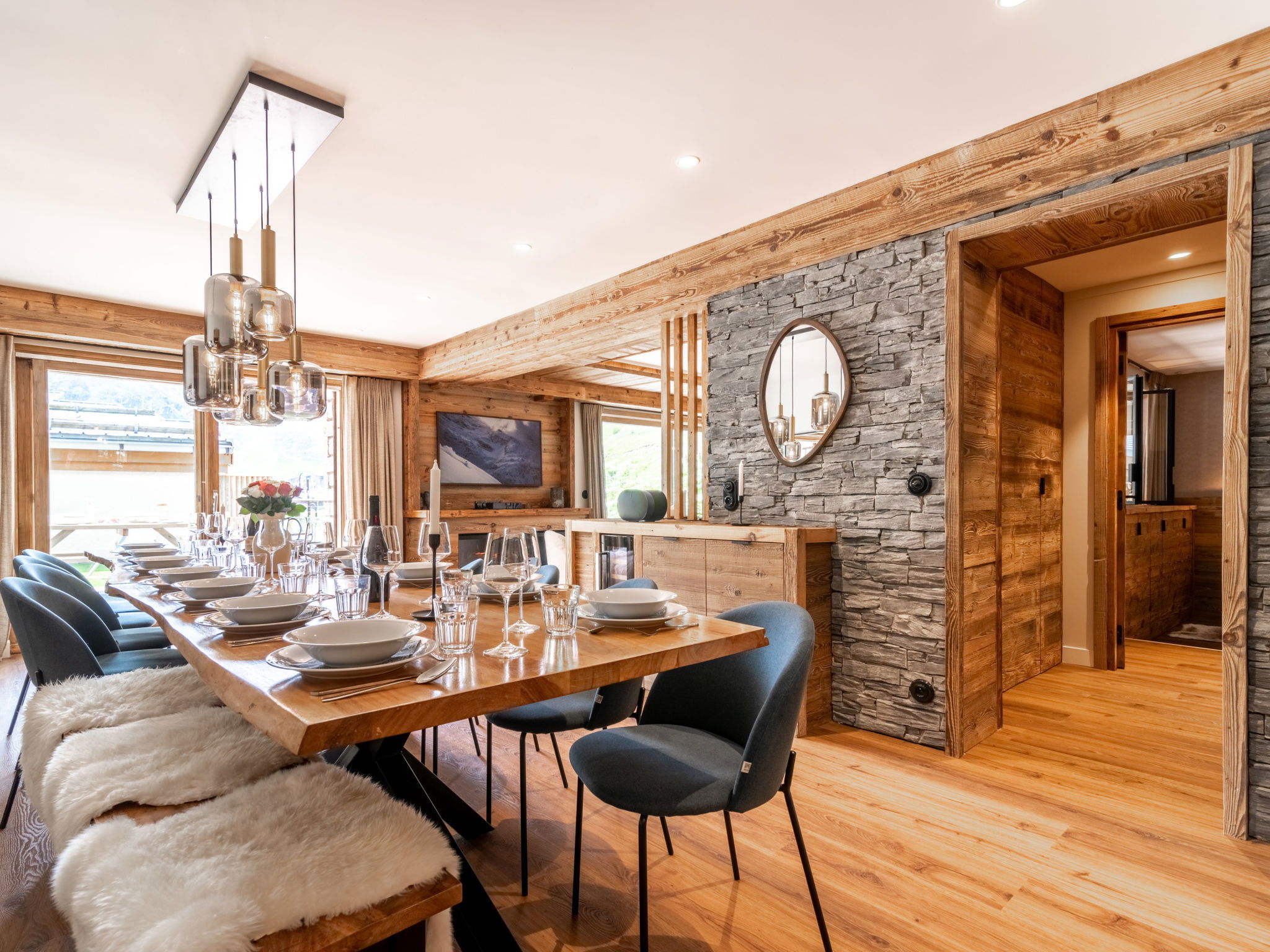 "Le Blanc des Cimes", 3-room apartment 142 m2 on 2nd floor. Spacious, fully renovated in 2023, luxurious and tasteful furnishings: lounge with open-hearth fireplace, TV and international TV channels (flat screen), electric shutters. Exit to the terrace. Dining room with panoramic window. 1 room with 1 bed (80 cm, length 190 cm), 1 french bed (1 x 180 cm, length 200 cm), shower/WC, TV, satellite TV and electric shutters. Exit to the terrace. 1 room, window onto the living room with 1 bed (80 cm, length 190 cm), 1 french bed (1 x 180 cm, length 200 cm), shower/WC and TV (flat screen). Luggage room with hand-basin and boiler (999 litres). Entrance hall with separate WC. Large, open kitchen (oven, dishwasher, 4 induction hot plates, toaster, kettle, microwave, freezer, electric coffee machine, Capsules for coffee machine (Nespresso) extra, raclette grill, cooking island, fondue Set (cheese)). Large terrace 80 m2, south-east facing position. Terrace furniture. Very beautiful panoramic view of the lake and the mountains. Facilities: washing machine, dryer, iron, hair dryer. Internet (WiFi). Garage. Please note: non-smokers only. Smoke alarm. Offer by a private individual according to Art. 155, IV of CGI.