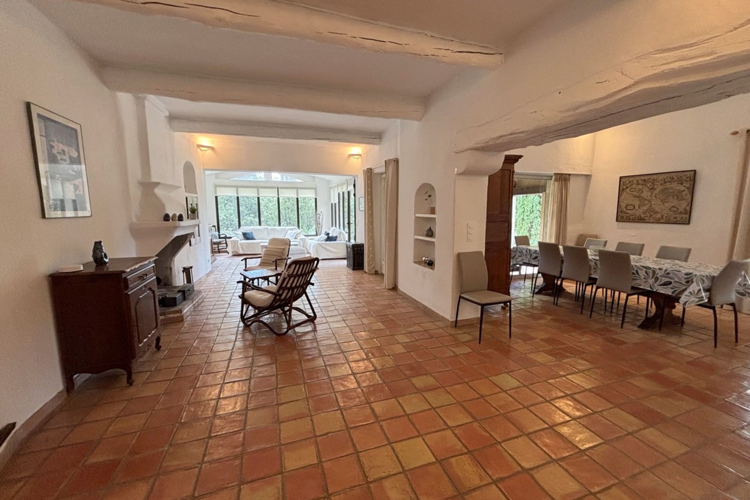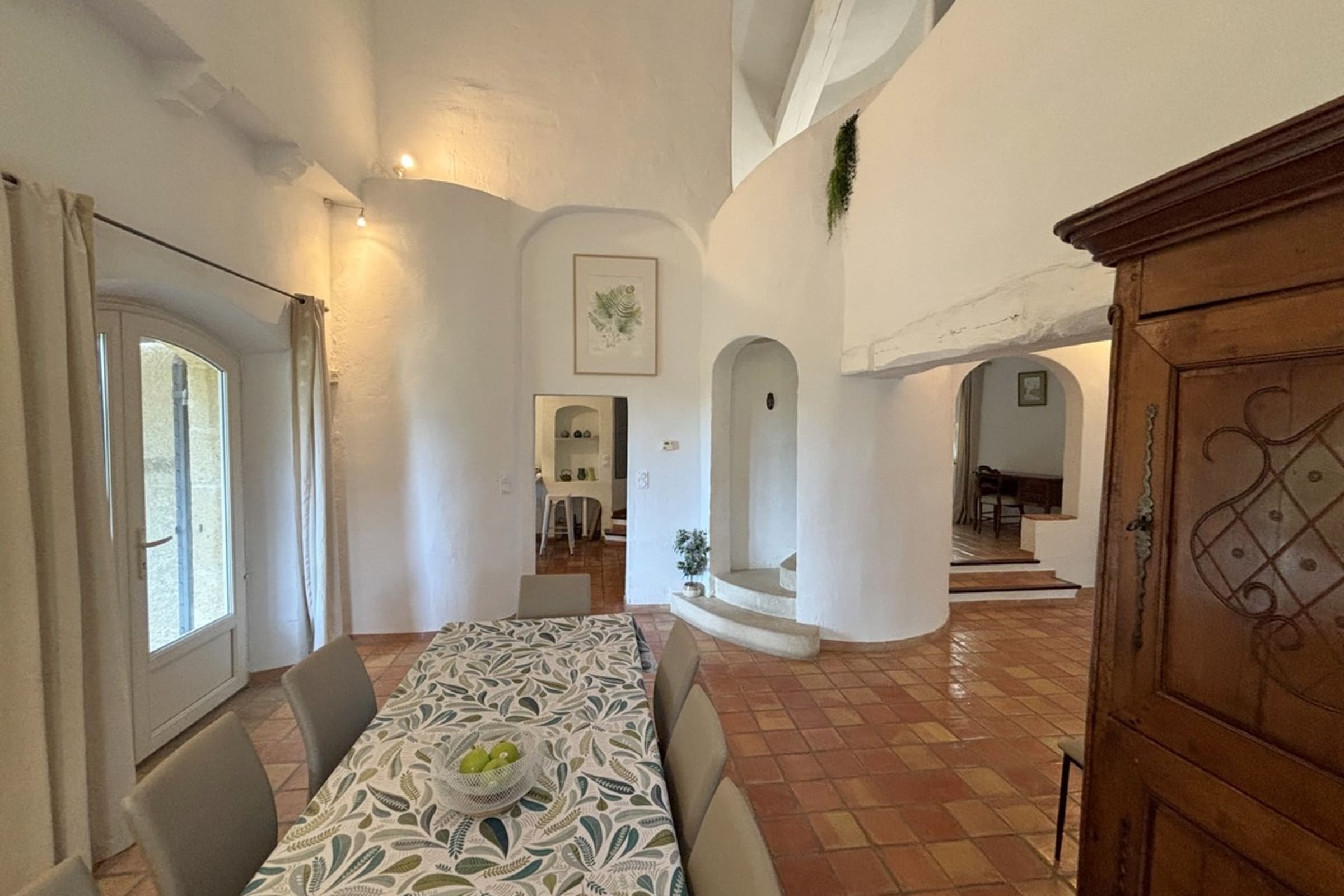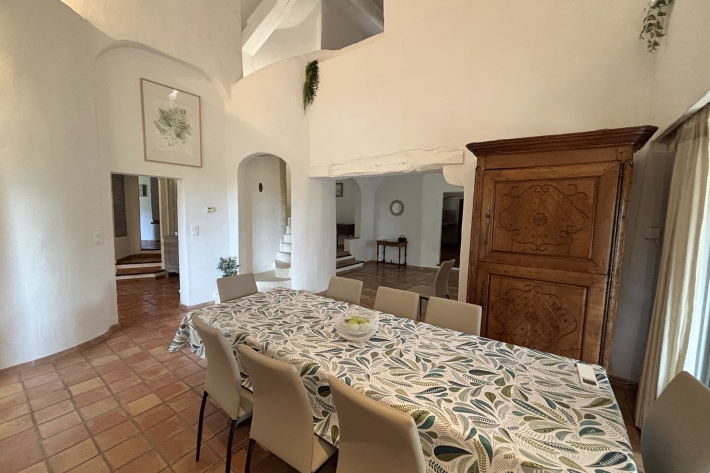 * Dining room with a large table for convivial moments.