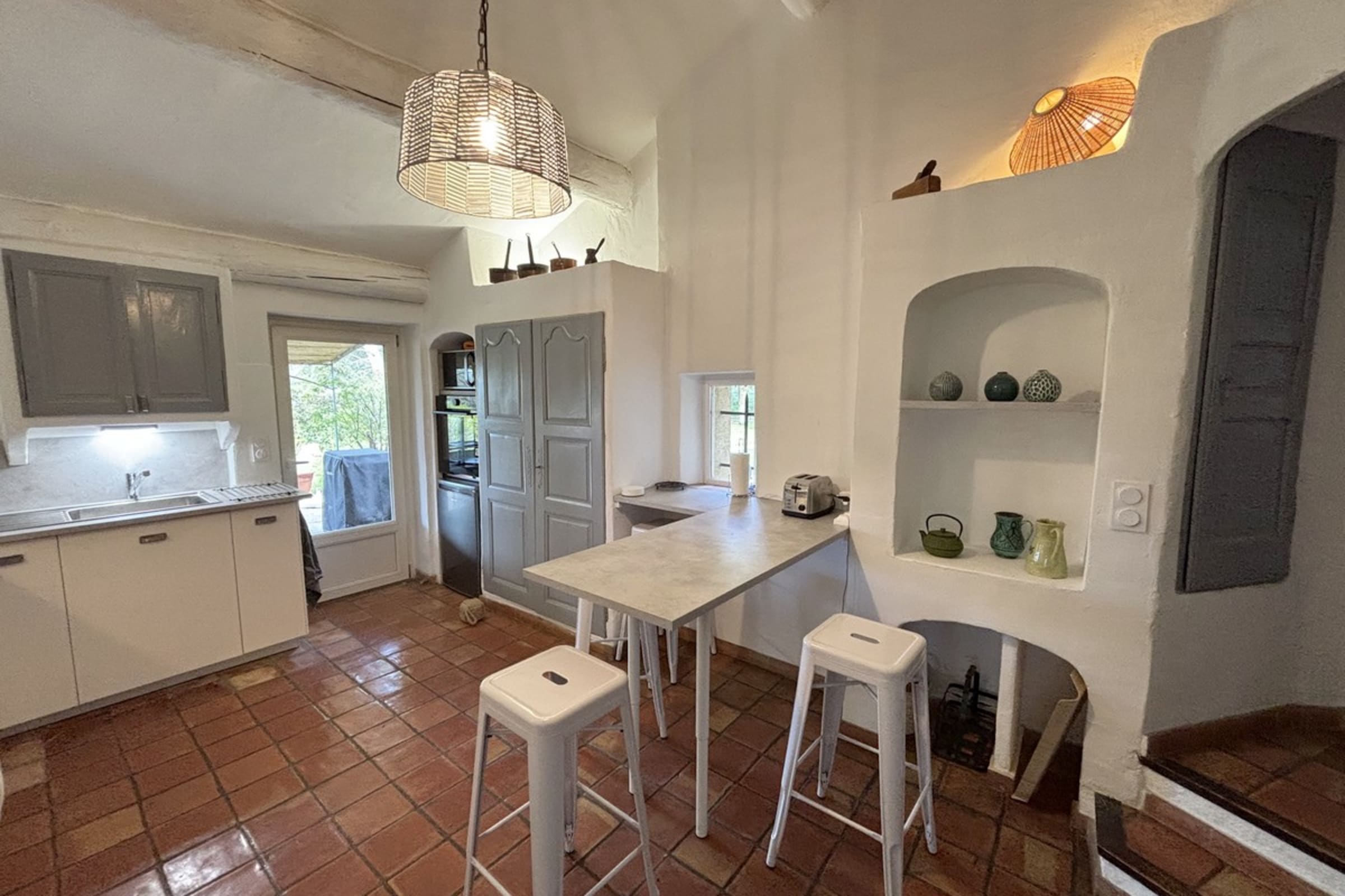 * Fully equipped kitchen with direct access to the terrace.