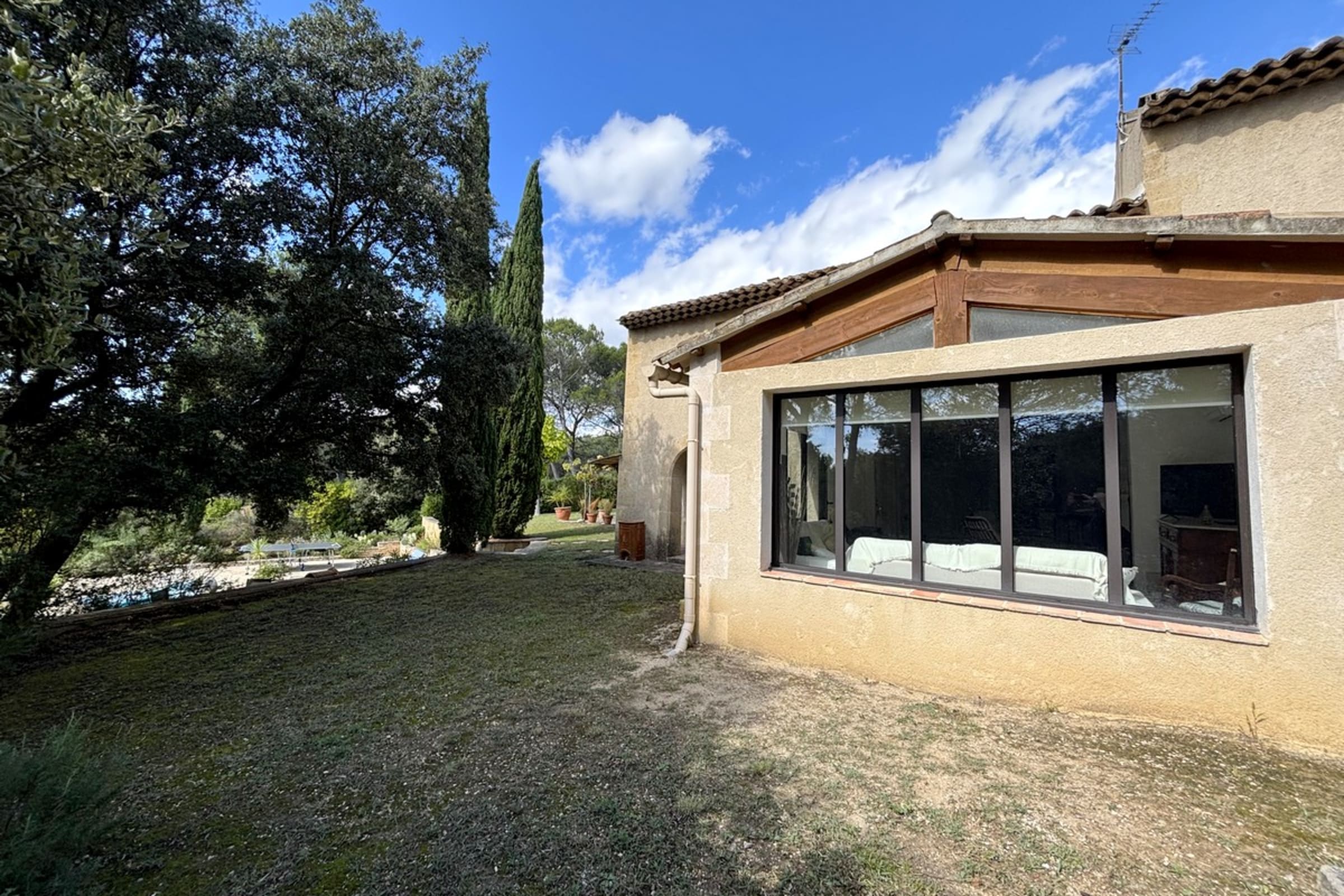 * 6000m² garden with wooded areas and lawn.