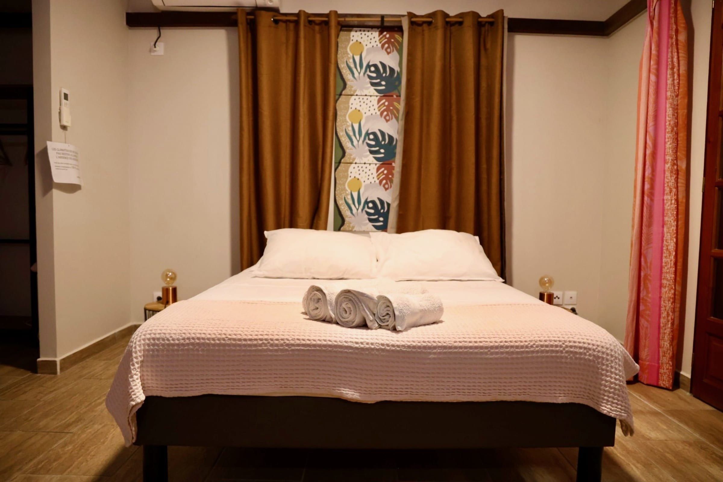 Welcome to your tropical cocoon in Sainte-Anne : The Orchyd & Ka Residence comprises 5 bungalows accommodating up to 16 people. Nestling in the heart of a superb exotic garden, Kaz Orchidée Oncidium promises you a peaceful and comfortable stay. This bright, refined 44 m² bungalow is ideal for two people, with a bedroom equipped with a 160 cm double bed and a modern bathroom with walk-in shower.