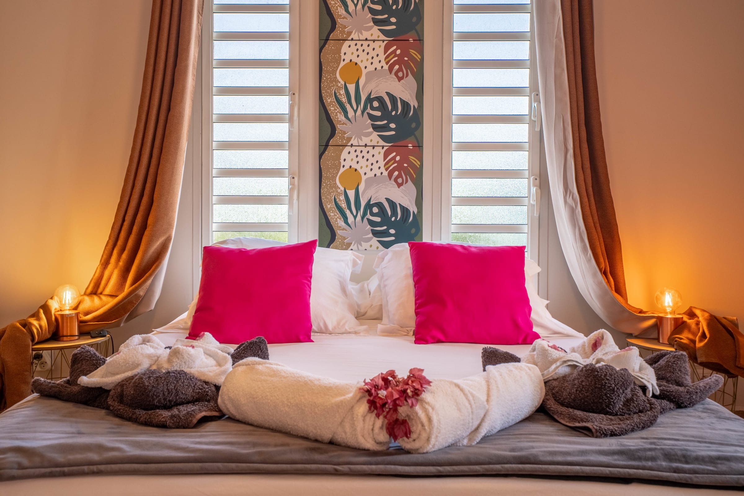 Welcome to your peaceful cocoon in the West Indies: the Orchyd & Ka Residence, with its 5 bungalows sleeping up to 16 people. Nestling in the heart of an exotic garden in Sainte-Anne, your Kaz Orchidée Vanda bungalow promises an experience of une conciergerie and escape. This bright, elegant accommodation comfortably sleeps two in its modern 44 m², offering a bedroom with a cosy 160 cm bed and a contemporary bathroom with walk-in shower.