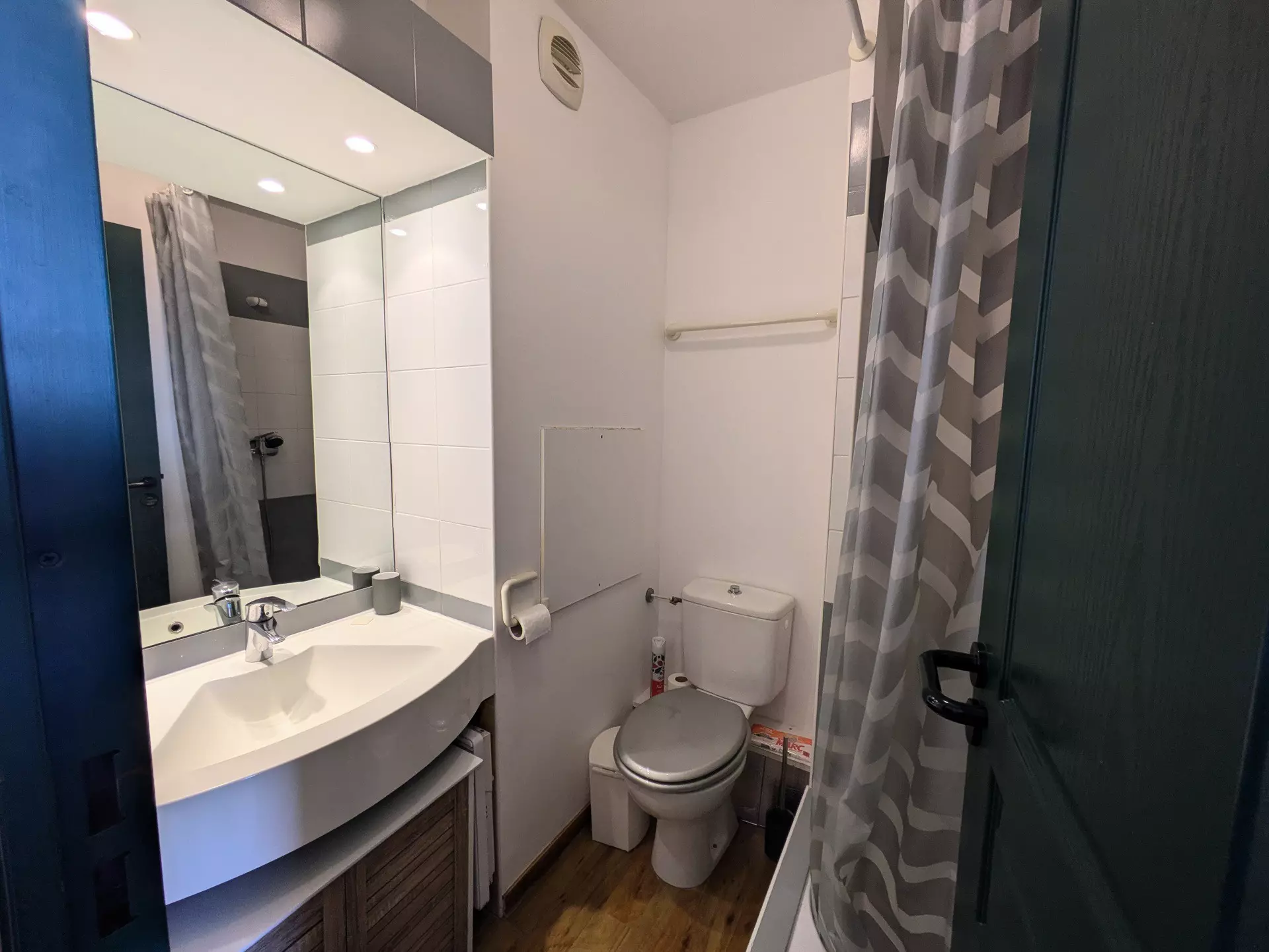 Second small bathroom with shower, sink and toilet.