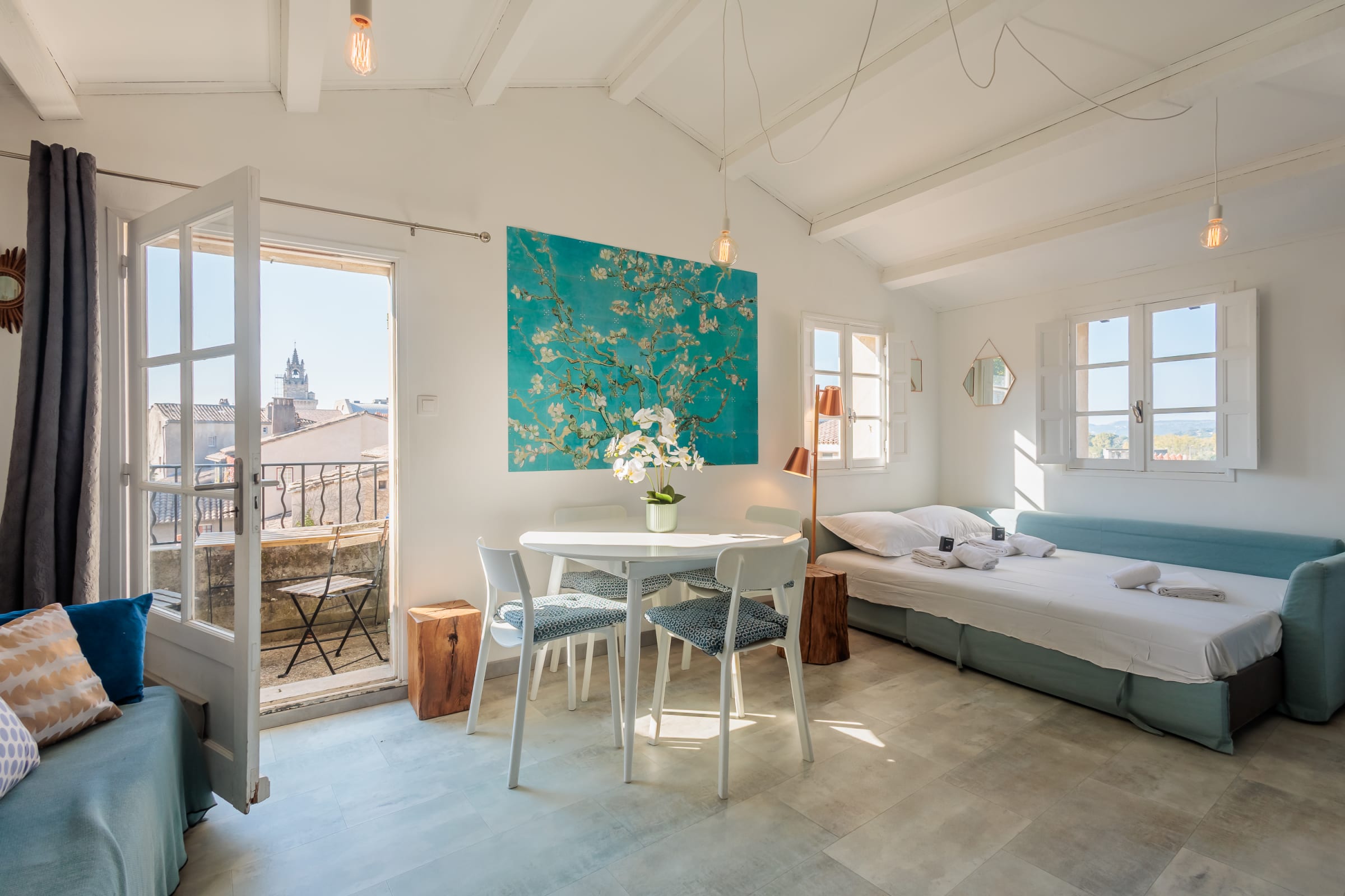 The Palais des Papes district is the historic heart of Avignon, offering easy access to historic sites and cultural activities. You can explore the Palais des Papes, stroll along the Rhône, or visit the Petit Palais museum. For gourmets, the restaurants "le 46" and "L'horloge" are a must for discovering local cuisine. The city's lively streets and markets offer an authentic and vibrant experience.