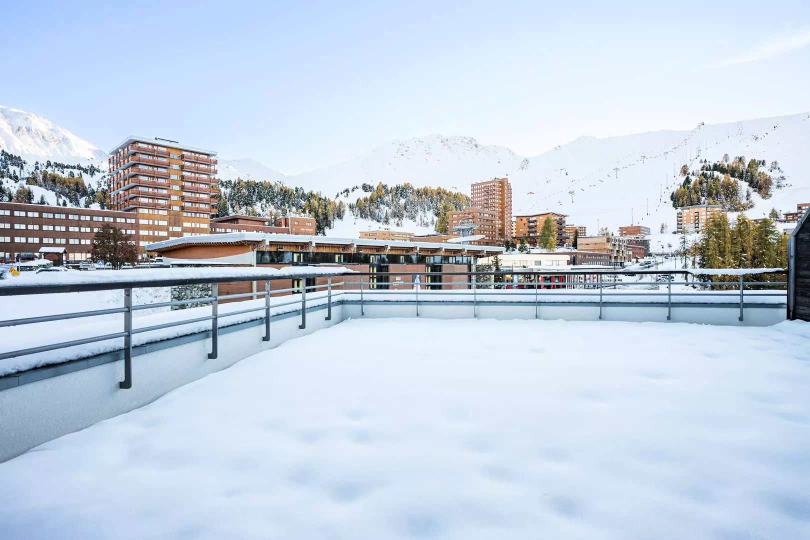 Plagne Centre - Résidence Lodges 1970 - New 3-room apartment on the 6th floor located in Plagne Centre, approximately 64m2 for 4 people with a 52m2 terrace facing South-West. 2 covered parking spaces.