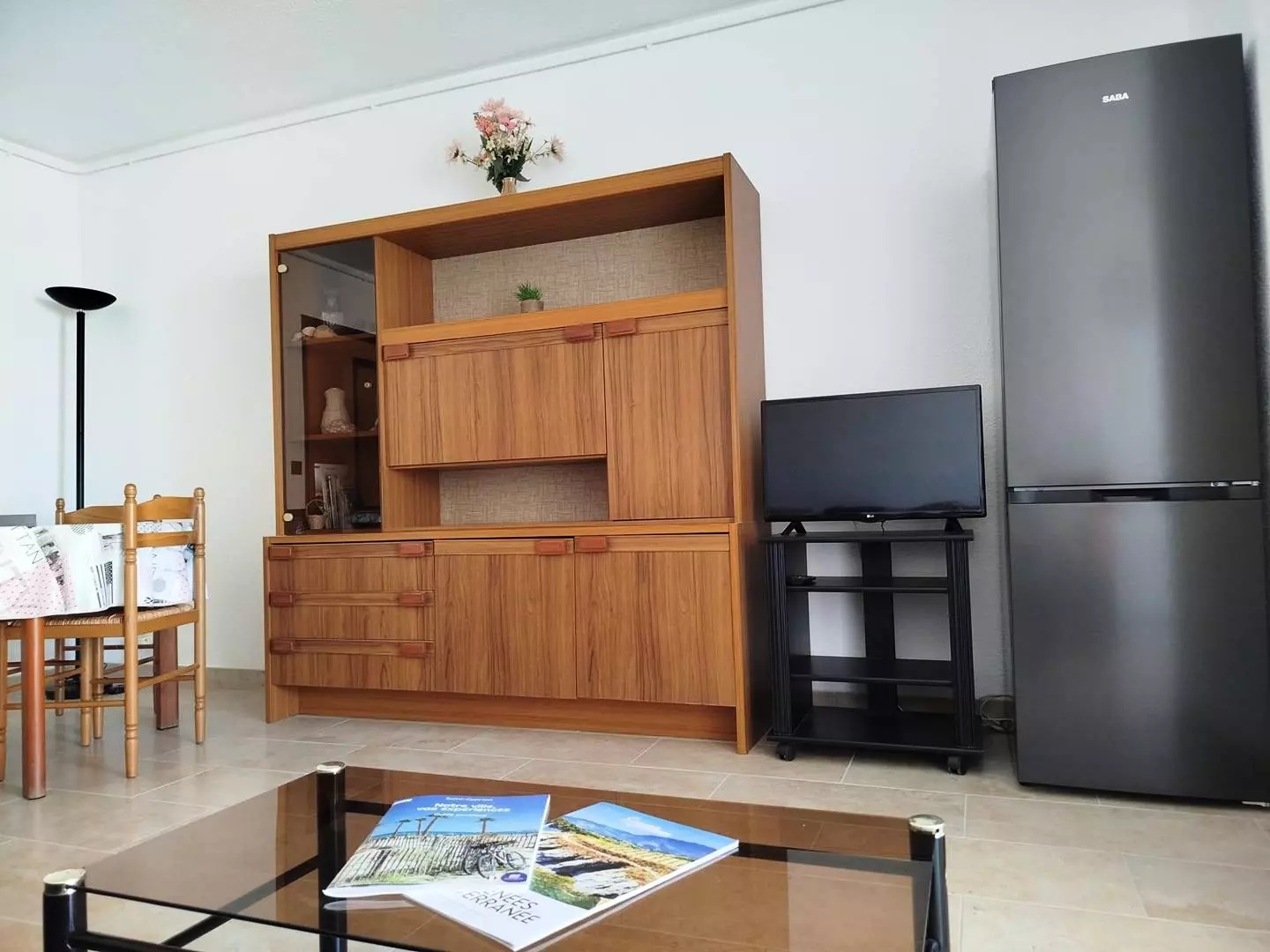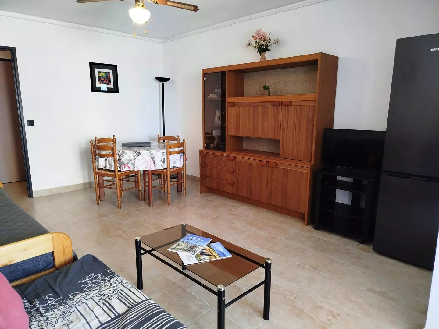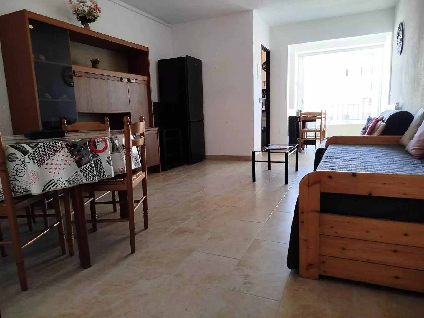 Entrance hall, spacious and bright living room with dining area, non-convertible sofa and pull-out bed (sleeping possibility for 1 or 2 people) and TV.