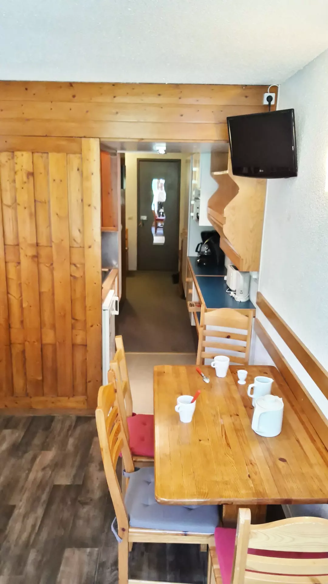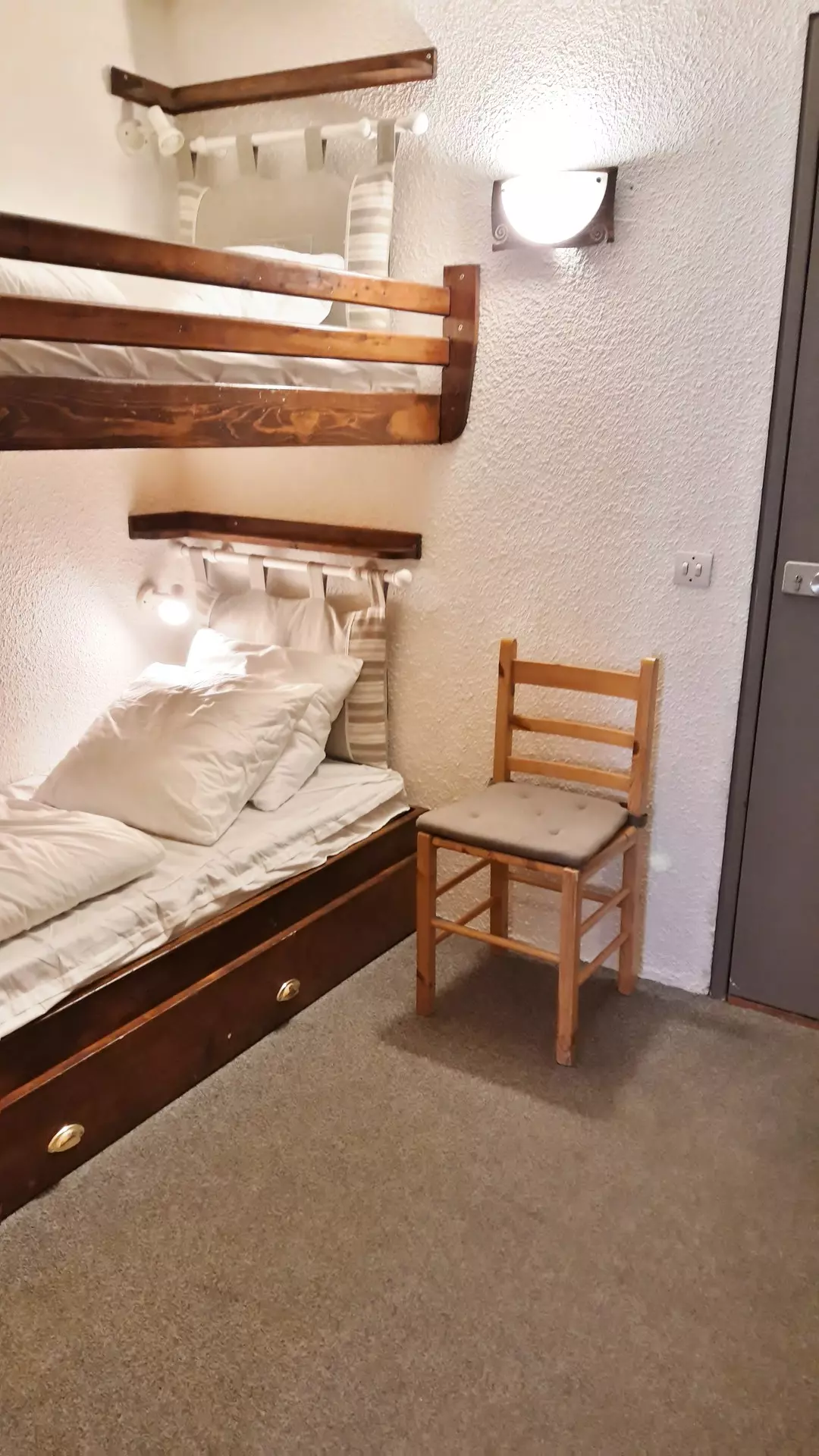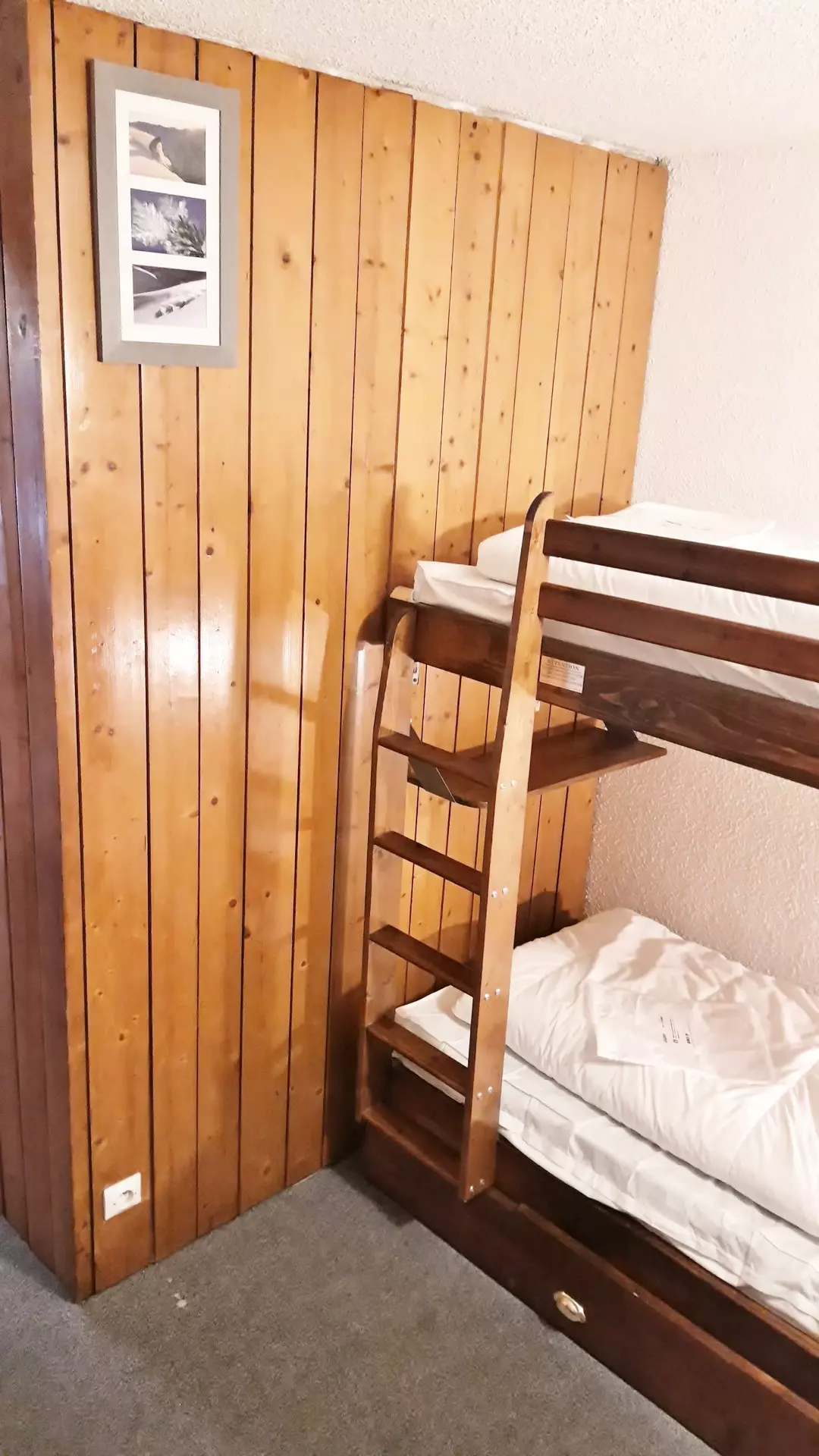 Mountain corner studio consisting of an entrance with 2 bunk beds + 1 pull-out bed (80cm wide) (the upper bunk is not suitable for children under 6 years old)