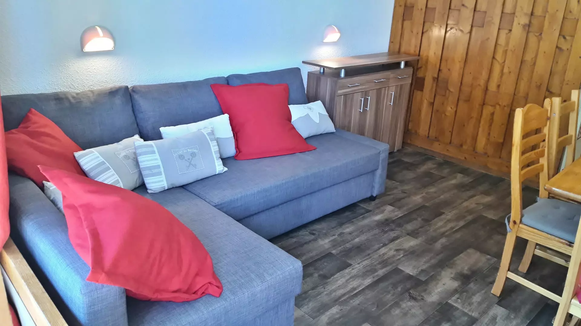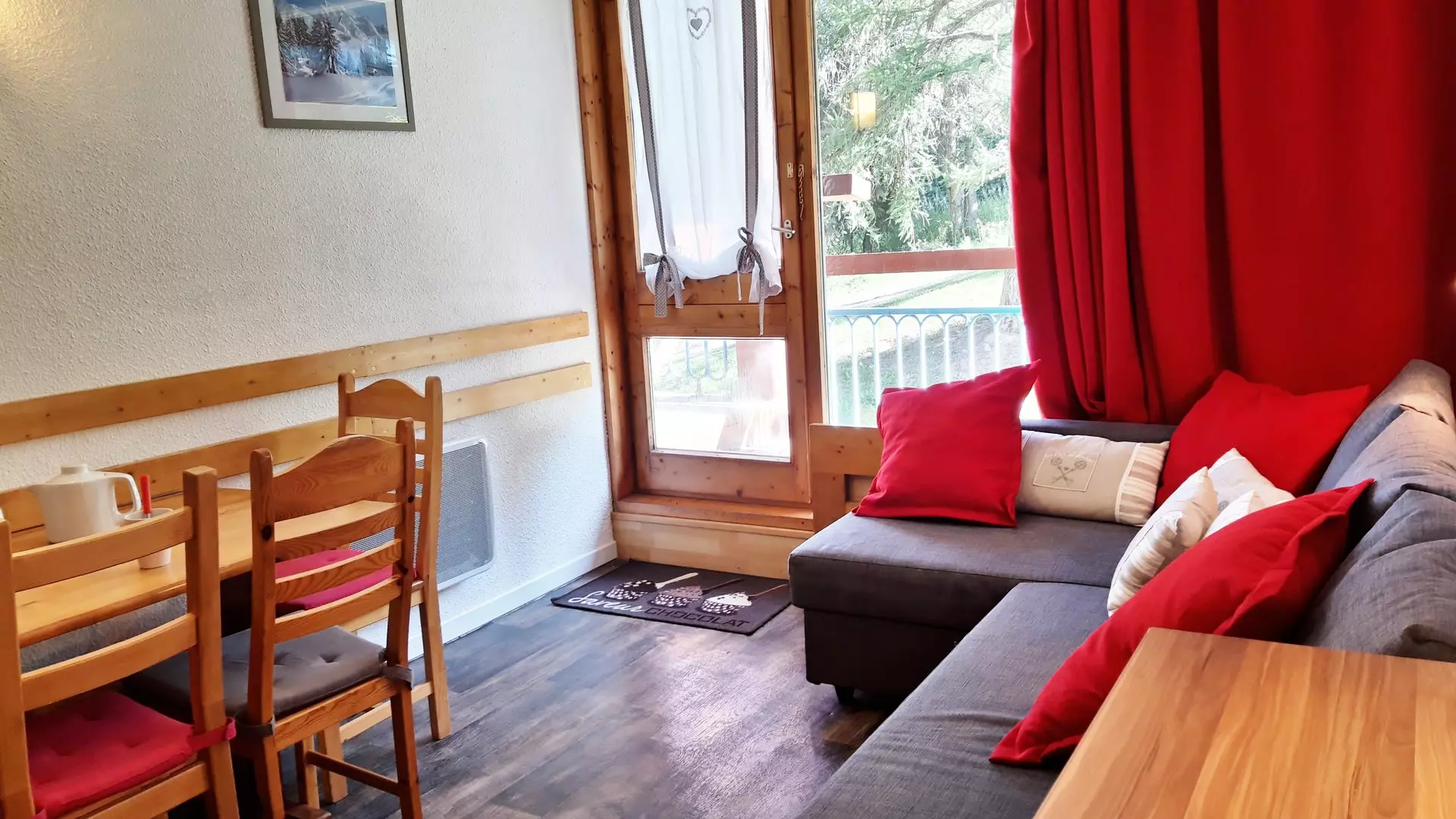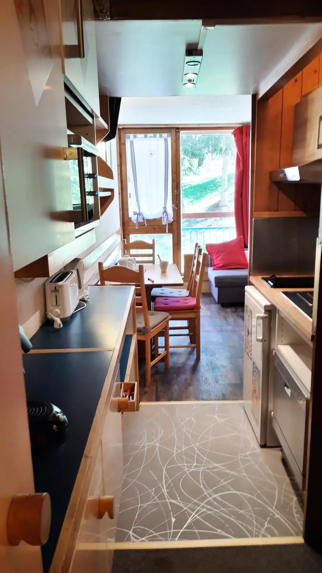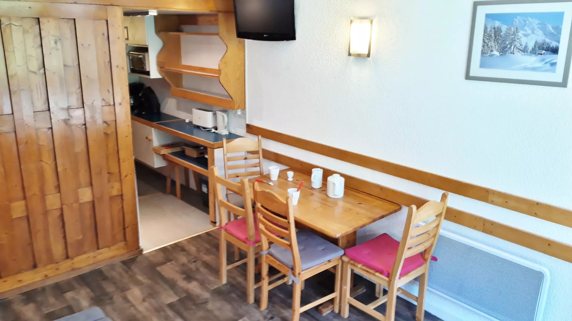 Mountain corner studio consisting of an entrance with 2 bunk beds + 1 pull-out bed (80cm wide) (the upper bunk is not suitable for children under 6 years old)