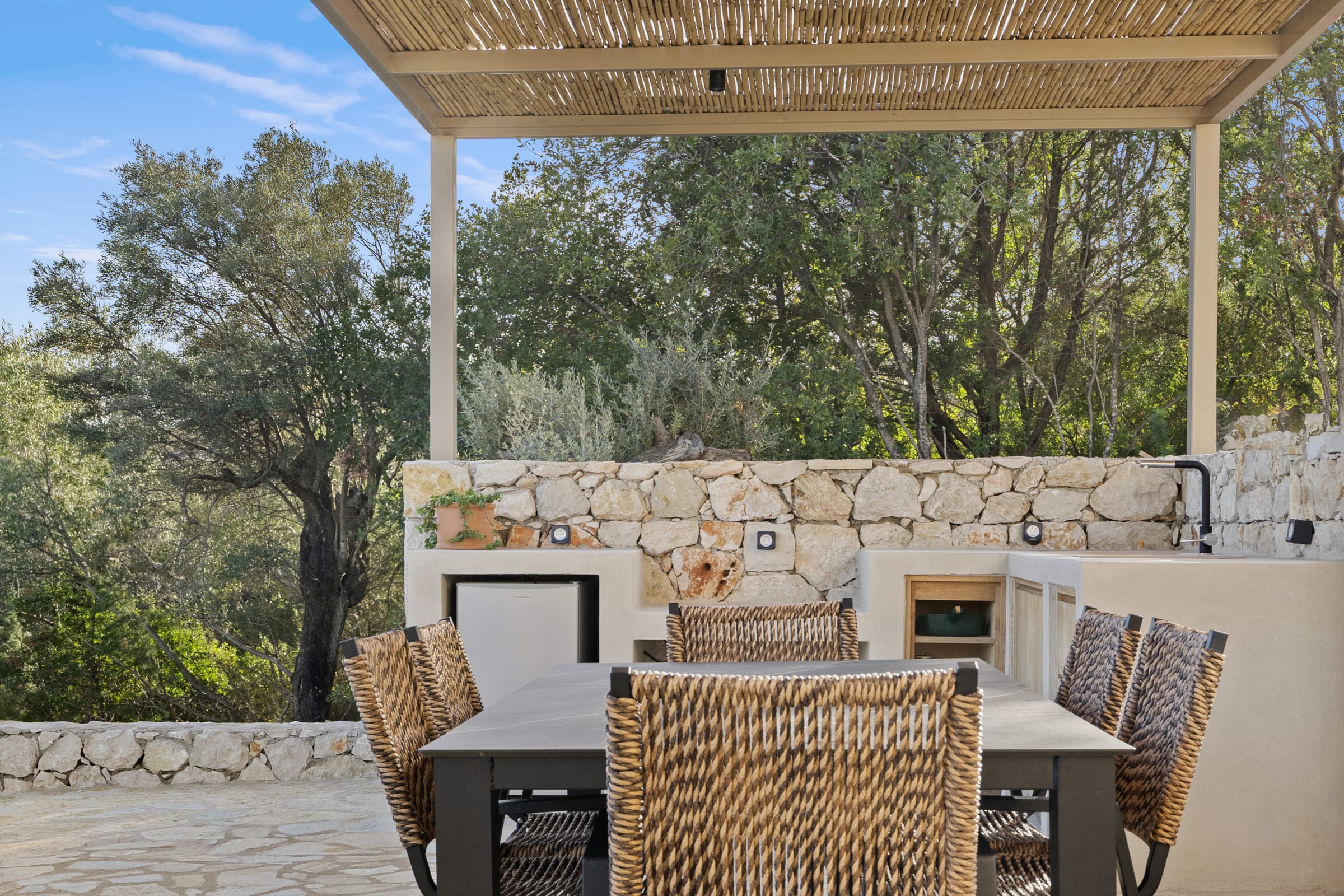 Nestled in an unspoiled natural setting, this elegant stone villa blends modern architecture with Mediterranean authenticity. It stands out for its elegance, tranquility, and seamless integration into the surrounding landscape, offering a breathtaking sea view over the turquoise waters of southern Lefkada.