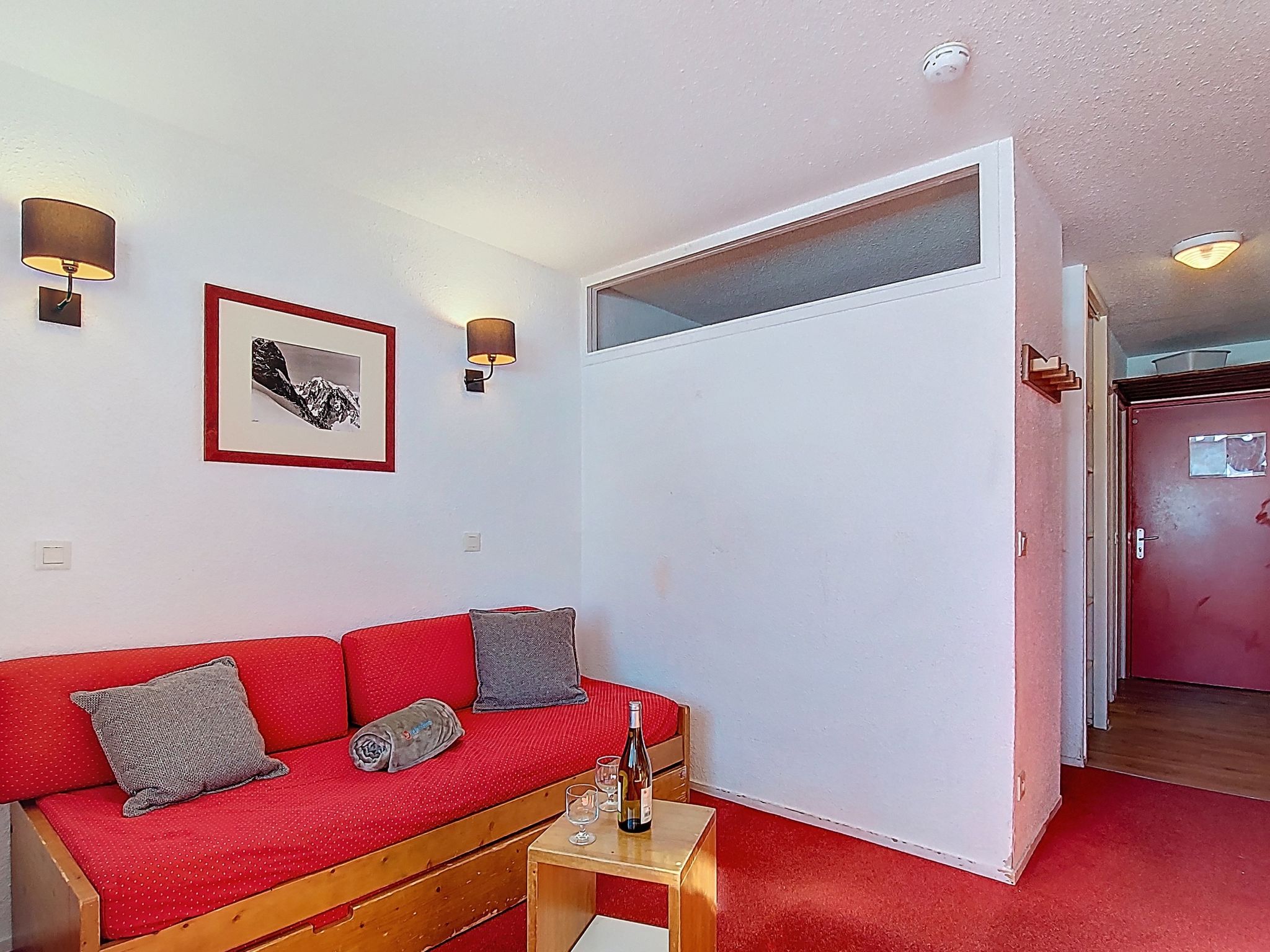 1-room studio 21 m2 on 2nd floor, south facing position. Comfortable furnishings: living/dining room with 1 pull-out bed (2 pers. 2 x 80 cm, length 190 cm), dining table, TV and flat screen. Exit to the balcony, south facing position. Entrance hall with kitchen corner. Sleeping alcove with 1 x 2 bunk beds (80 cm, length 190 cm). Kitchenette (2 hot plates, dishwasher, toaster, kettle, electric coffee machine). Bathroom, sep. WC. Carpet. Small balcony 3 m2, south facing position. View of the mountains, the valley and the resort. Facilities: Internet (WiFi, extra). Please note: smoke alarm. Offer by a private individual according to Art. 155, IV of CGI. 73257011370AK