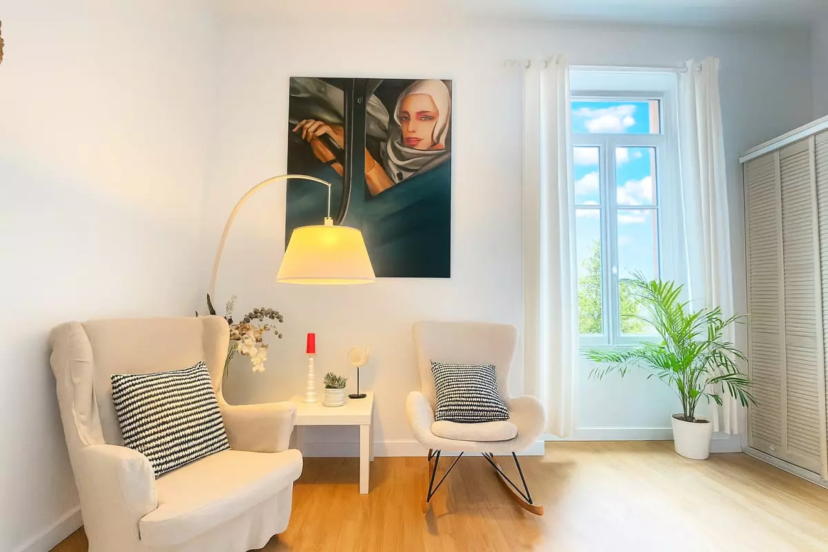 - The apartment has a large, spacious bedroom with a double bed (180x200), ideal for a couple.