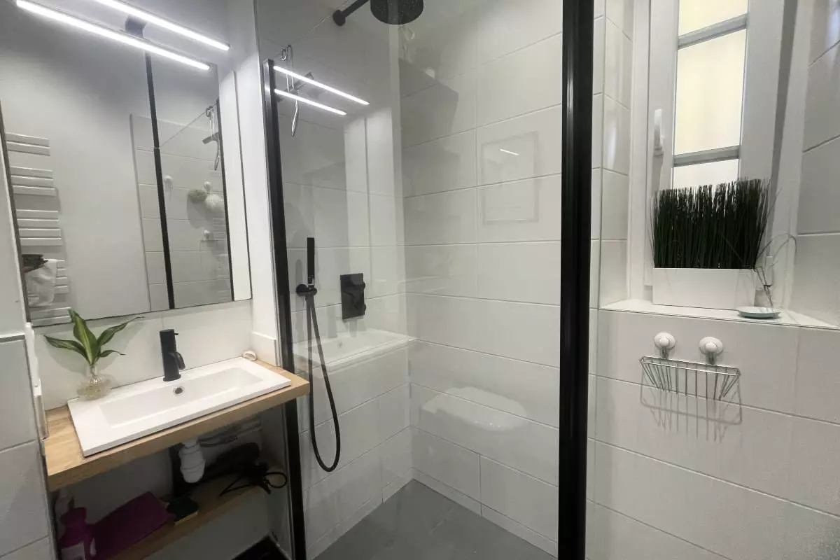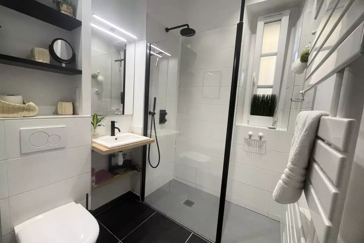 - The shower room, simple and refined, will allow you to relax after a day at the beach.