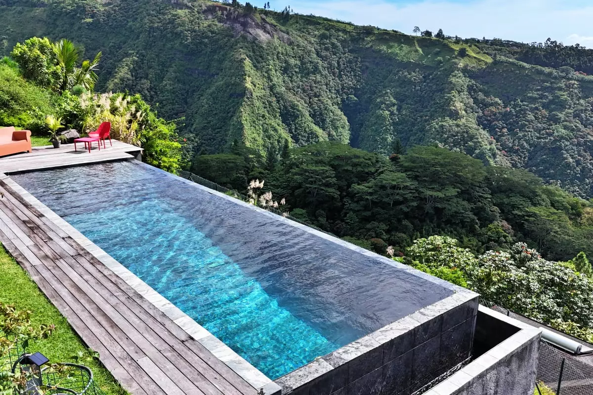 Perched on the heights of Papeete, an independent annex welcomes you in an exceptional setting, between raw rock, tropical vegetation and panoramic views of the island of Moorea and the Pacific Ocean.