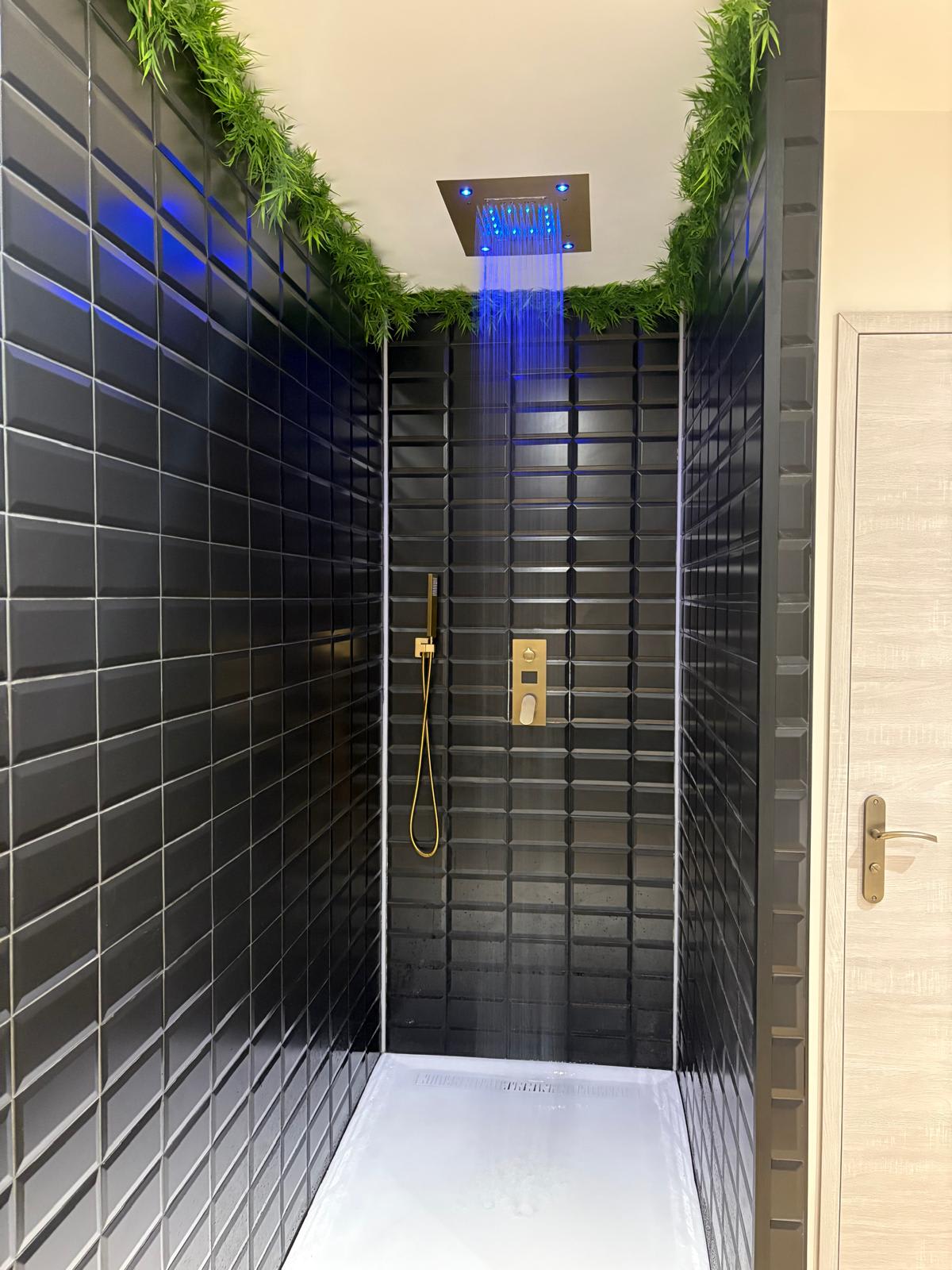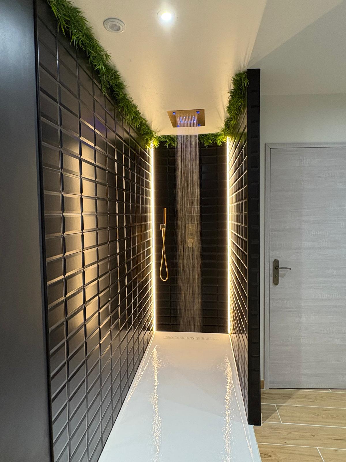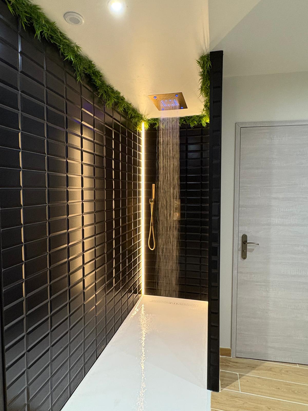 Grande douche à l’italienne avec ciel de pluie et jets cascade