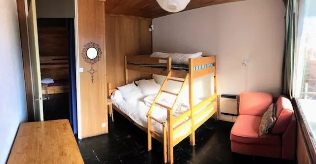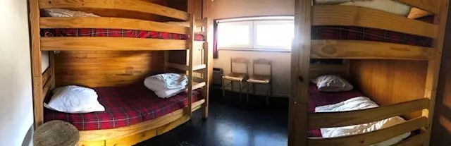 A room with a bunk bed (2 places on the bottom and one place on top)