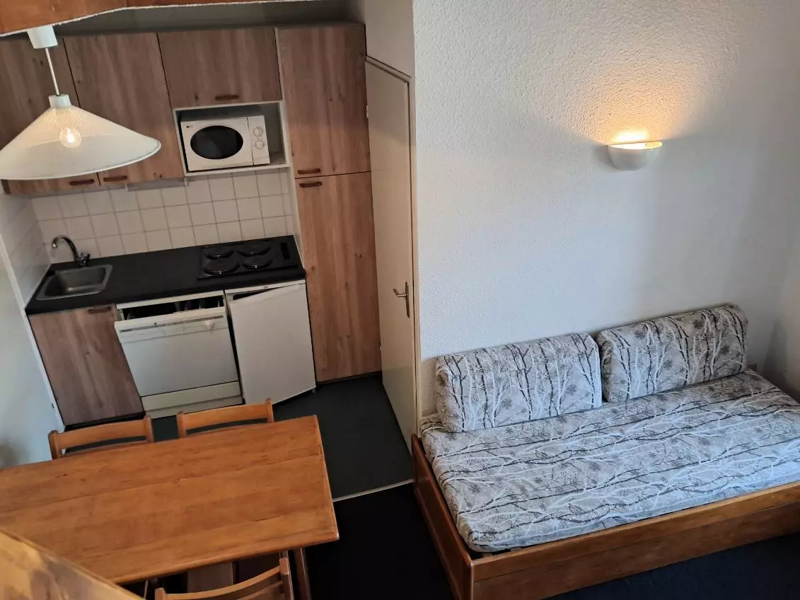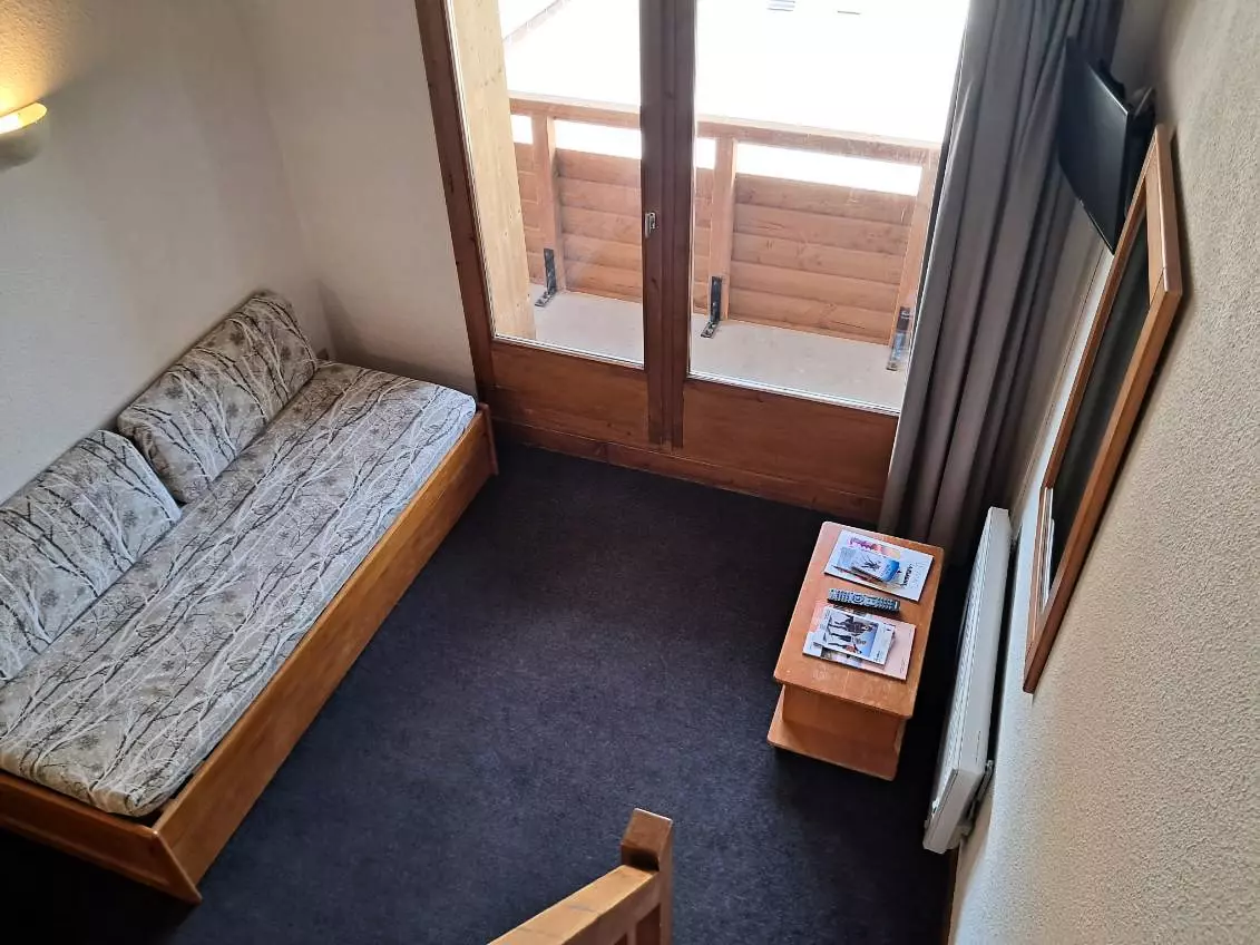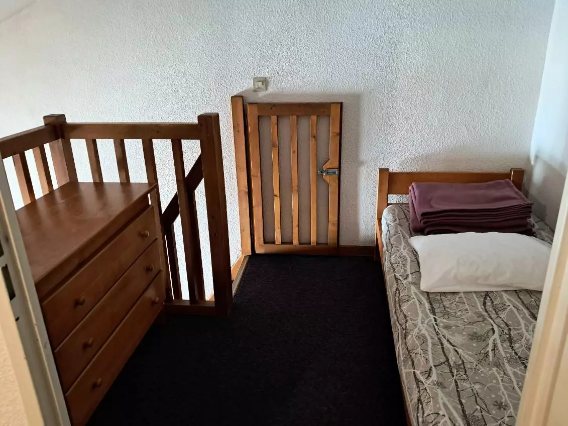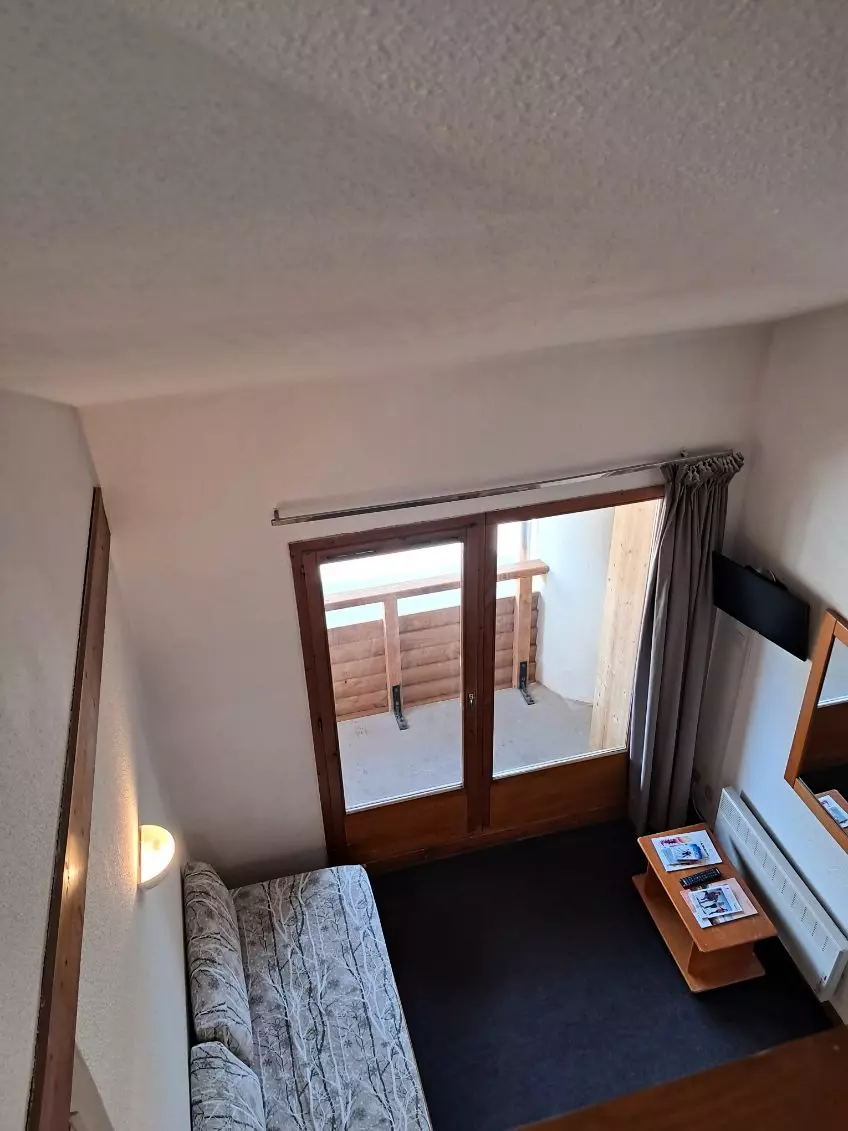This apartment is located on the 7th floor (with elevator) of the Le Cervins residence in Plagne Soleil. The floor comprises an open-plan kitchen/living room, a WC, and access to a balcony. The upper floor has three bedrooms, including a master suite.