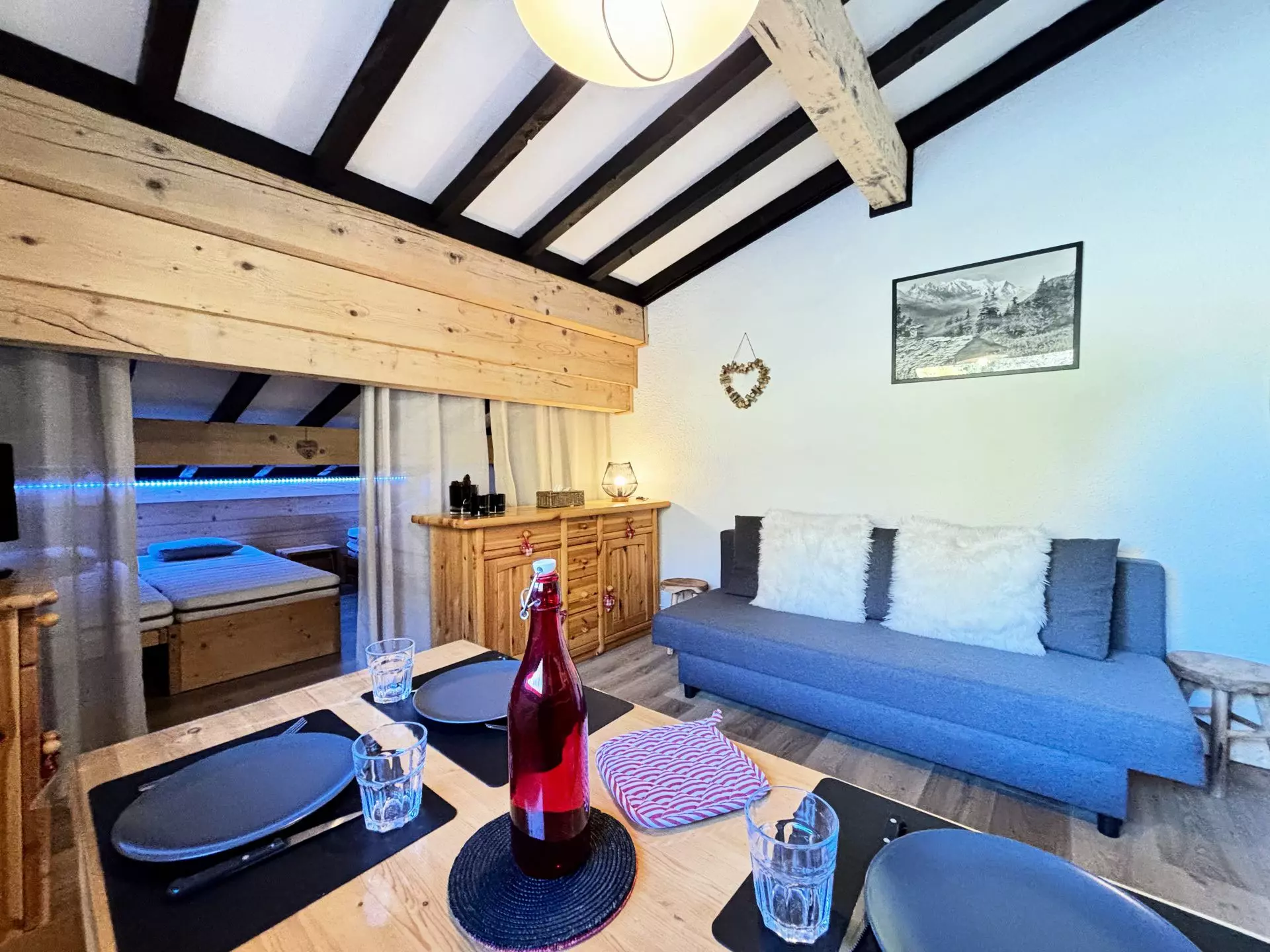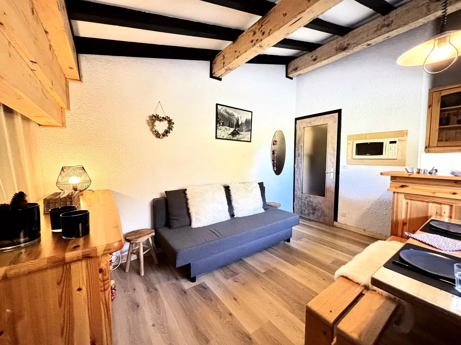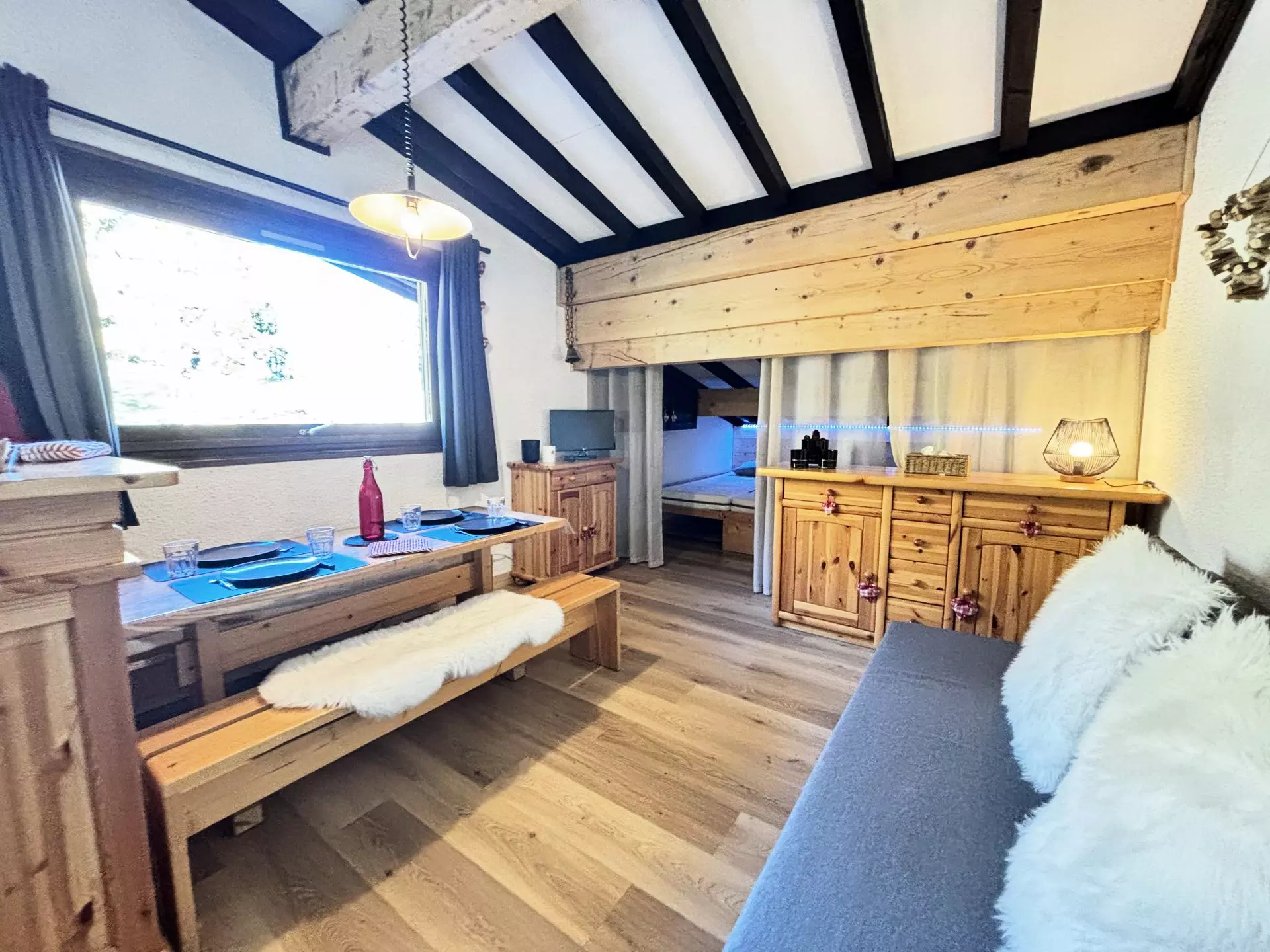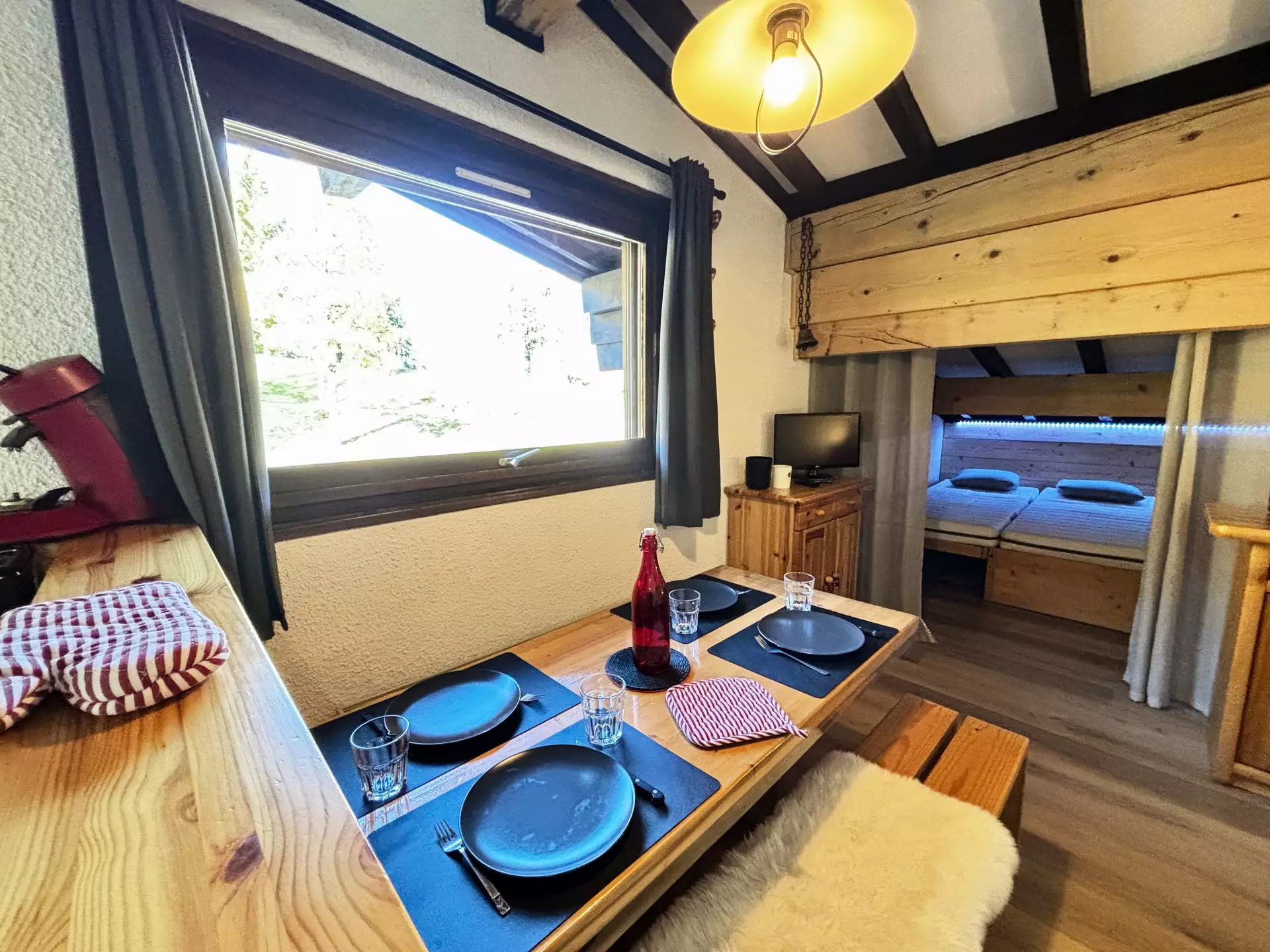 Charming studio apartment of approximately 21 m² (with an additional 8.8 m² under a sloping ceiling with a ceiling height of less than 1.80 m), located on the ground floor of a peaceful residence, ideal for a mountain getaway. Just a few meters from the Lachat blue ski run, it offers ski-in/ski-out access to the Espace Diamant ski area. Designed to comfortably accommodate up to 4 people, this functional and well-thought-out studio has everything you need for a warm and convenient stay.