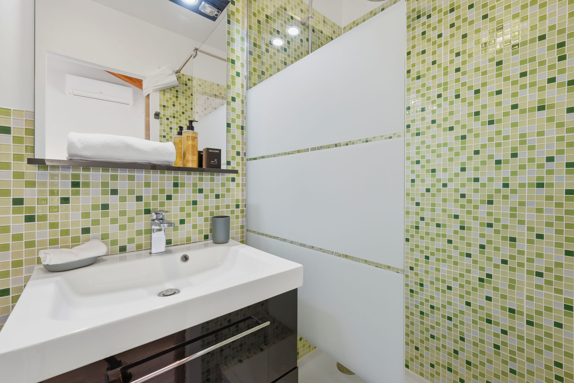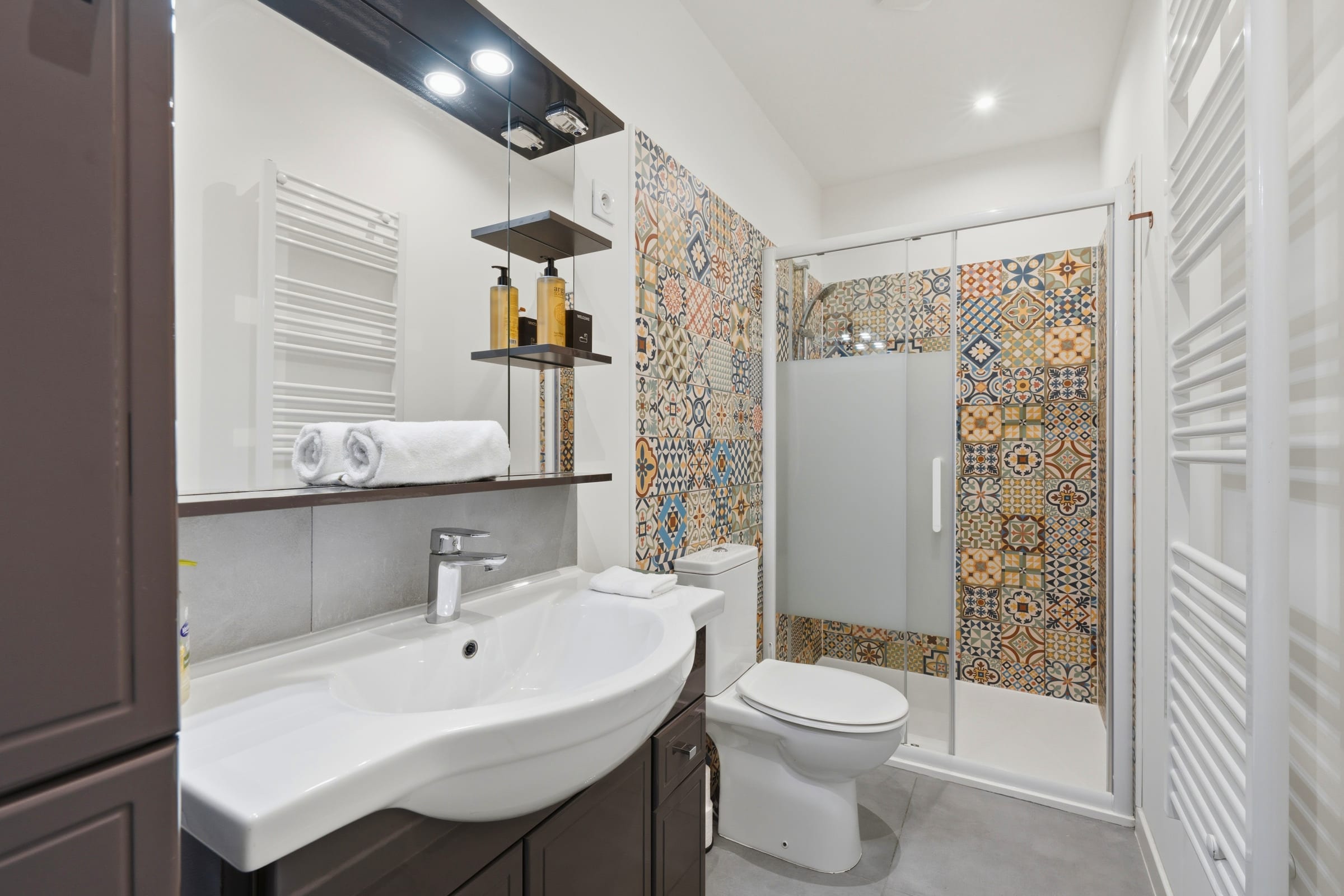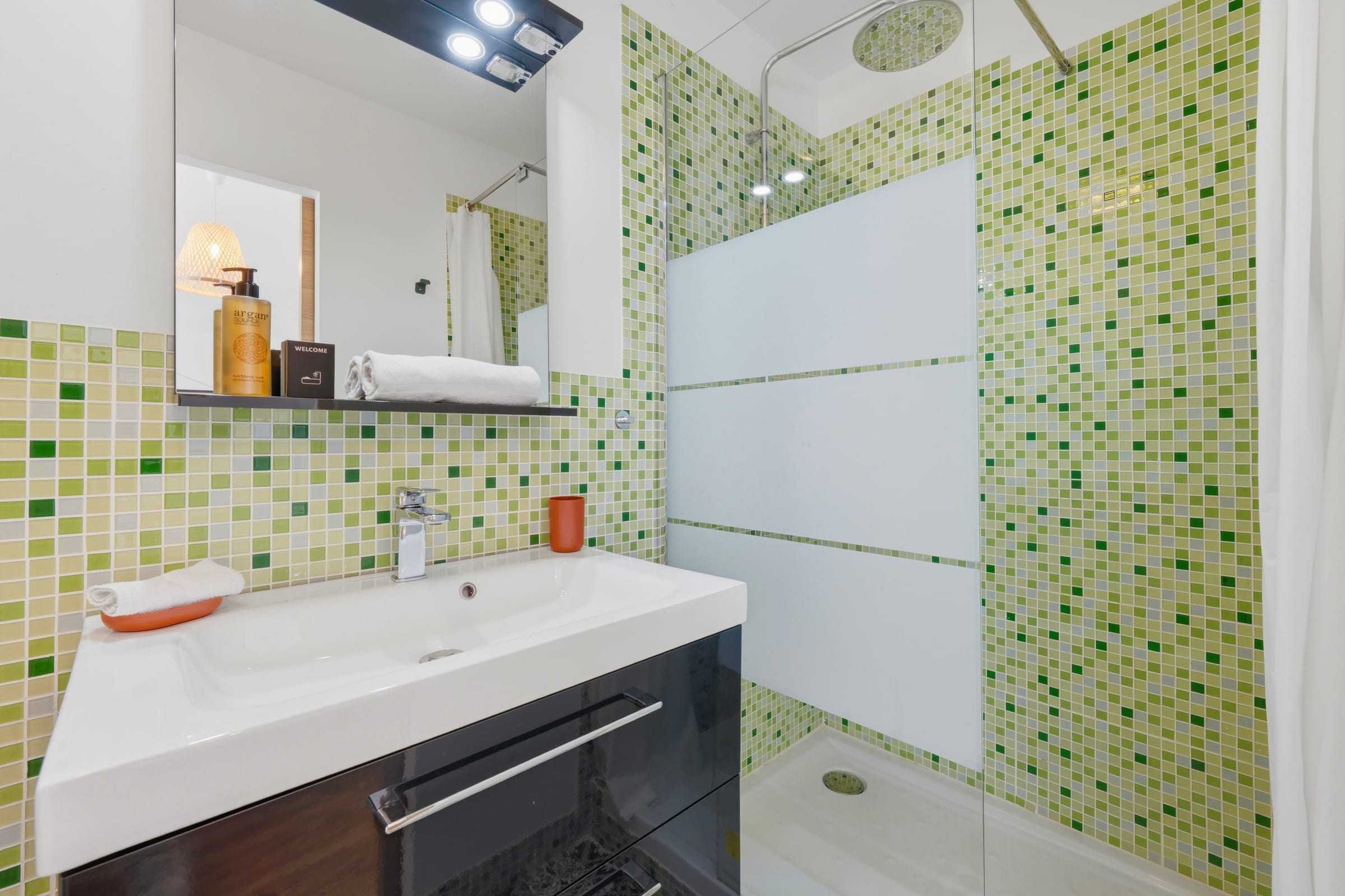 Bedroom 3: queen-size bed (160×200 cm), double sofa bed (140×190 cm), private shower room with shower and toilet