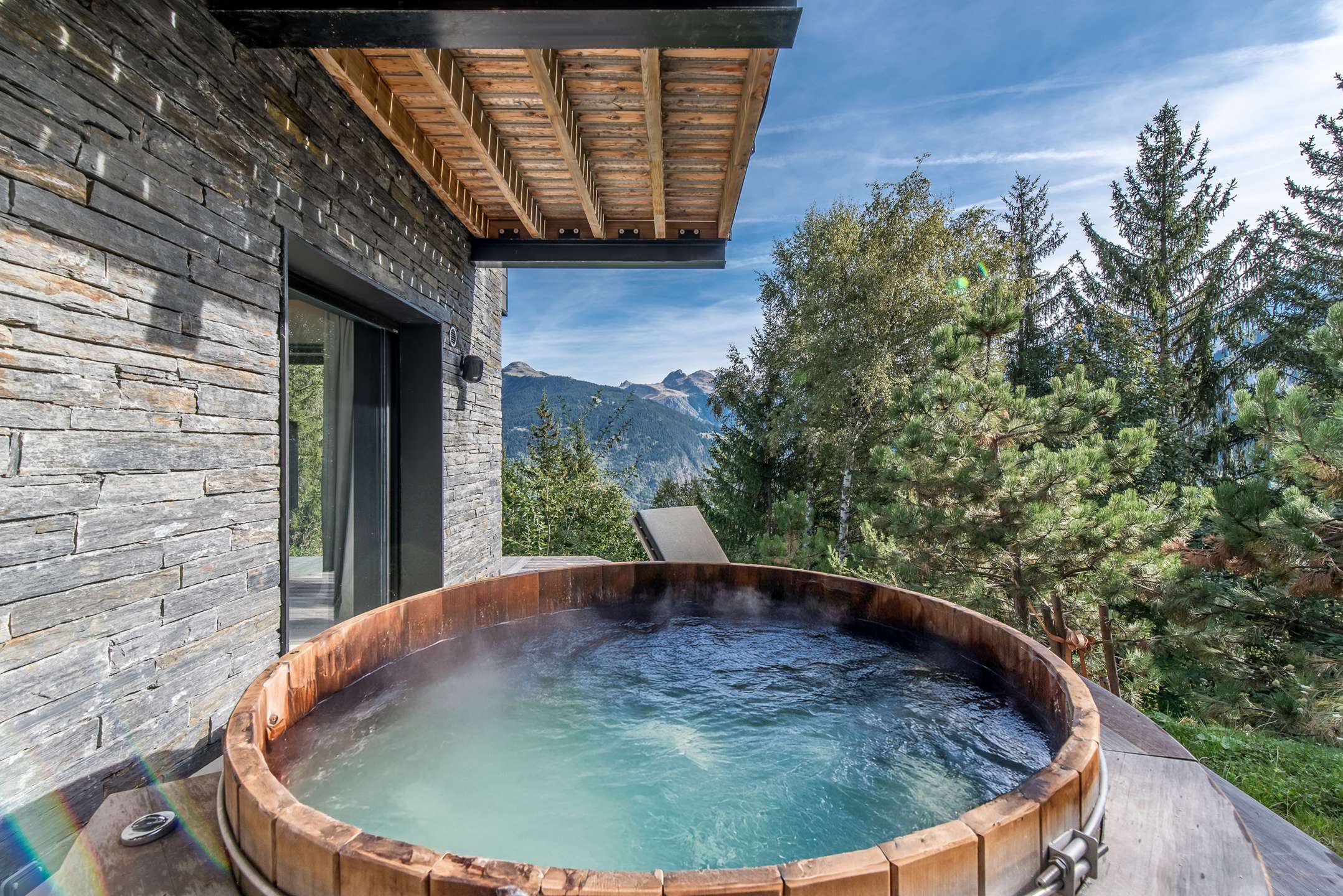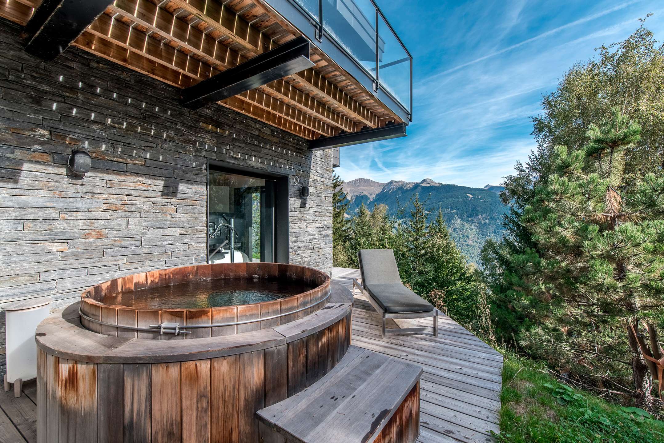 This elegant chalet located in Courchevel Village in a small peaceful hamlet offers cozy and modern living spaces. Enjoy its stunning views of the mountains and valley, its outdoor Nordic bath, its massage room and sauna after a beautiful day of skiing.