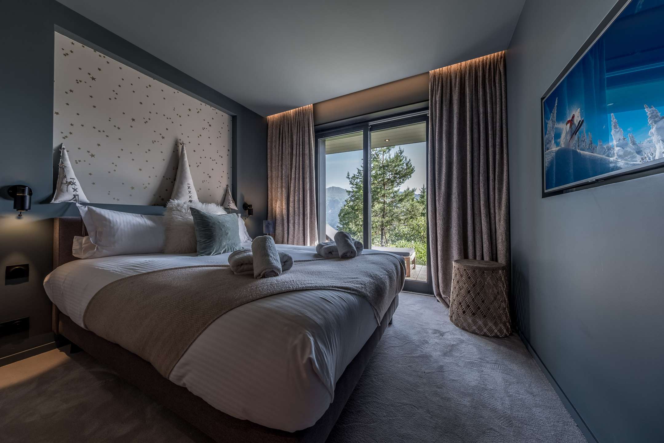 - A master ensuite room with a double bed, dressing room, TV, shower room + toilet, with direct access to the terrace
