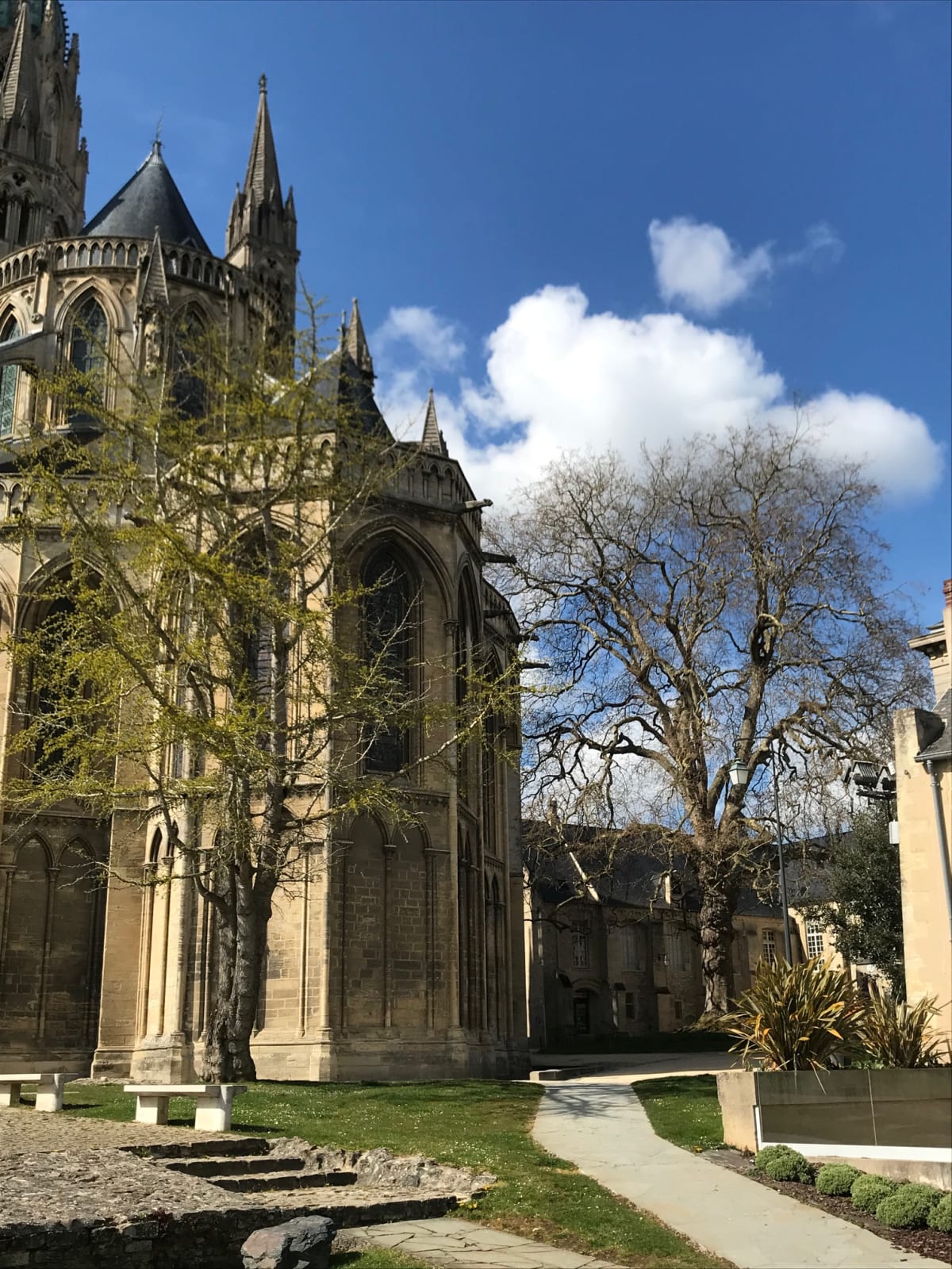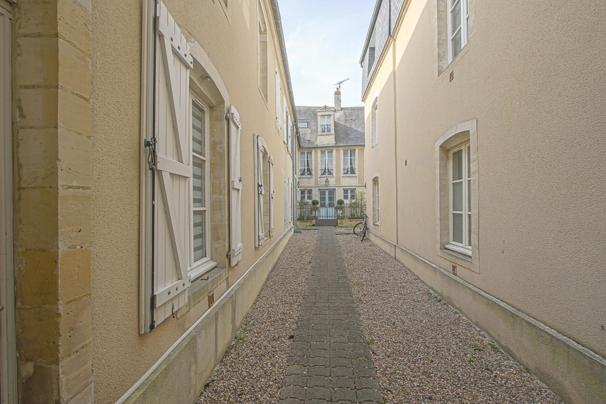 The apartment is located on the ground floor of a typical Bayeux building. It has an entrance opening onto the friendly living room with sofa, coffee table, television and a dining area with dining table for 2 people.