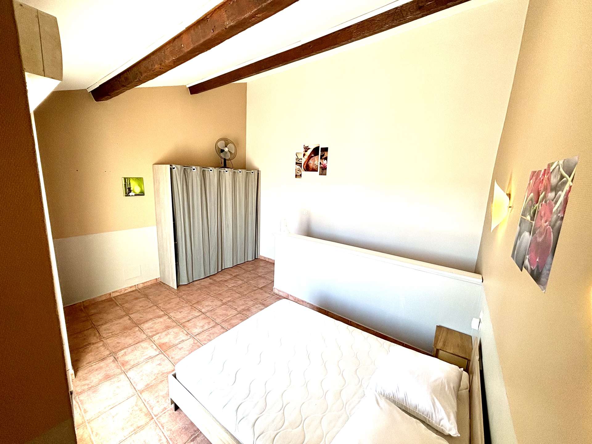 On the 2nd floor, an air-conditioned master bedroom with a double bed offers a pleasant terrace.