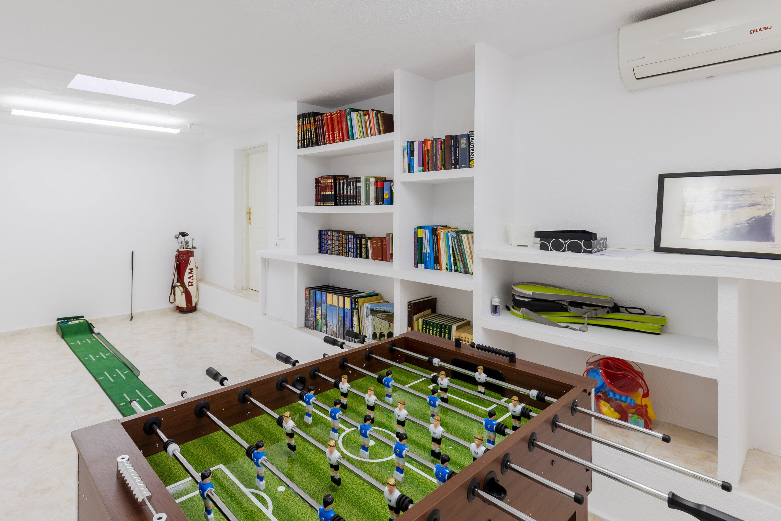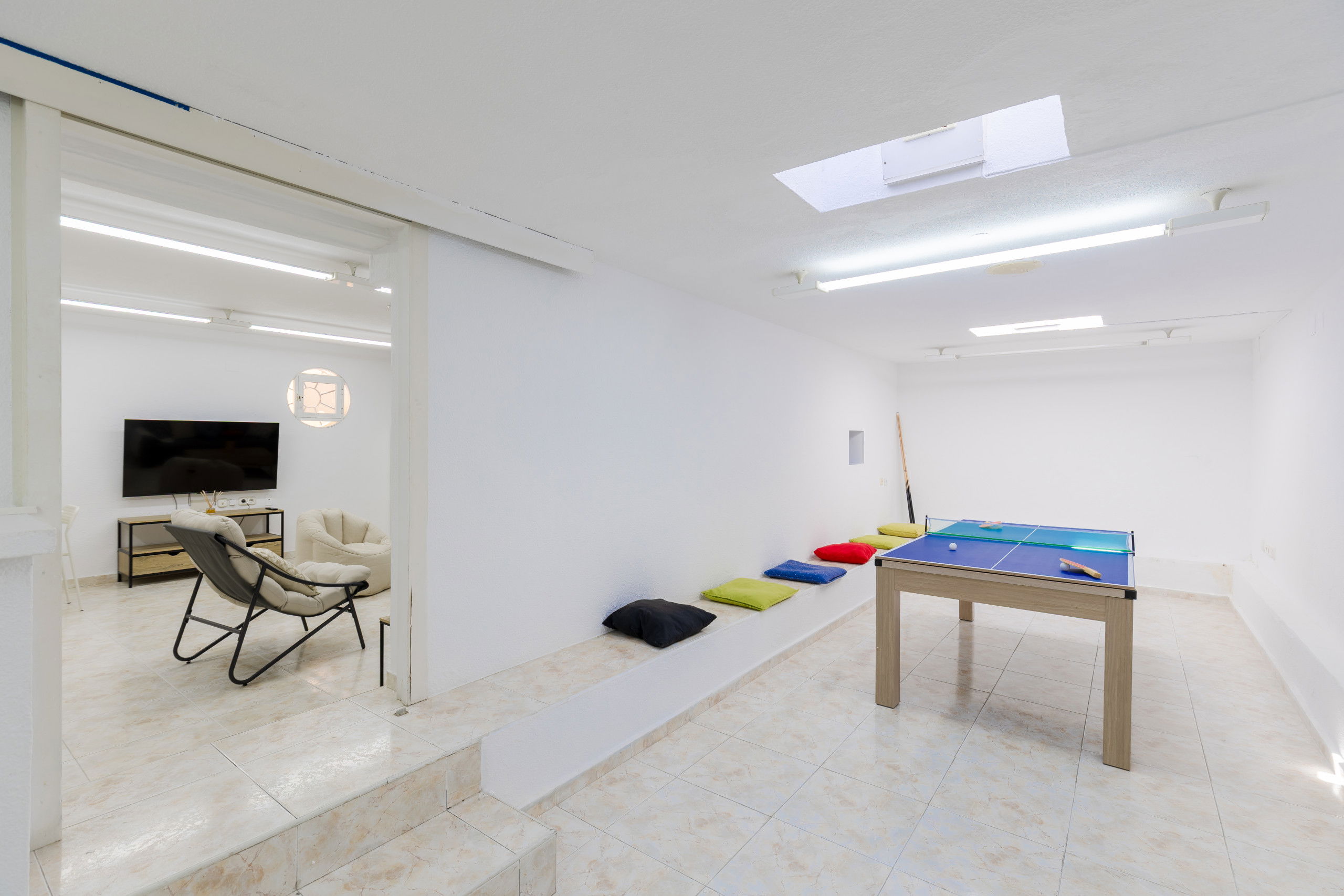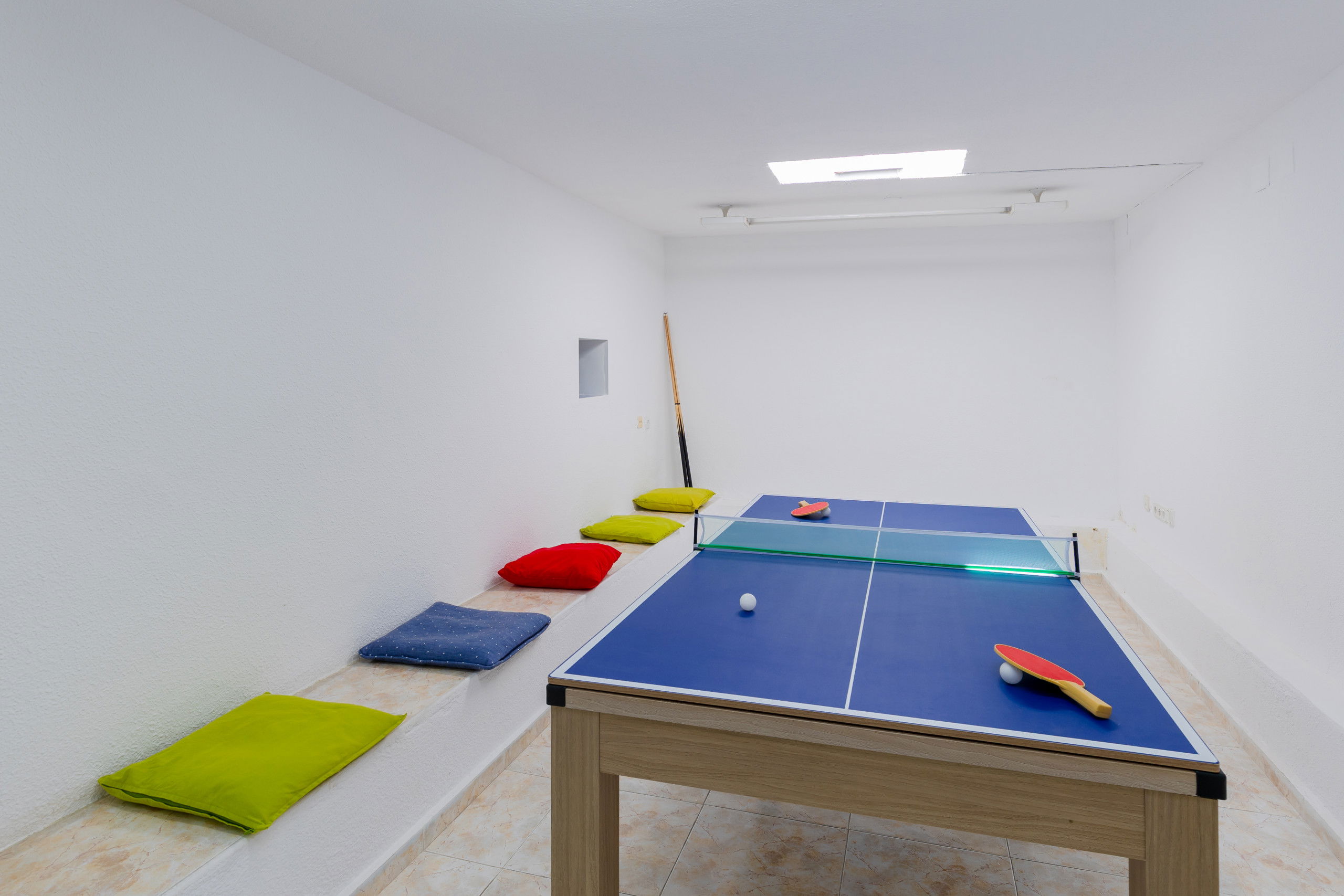 In the lower part, games room with ping pong table and billiards table, football table and pati green to relax while sharing games.