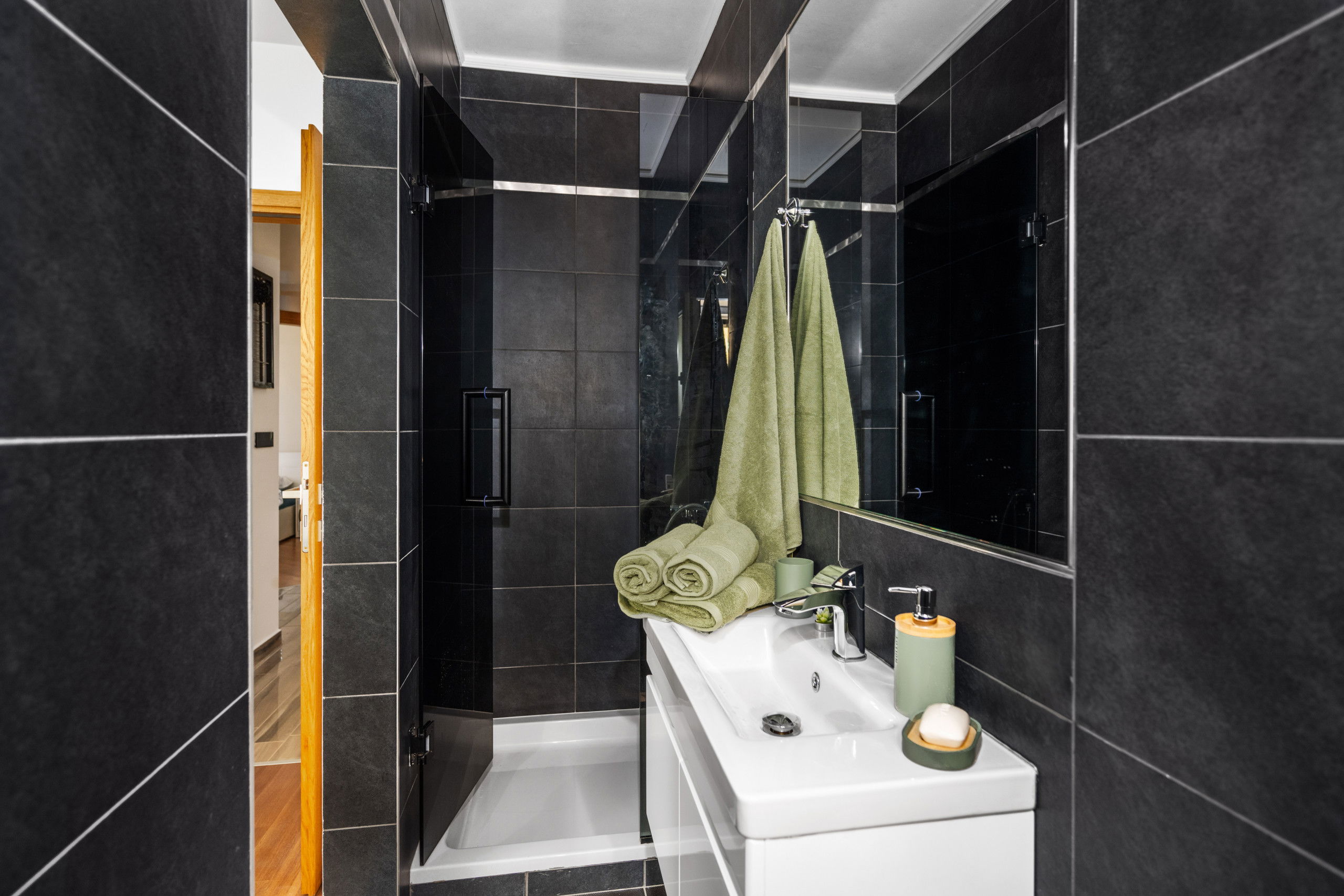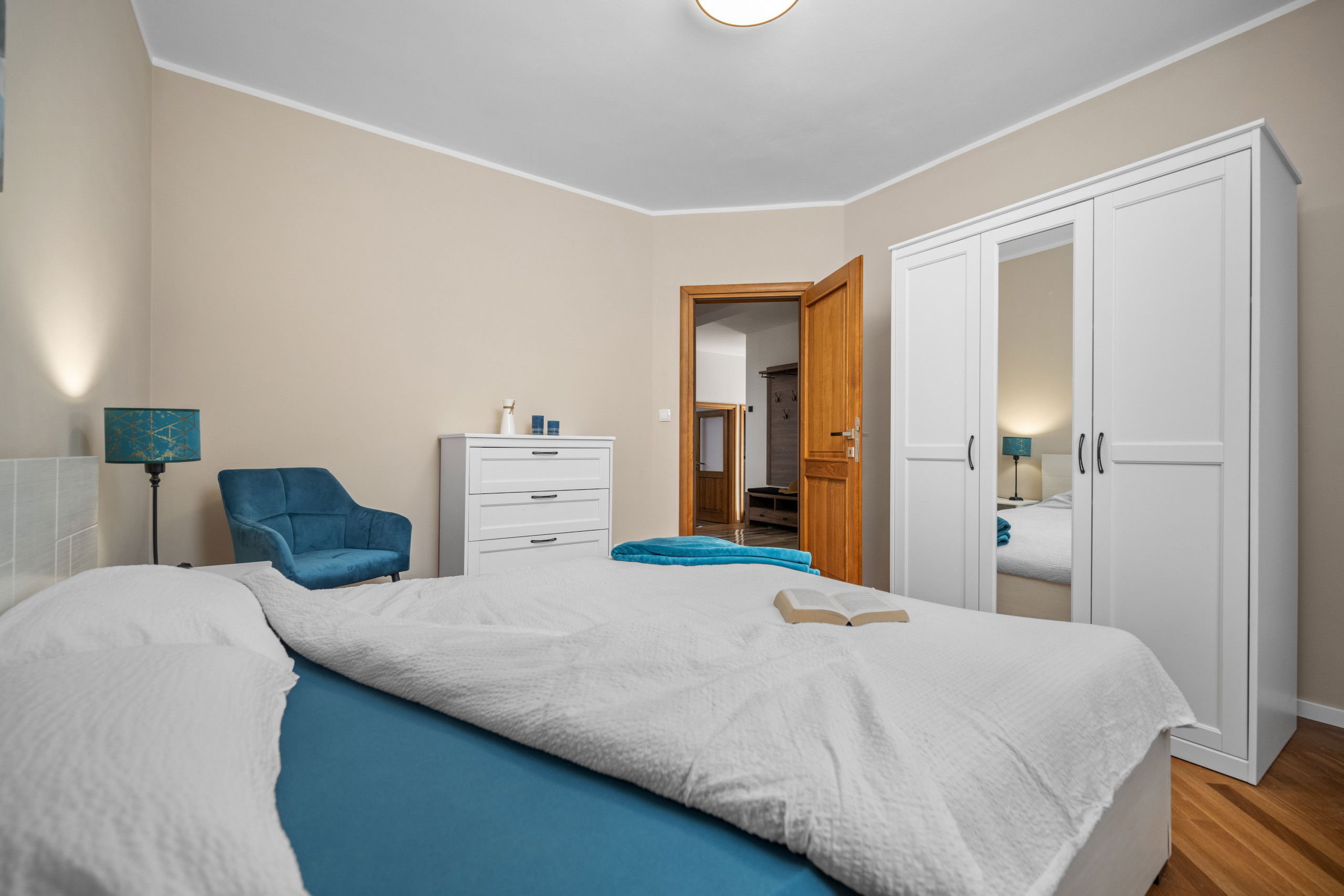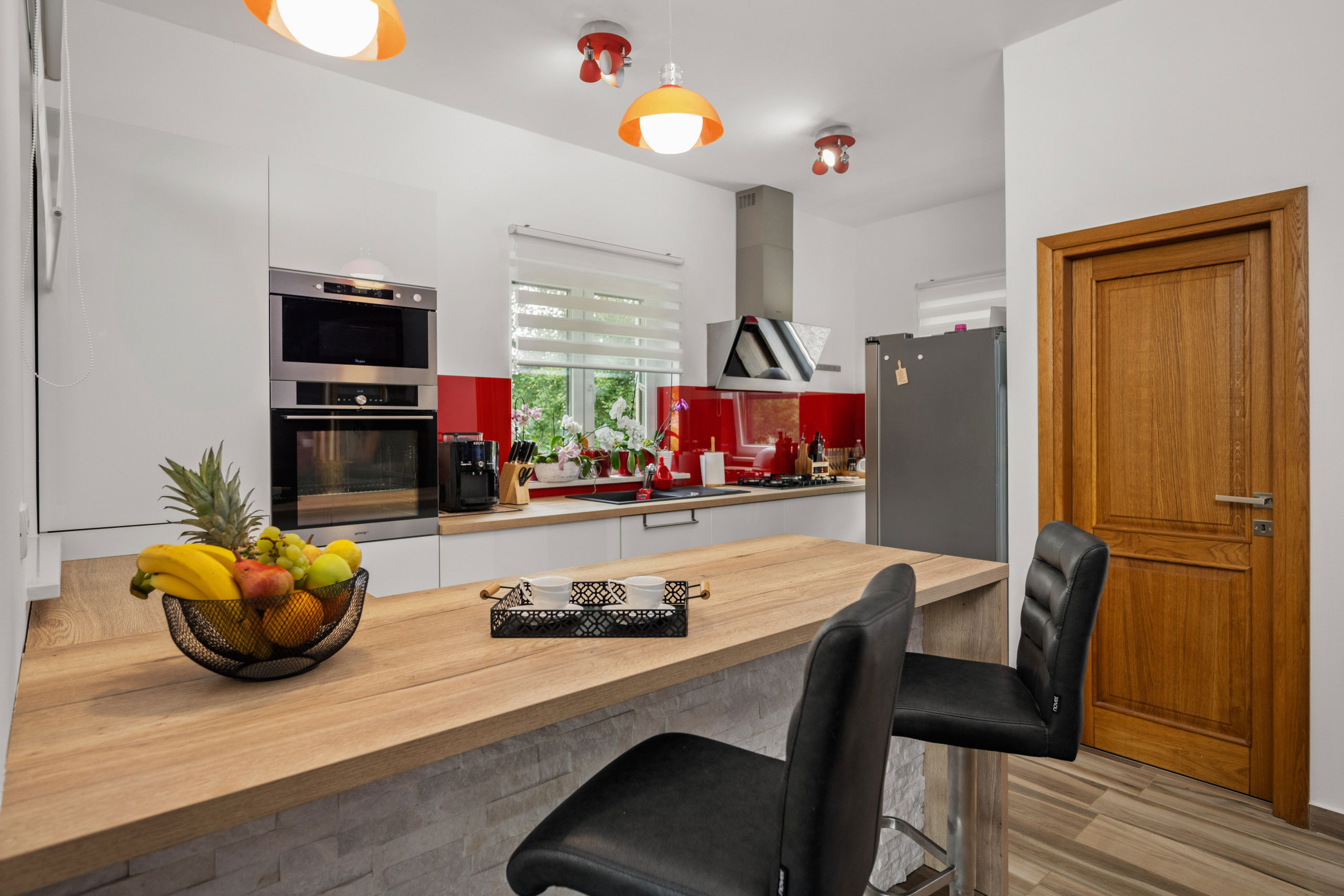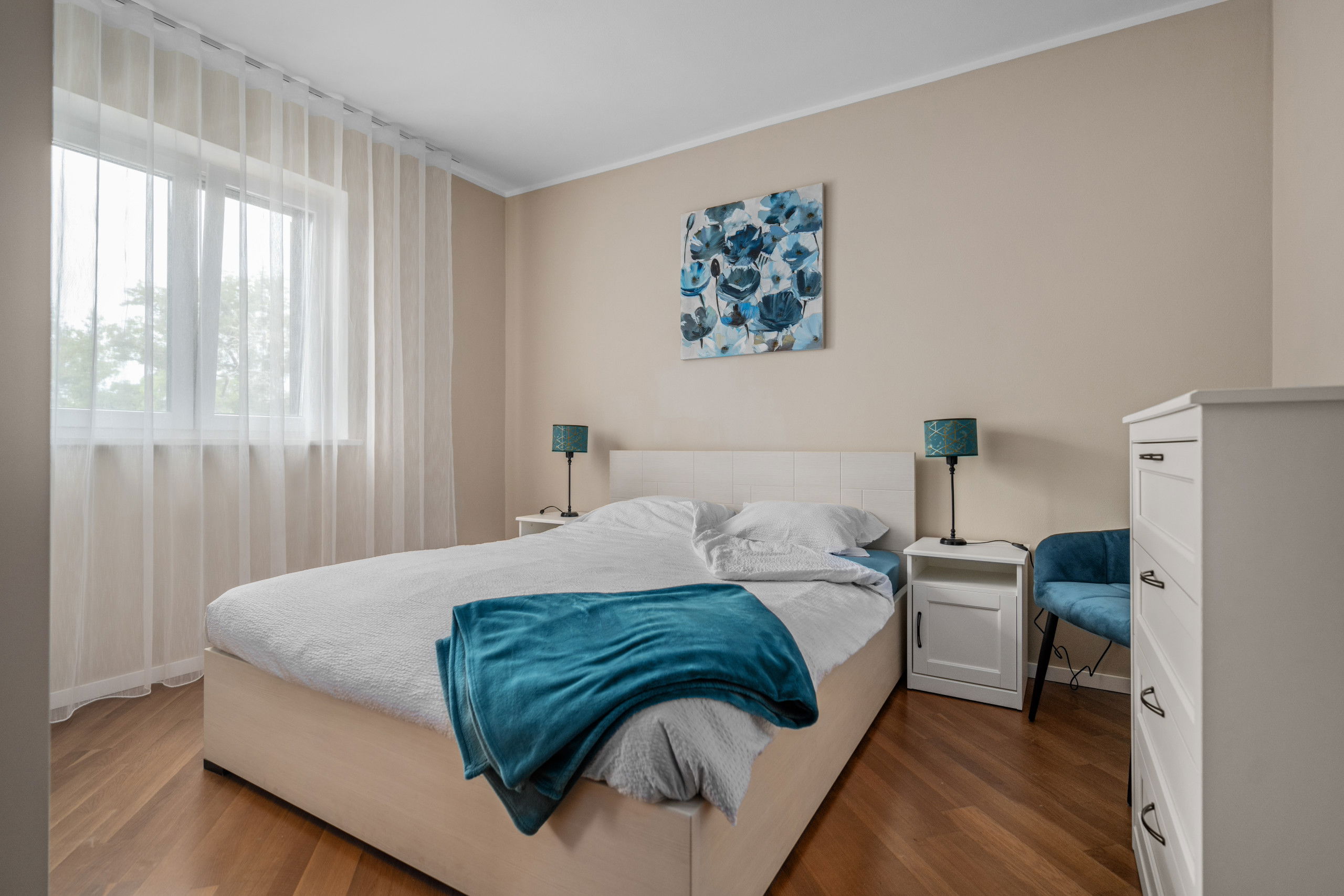 The three tranquil bedrooms serve as true retreats, each furnished with a comfortable double bed. Two luxurious bathrooms, including one with a modern shower in the master suite, guarantee privacy and relaxation. The second bathroom, featuring both a shower and a bathtub, invites you to unwind after an active day.