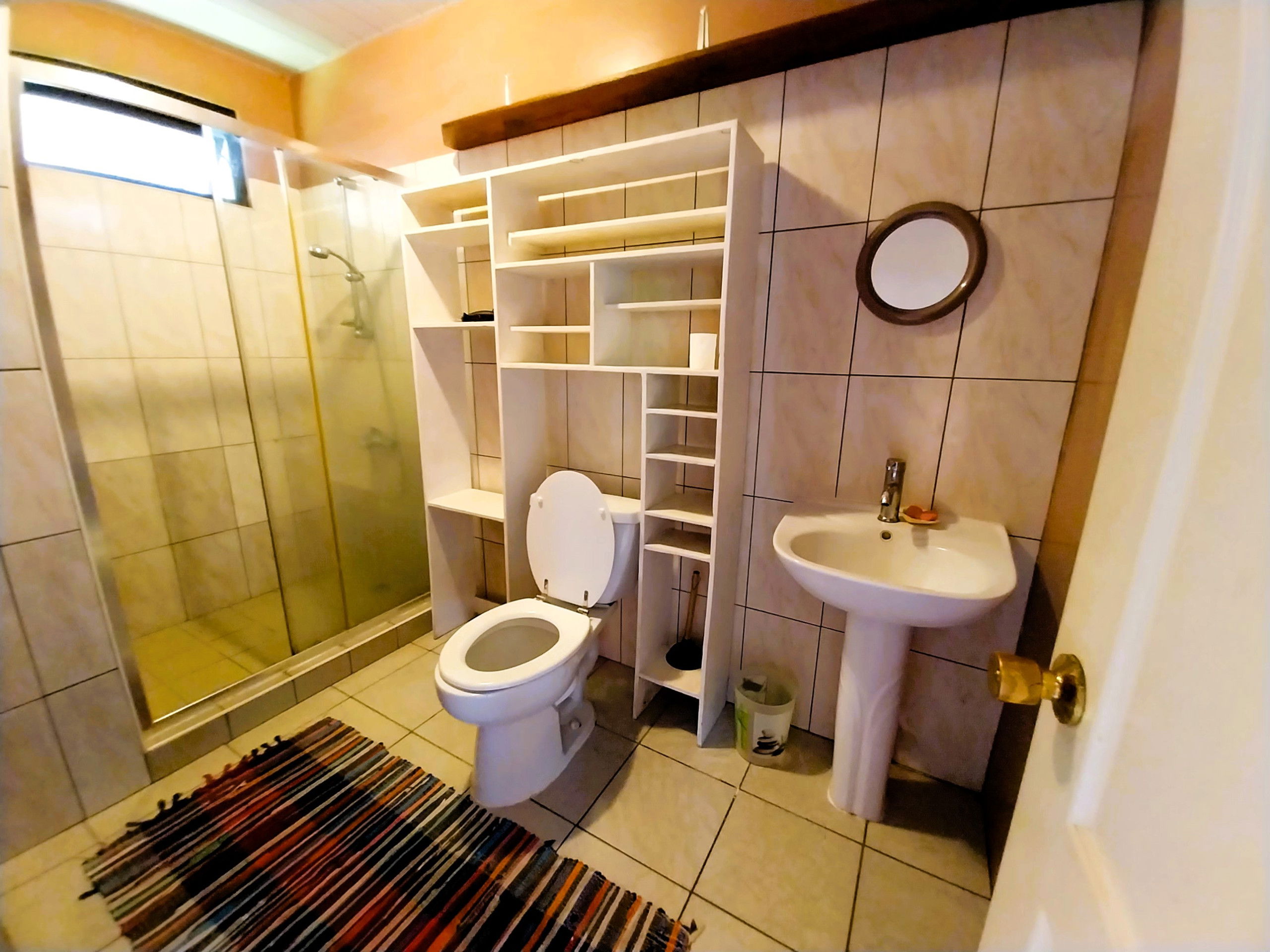 Inside the spacious Toah Hoe Bungalow, comfort reigns supreme. The main room welcomes you with an elegant harmony, where a lounge area, adorned with a sofa bed, blends with a fully equipped kitchen. You can savour your meals in this friendly space. A separate, air-conditioned bedroom, with its Queen Size bed, promises peaceful nights. Clever shelves and practical hangers ensure a tidy storage space. The bathroom is independent, equipped with a shower, washbasin and toilet. Towels are graciously provided by your attentive host. Moreover, a laundry room fitted with a washing machine adds to your comfort.