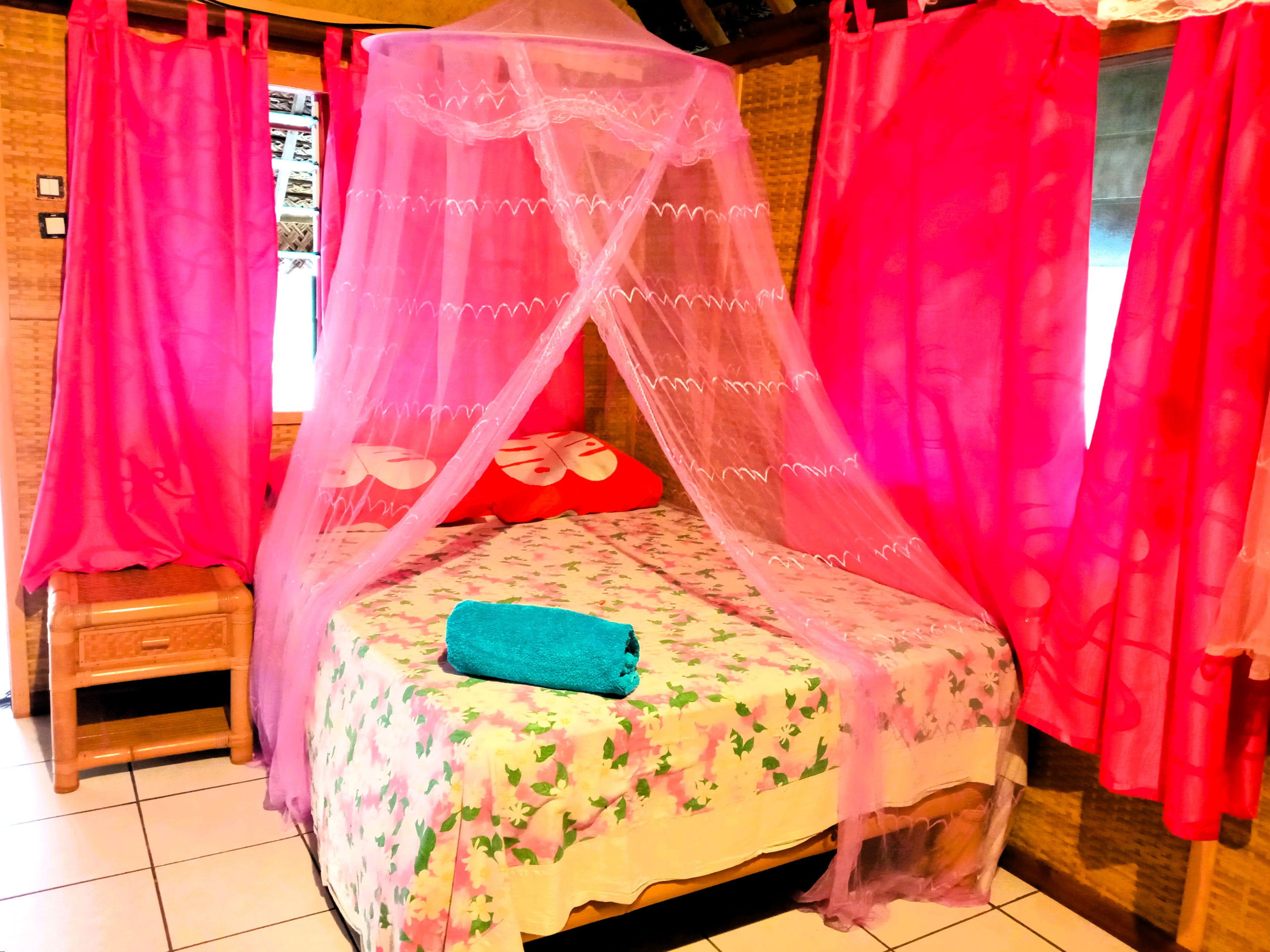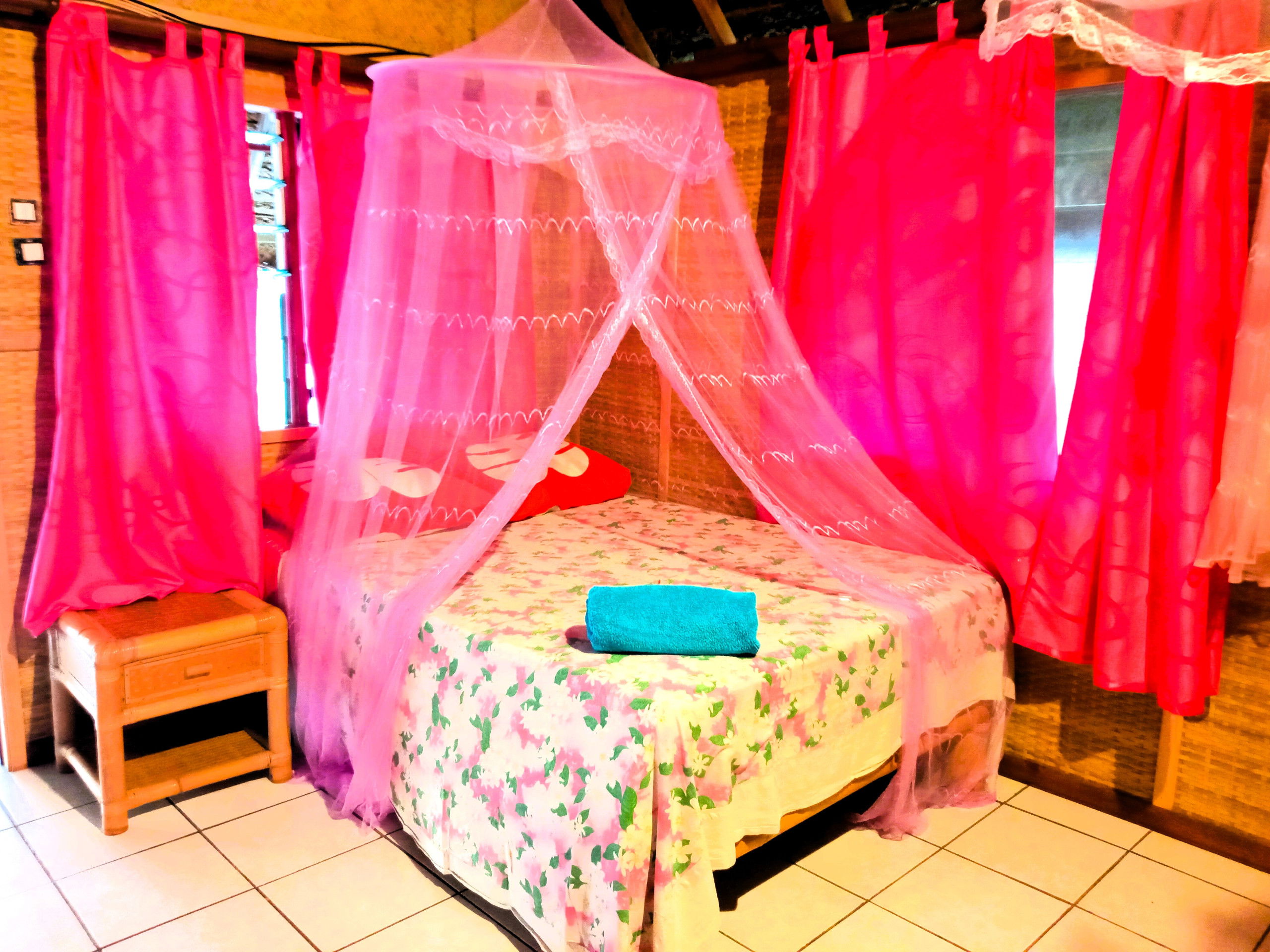 The Bungalow Pink Dream is located on the main motu, along a spacious white and pink sandy beach. In total, there are 6 holiday rental bungalows on the property. This is an individual bungalow with a capacity of 3 people.