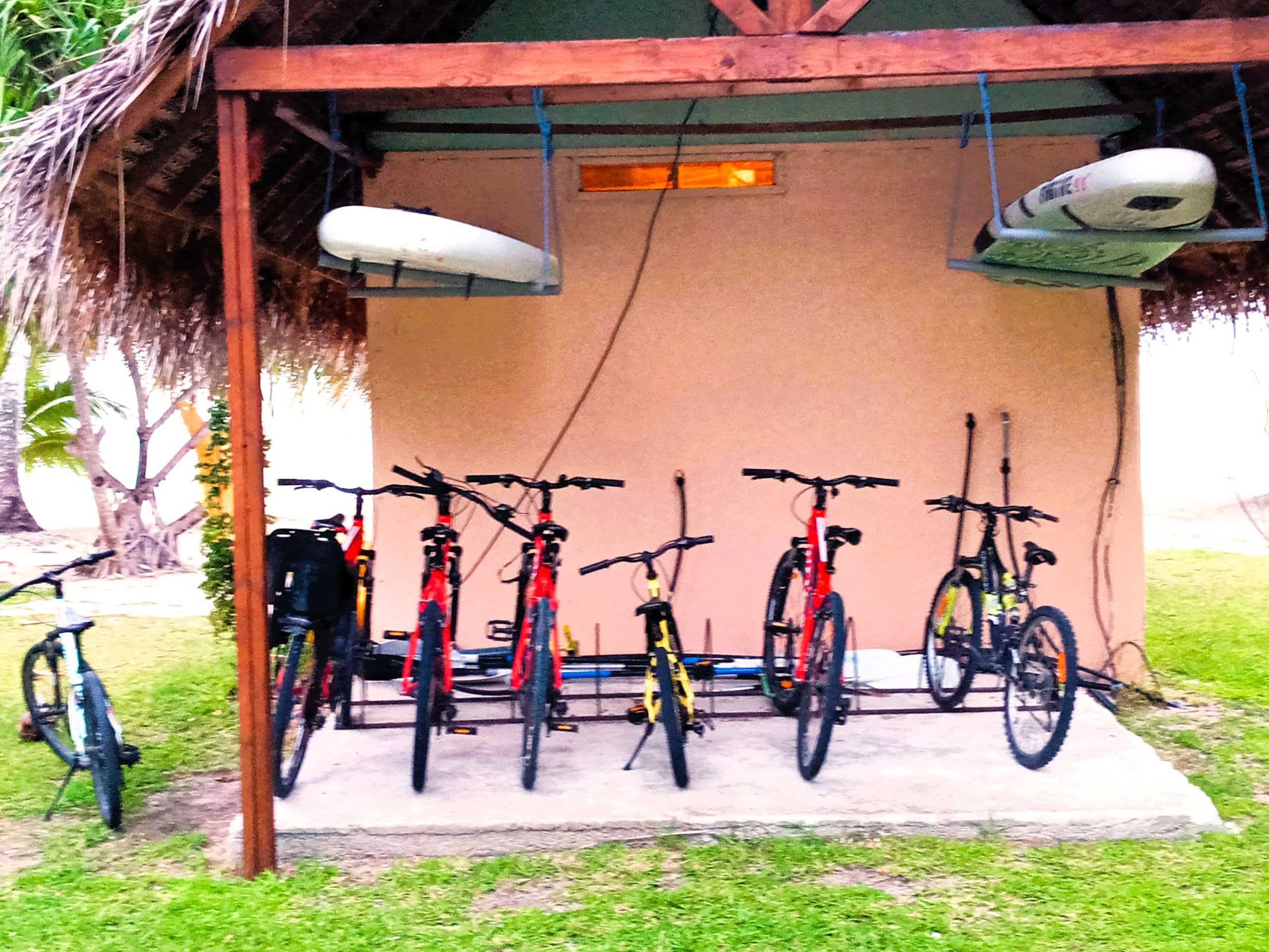 Built using local construction, it is simple, practical and will offer you everything necessary to spend sweet tropical nights by the lagoon. The bedroom is spacious with 1 double bed and 1 single bed, an air fan is available as well as a shelf for your personal belongings.