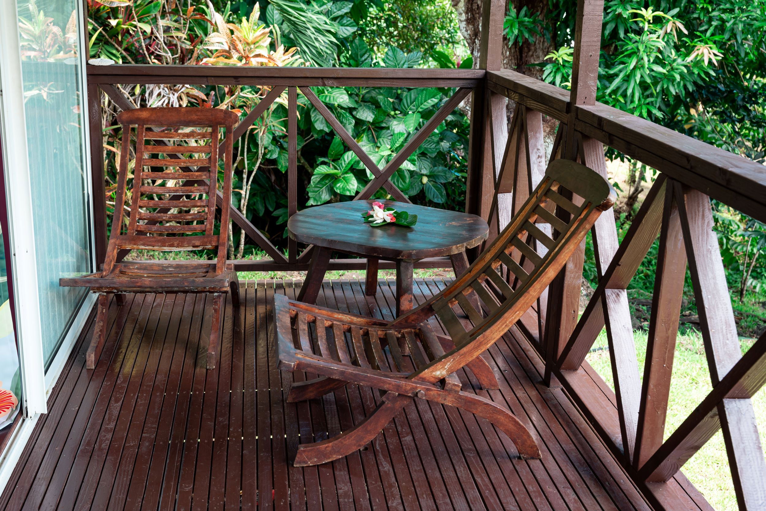 When you're ready to relax, make the most of the television to enjoy your favourite programmes. The bungalow opens onto a covered balcony furnished with a table and chairs, ideal for enjoying a morning coffee in the open air, relaxing or reading your favourite novel.