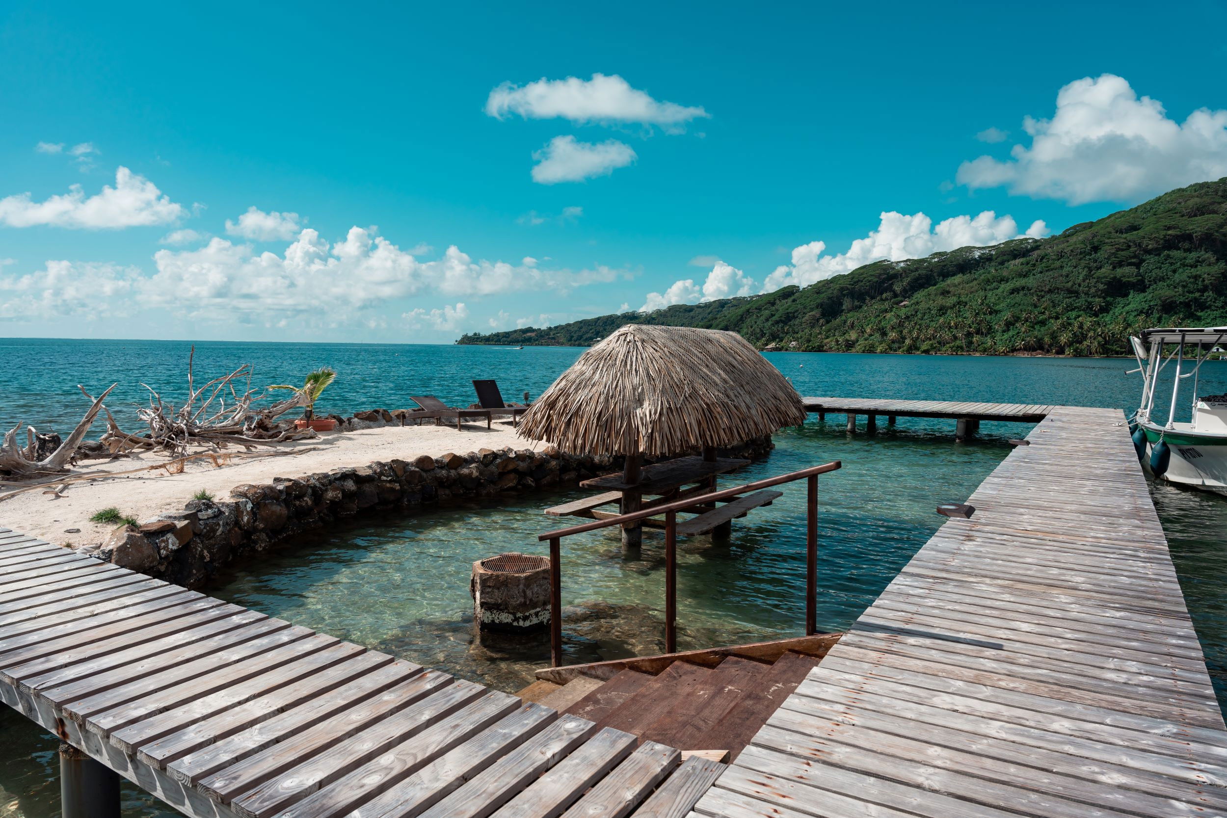 From the pontoon, you can fish, admire the view of the sunsets and enjoy Ha'amene Bay without moderation.