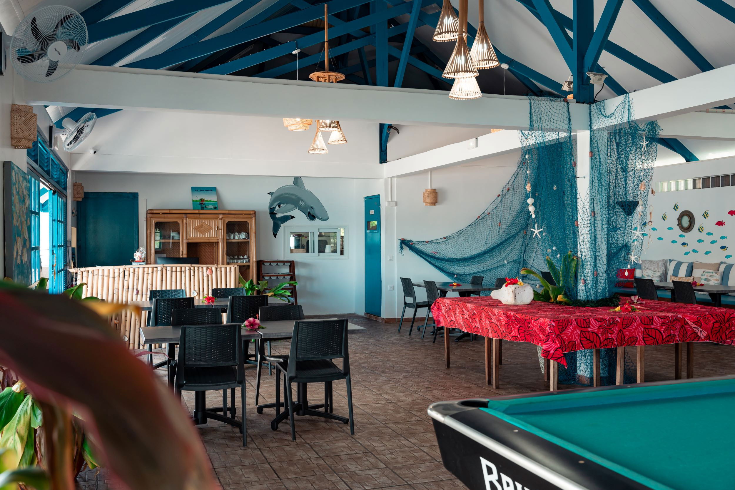 The bar offers a range of alcoholic and non-alcoholic drinks, including the traditional local Hinano beer. Drinks are available at an additional cost and must be paid for at the bar.