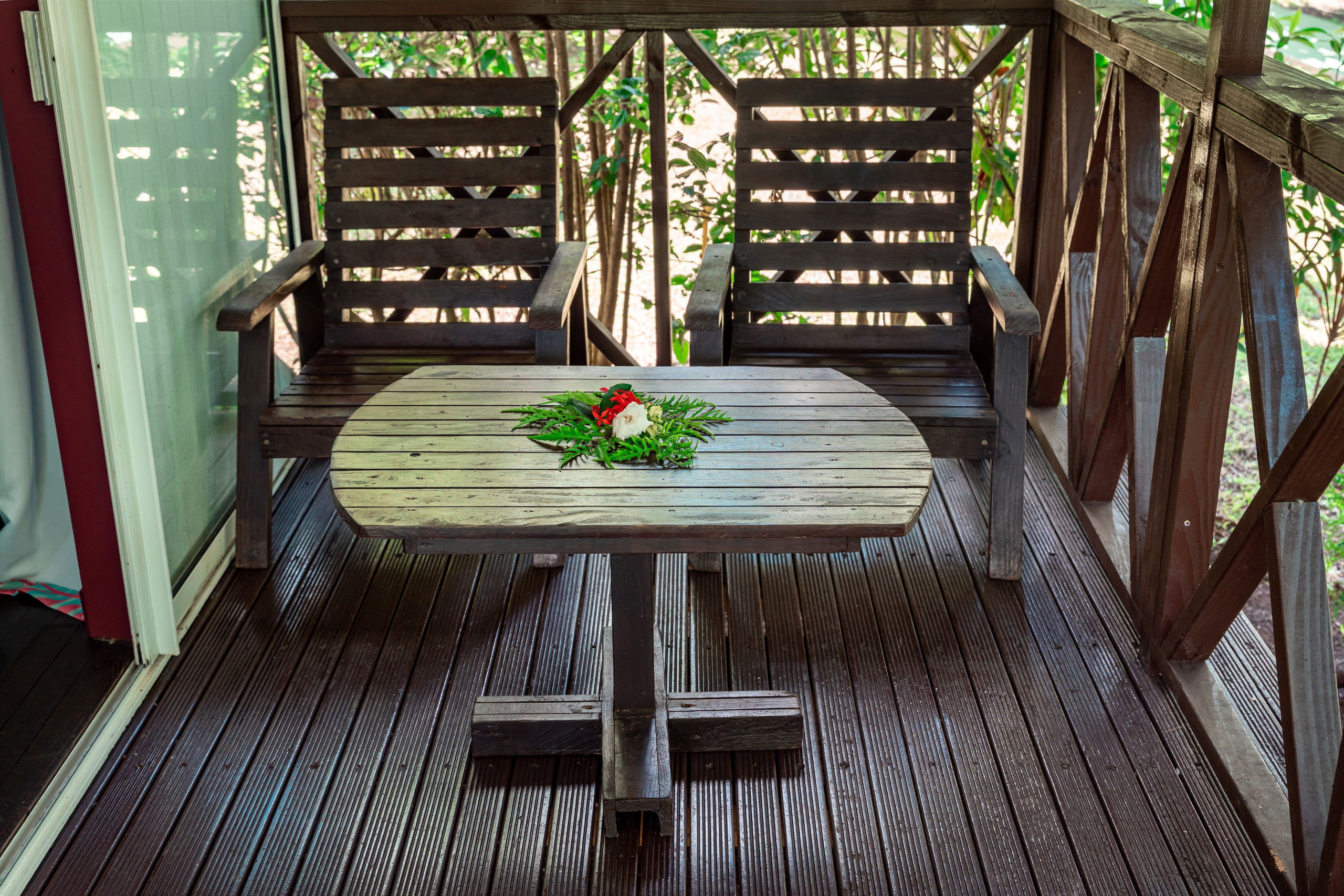 When you're ready to relax, make the most of the television to enjoy your favourite programmes. The bungalow opens onto a covered balcony furnished with a table and chairs, ideal for enjoying a morning coffee in the open air, relaxing or reading your favourite novel.