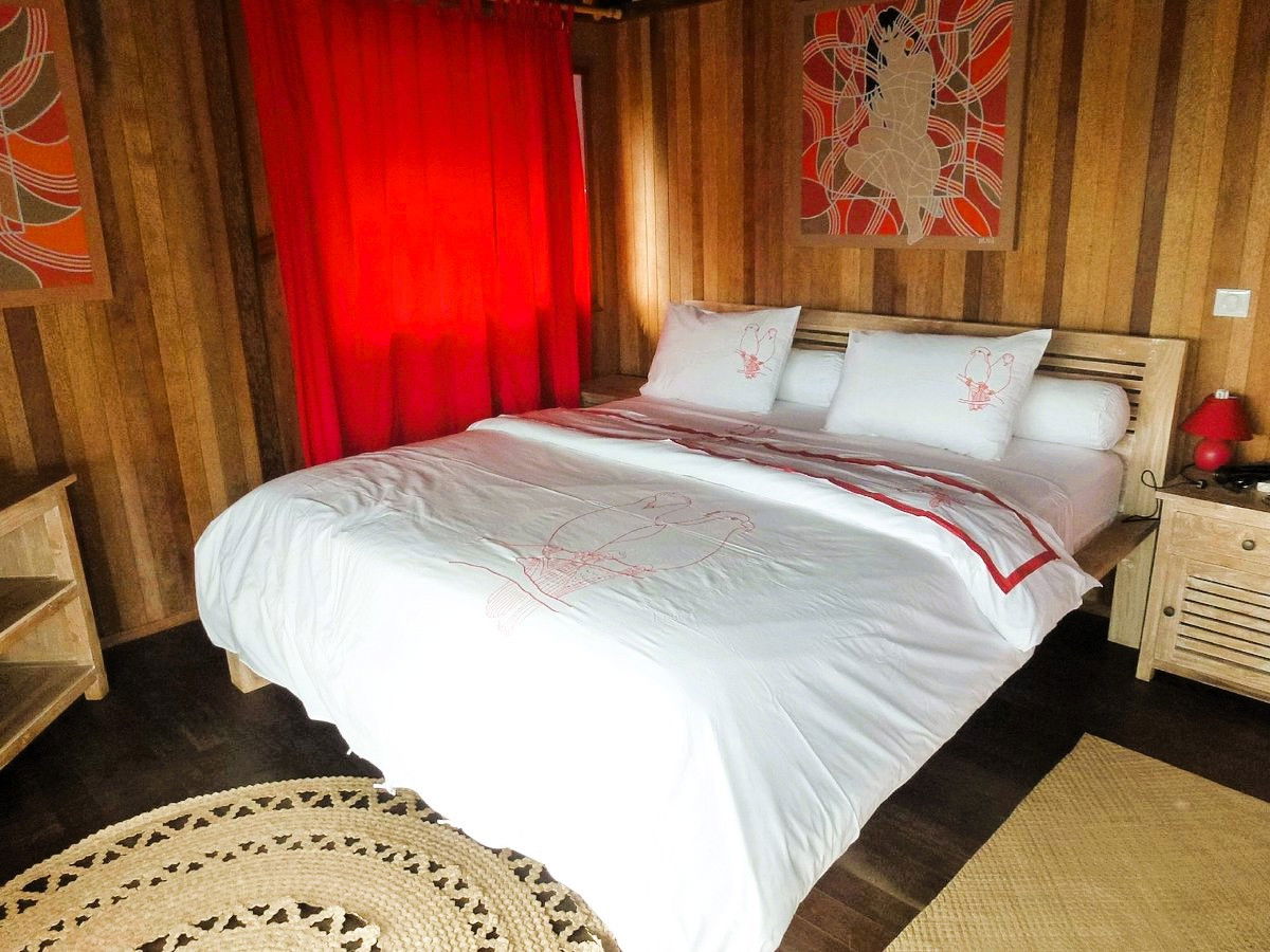 Imagine yourself in a bungalow offering a magnificent view of nature, bathed in the gentle light of the sun filtering through the surrounding trees. You will find all the comfort you need to relax and rest after a full day exploring the wonders of the island. The room is equipped with a king-size bed and a single bed, mosquito nets, and a private bathroom with shower and hot water, sink and toilet, ensuring your privacy and well-being.