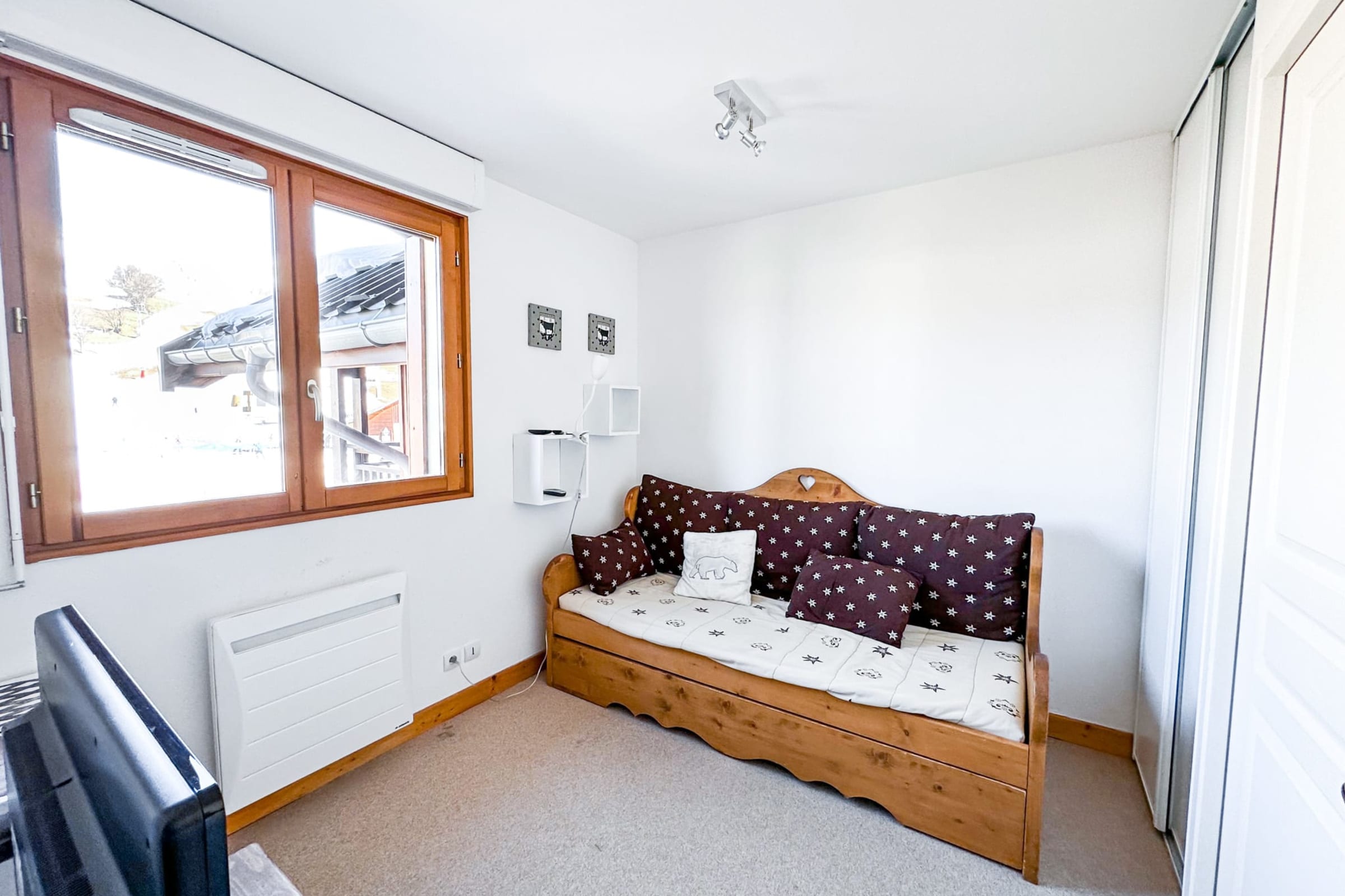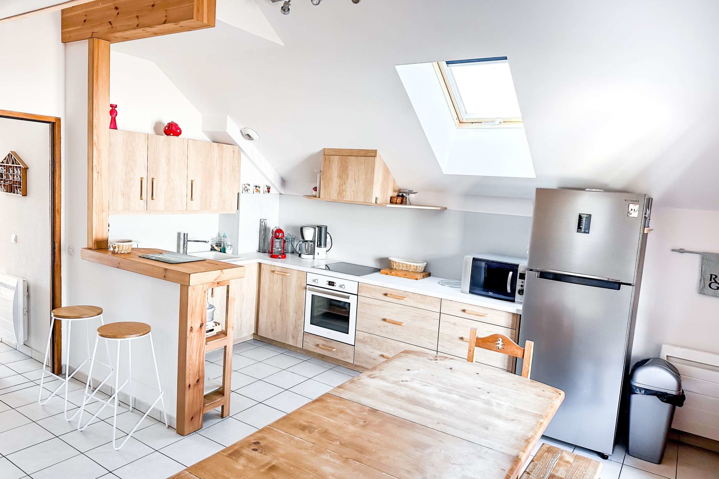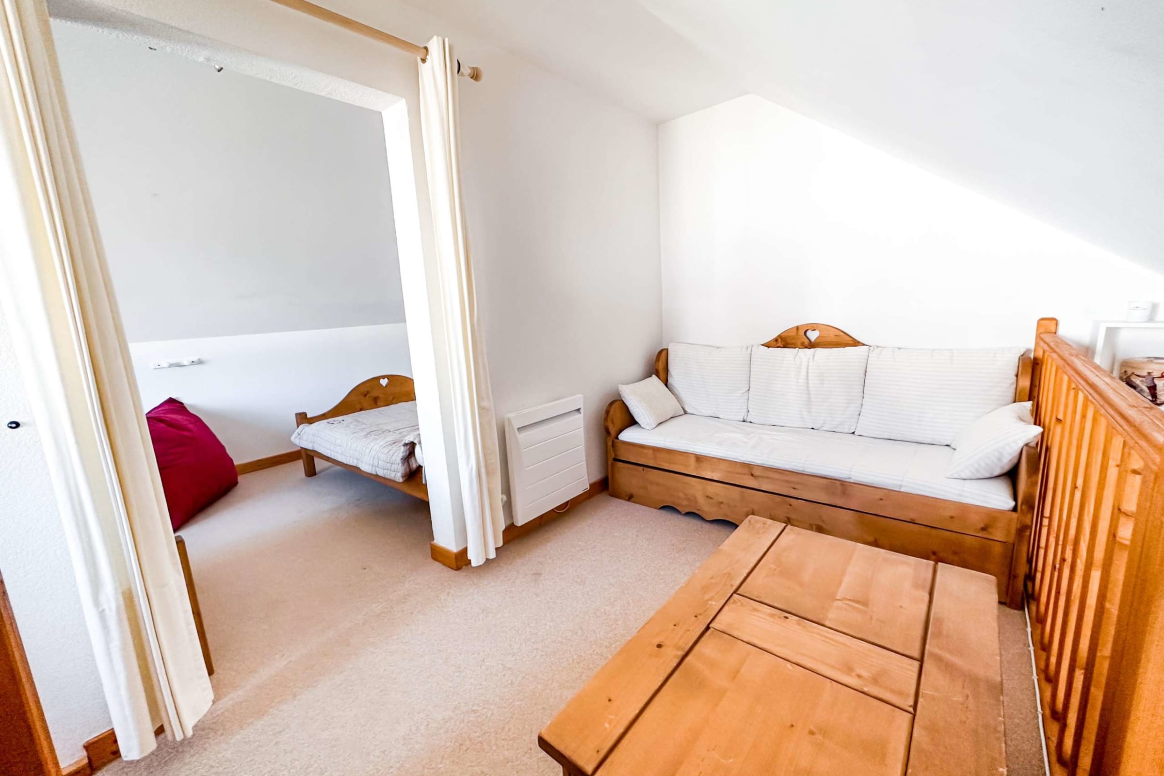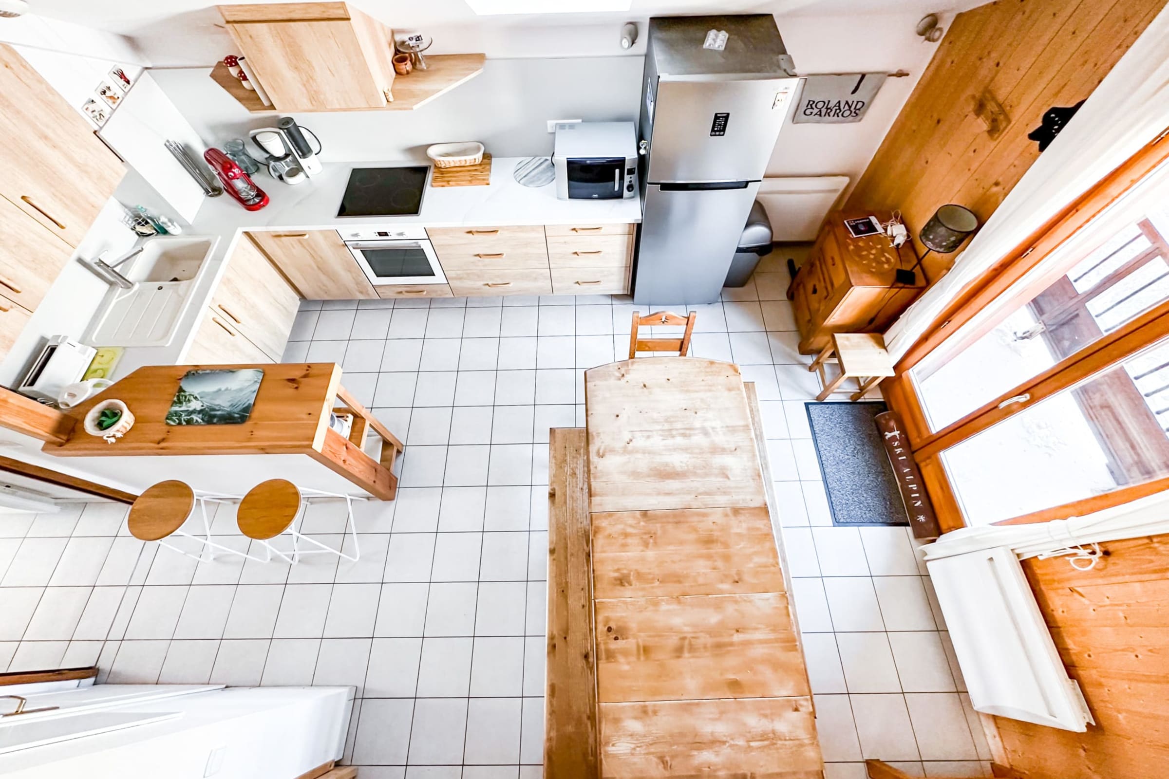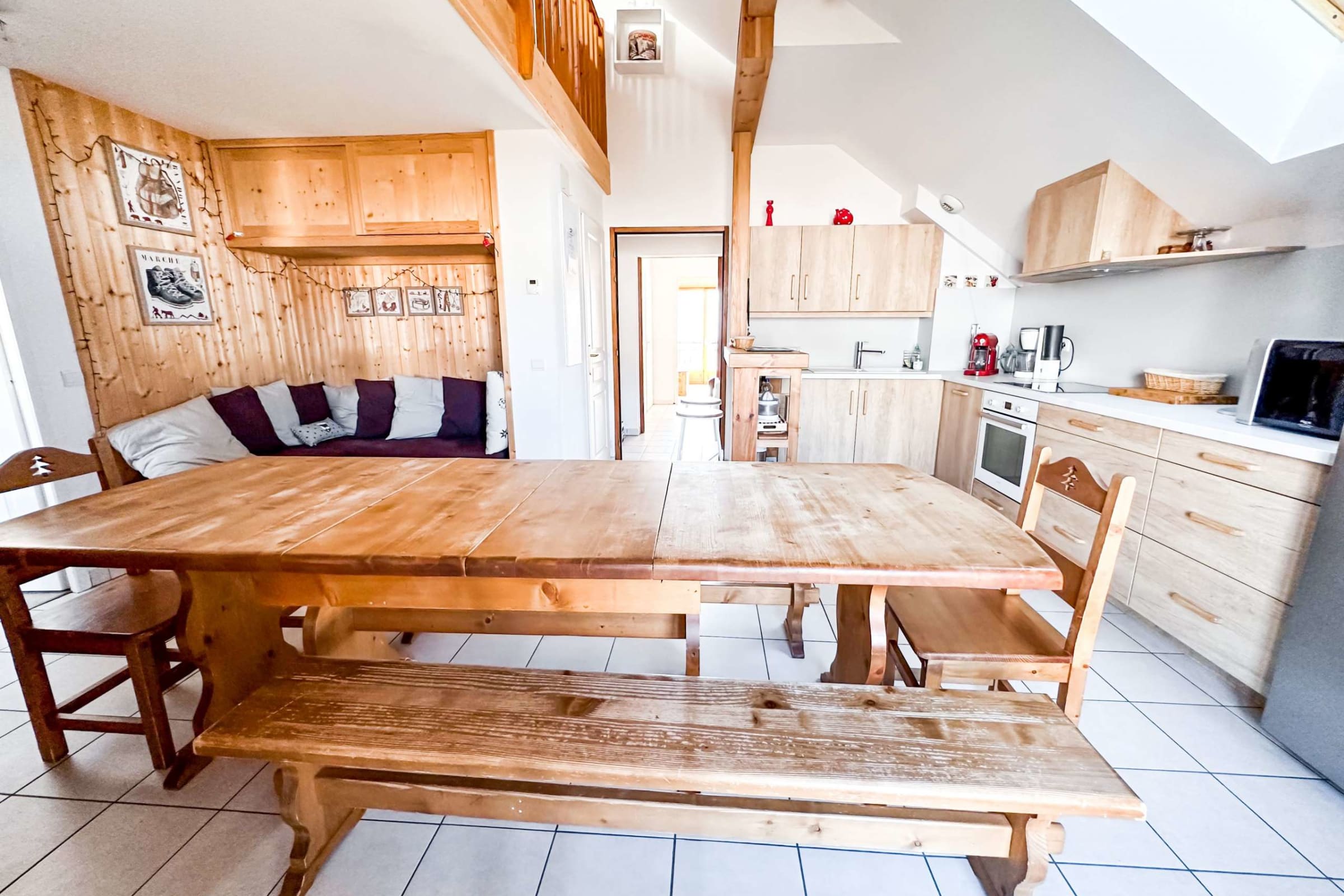 Located on the second floor, right on the snow front at the Col du Mollard, this 100 m² apartment can accommodate up to 12 people. It features 3 separate bedrooms as well as a dormitory upstairs, offering great flexibility for groups and families. Although the resort is primarily known for its ski area, the apartment is available for rent all year round.