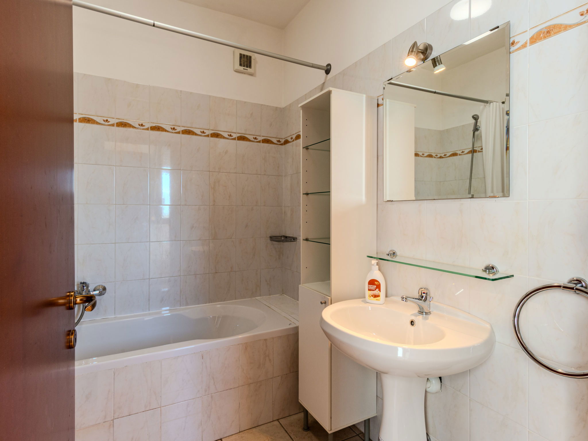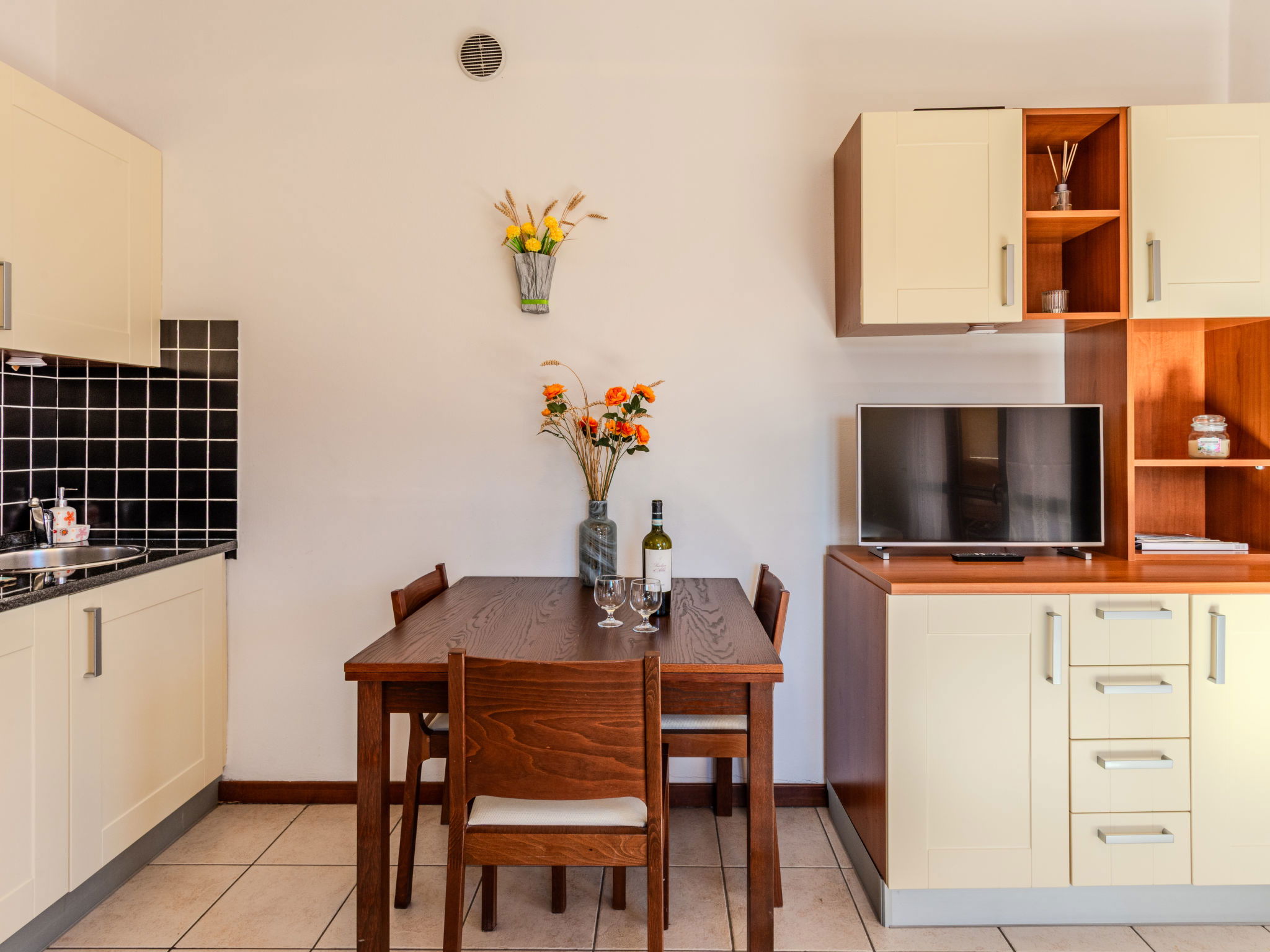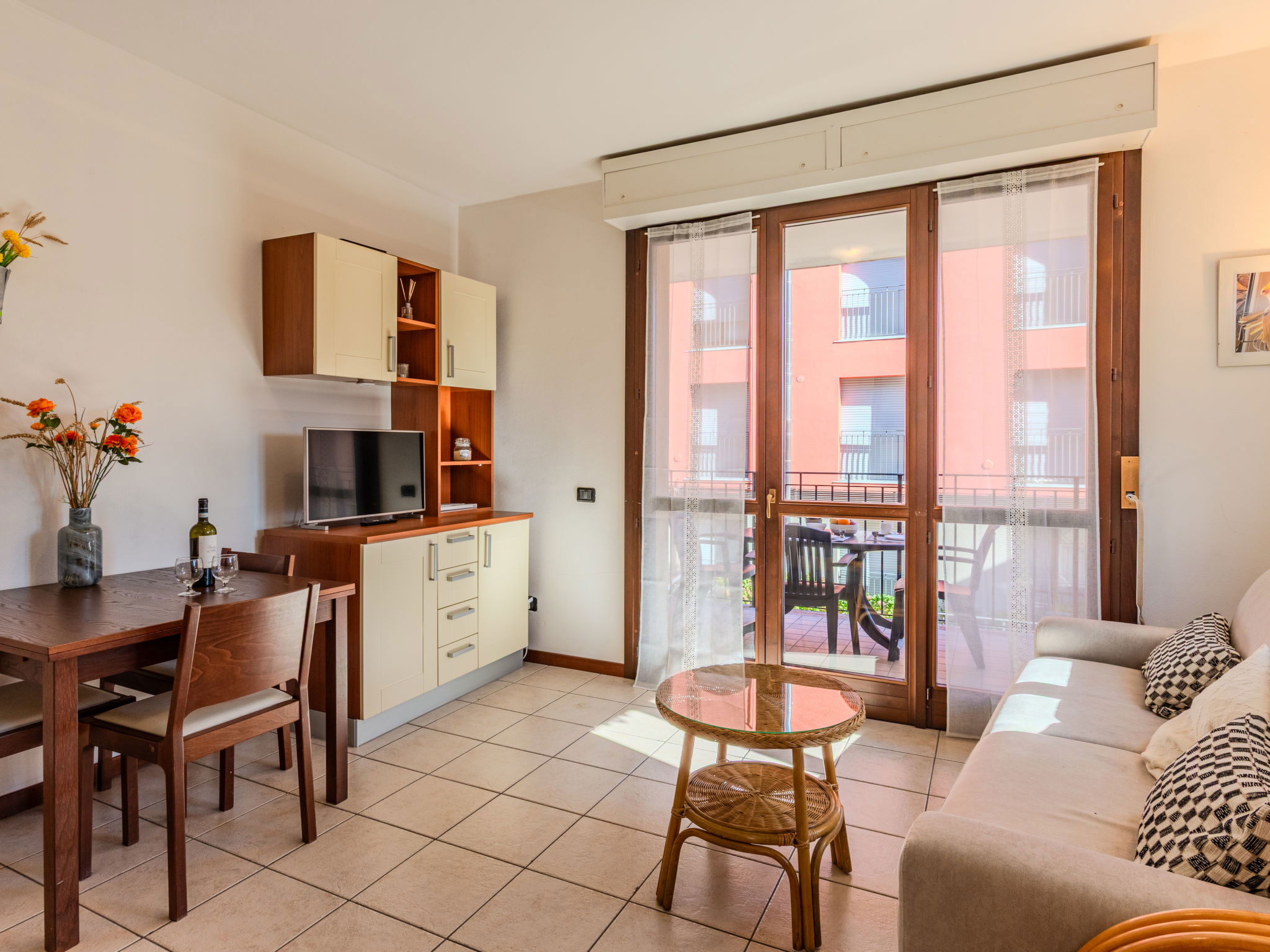 "Mimosa1", 2-room apartment 50 m2, on the ground floor. Very practical and beautiful furnishings: living room with dining table, TV and fan. Exit to the balcony. 1 double bedroom with 1 double bed. Kitchenette (oven, 4 induction hot plates, toaster, kettle, microwave, freezer). Bath/bidet/WC. Gas heating. Heating available only from 15.10. to 15.04. Natural stone floors. Balcony. Balcony furniture, box-room. Side view of the lake and the mountains. Facilities: hair dryer. Garage space n 1 (extra) (1 car). E-charging station. Please note: suitable for families. Maximum 1 pet/ dog allowed. Smoke alarm, fire extinguisher.
