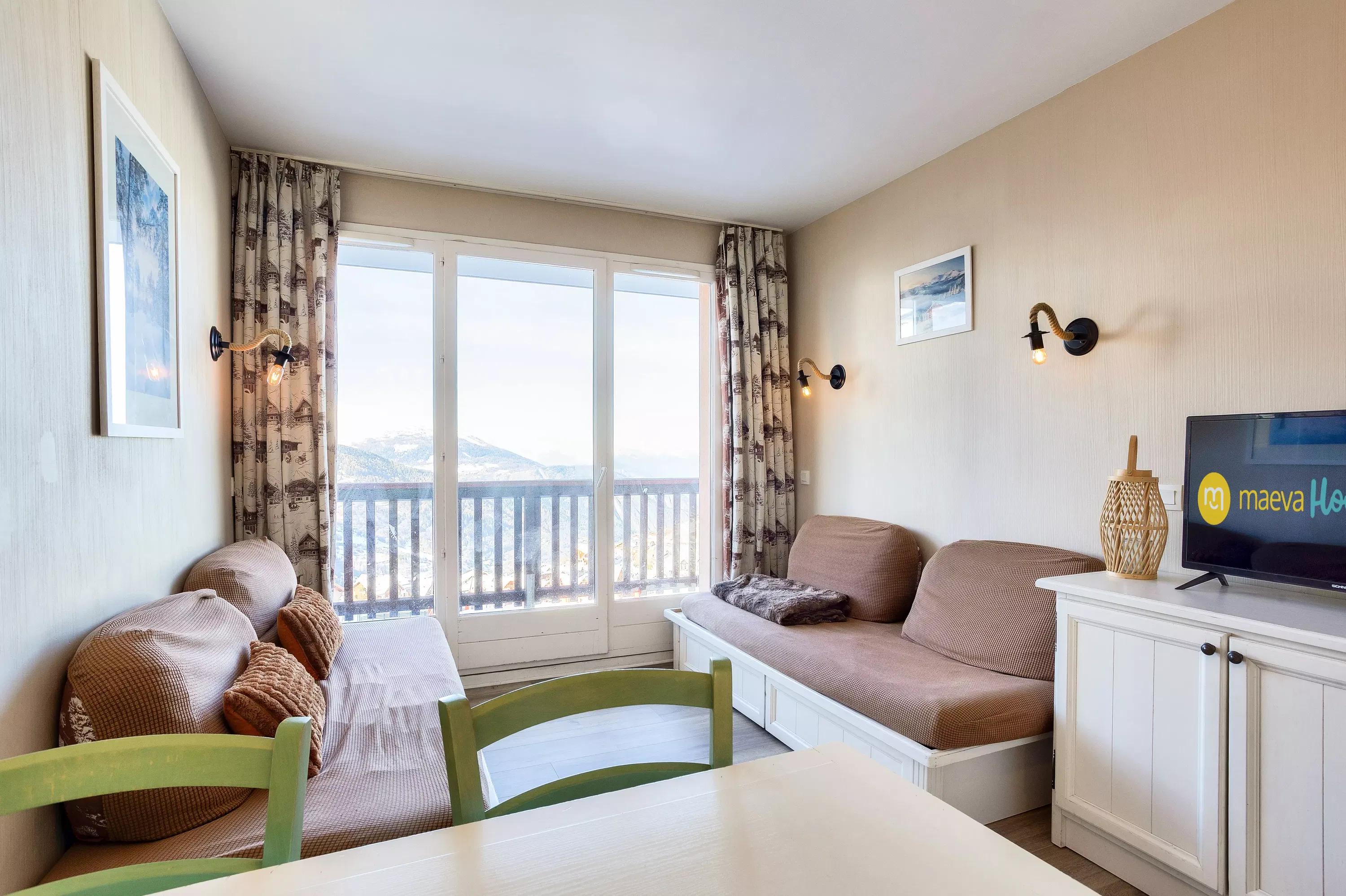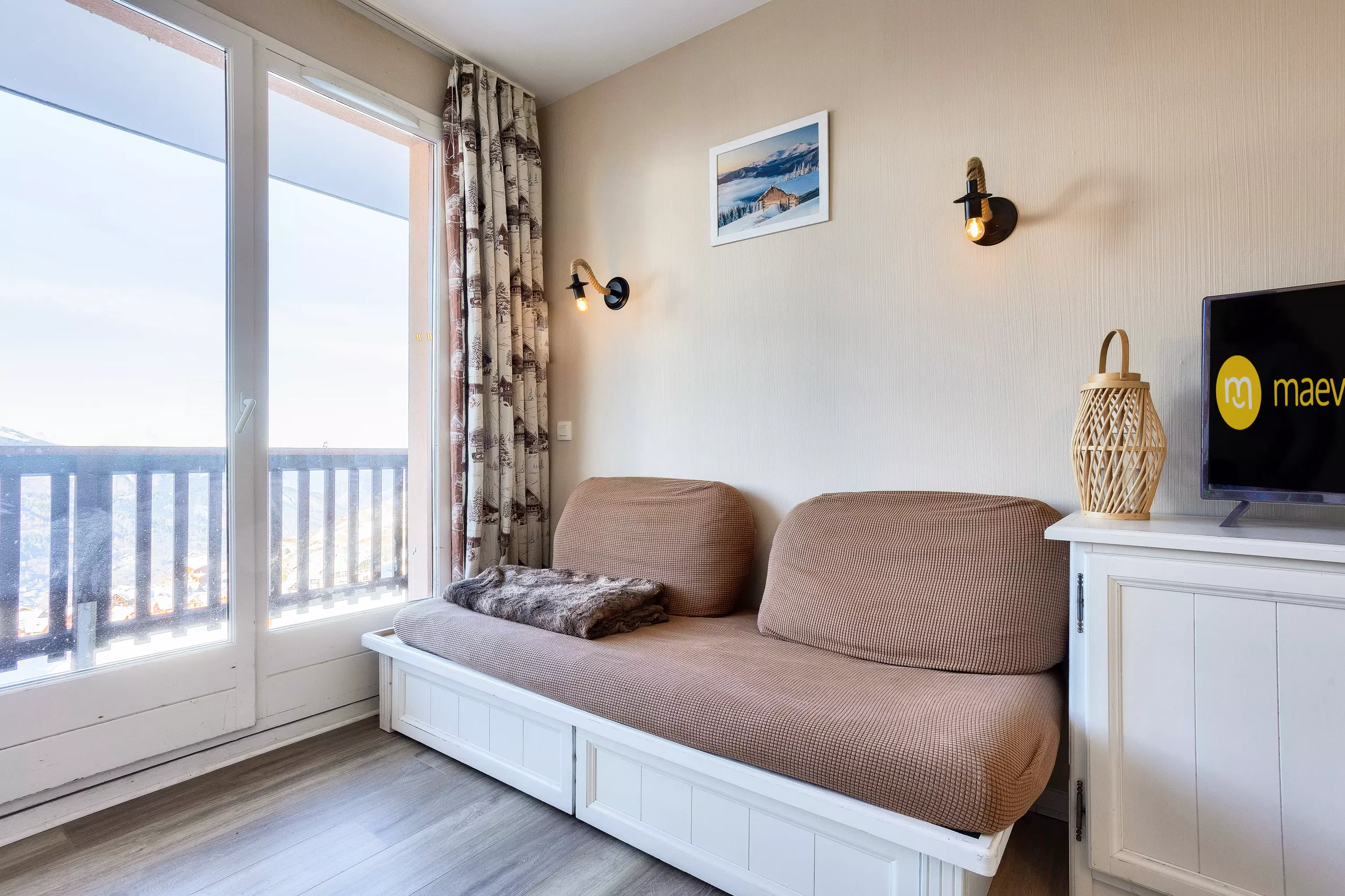 The advantages of your rental: Located on the 4th floor with elevator access, this apartment benefits from a southwest exposure and mountain views. Less than 100 meters from the slopes, shops, and activities, it offers an ideal location for getting around on foot. It includes a dishwasher and a dedicated outdoor parking space.