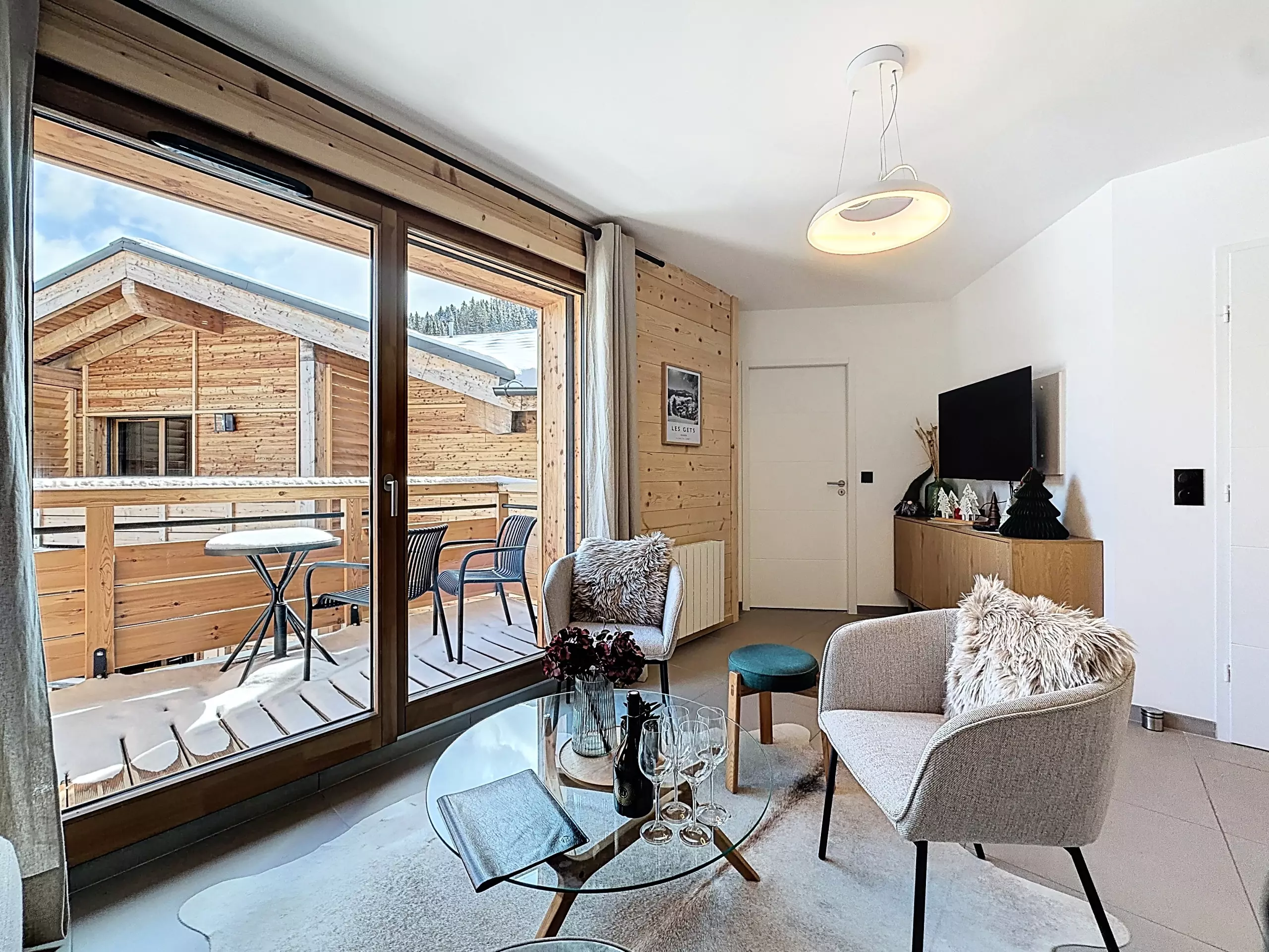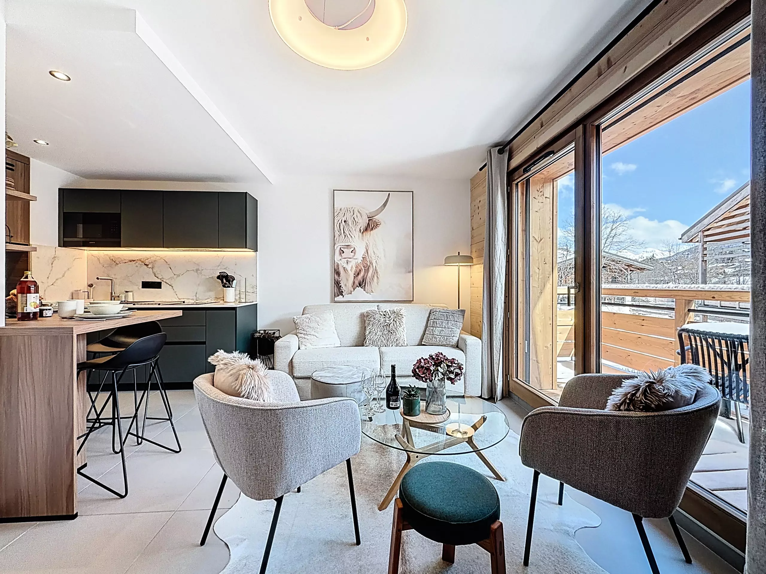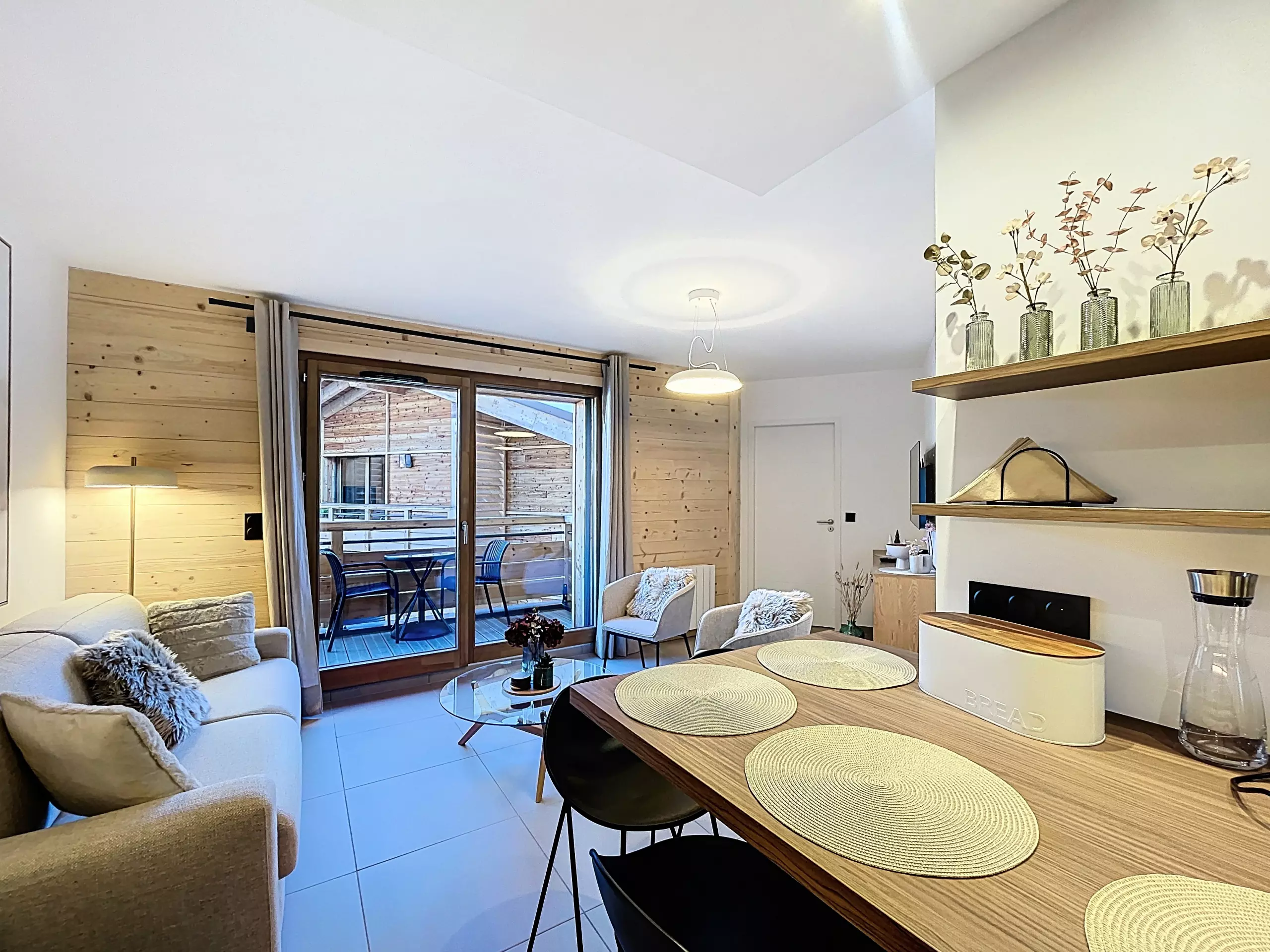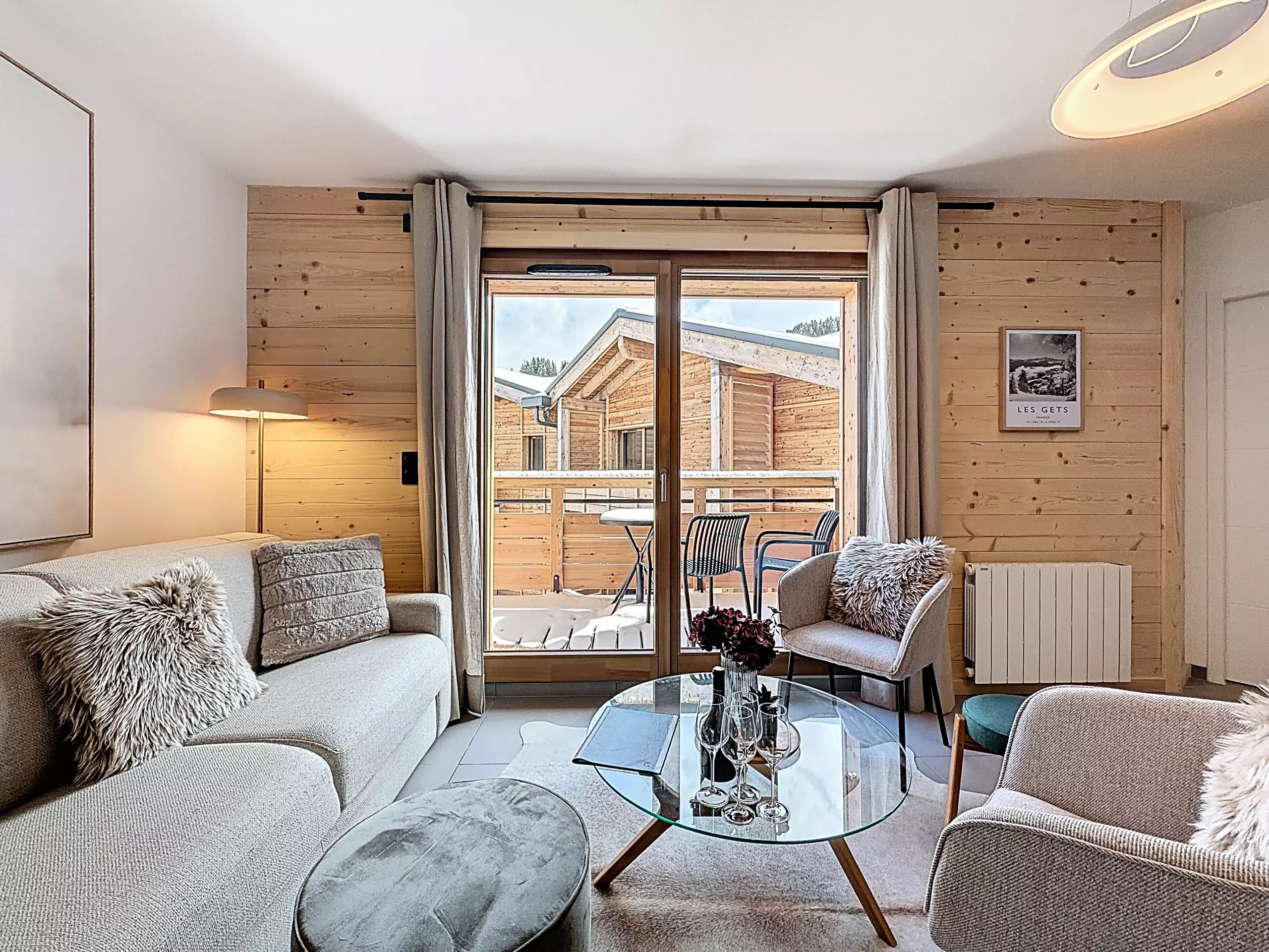 Discover this welcoming 45m² apartment in Les Gets, ideal for a stay with family or friends. Just 300 meters from the Perrières ski lifts, this modern and elegantly furnished apartment offers direct access to the slopes.