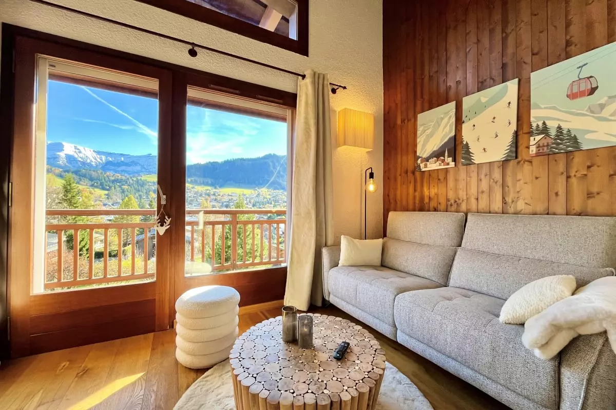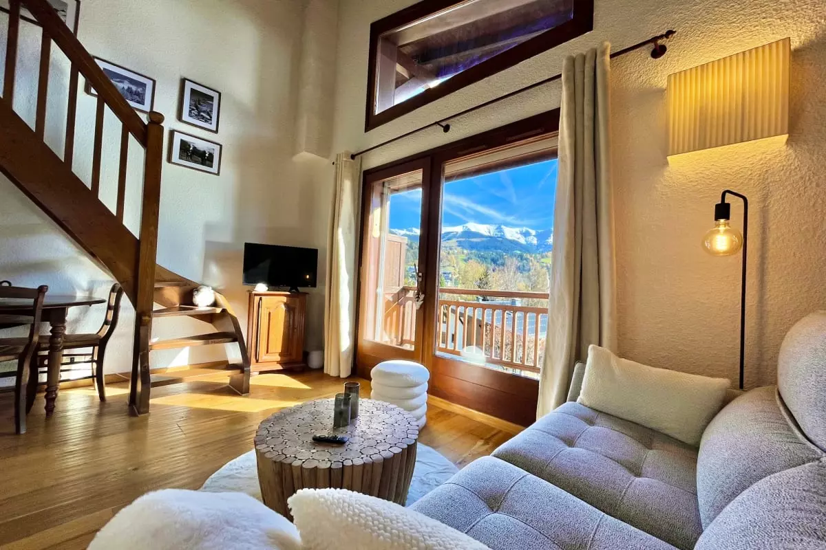 The fully equipped kitchen makes meal preparation a breeze, while the two functional shower rooms ensure optimal comfort. After a busy day, relax in the comfortable living room or enjoy a moment of tranquility on the furnished balcony, offering unobstructed and spectacular views of the Mont Blanc massif, the surrounding mountains, and the charming village of Megève.
