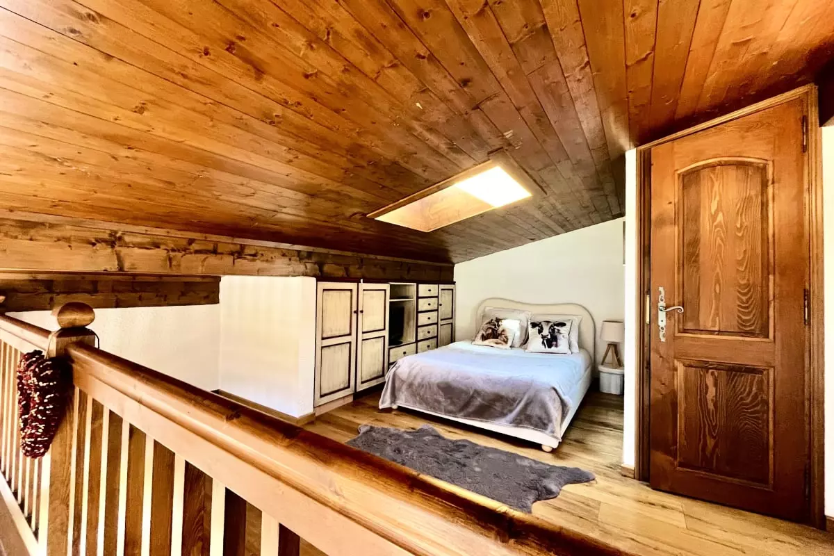 This spacious accommodation is perfect for up to four people. It includes a bedroom with a double bed (140 x 190 cm) and an open mezzanine also equipped with a double bed (140 x 190 cm).
