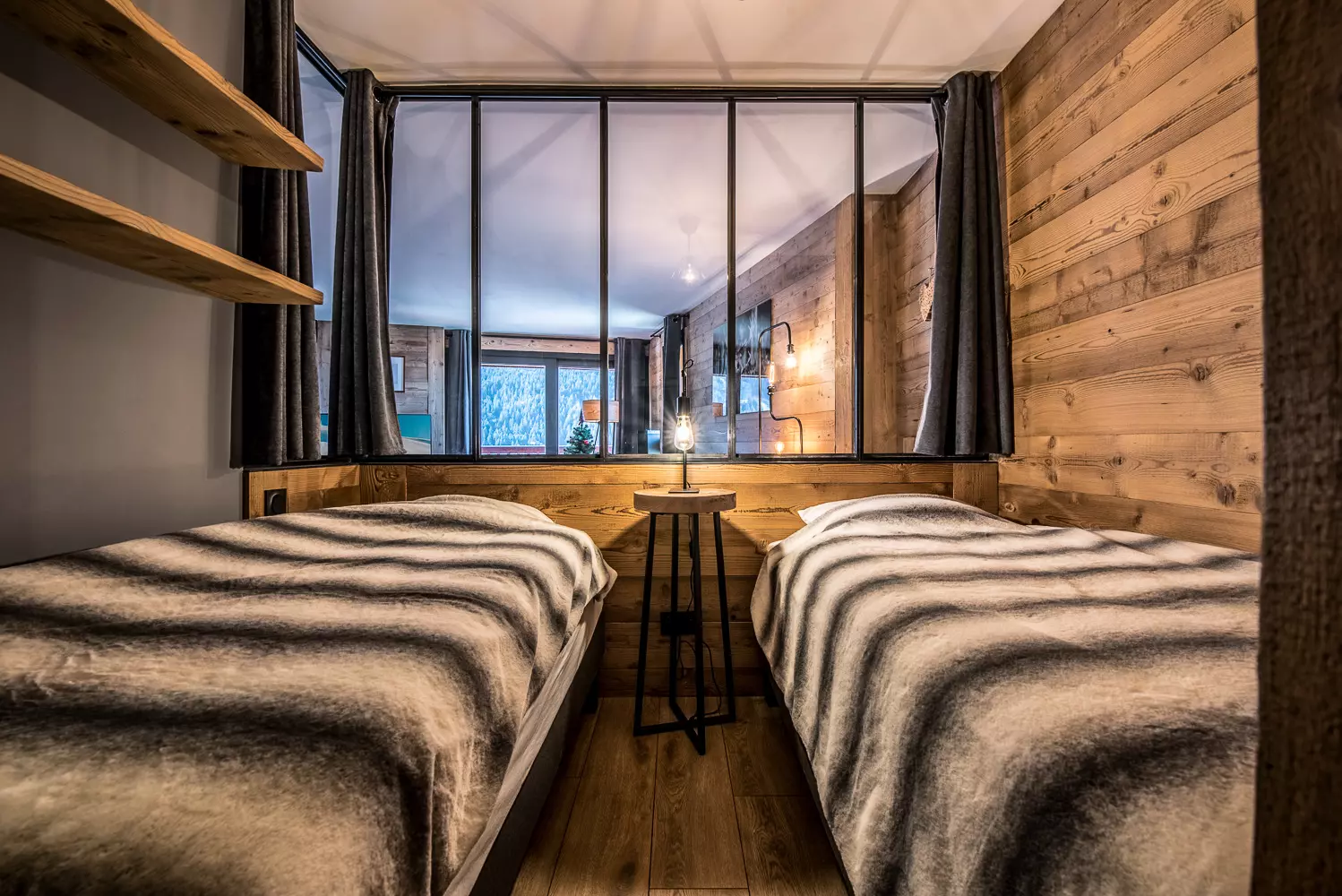 Bedroom 2: two single beds 90 x 190 cm (glass partitions overlooking the living room)