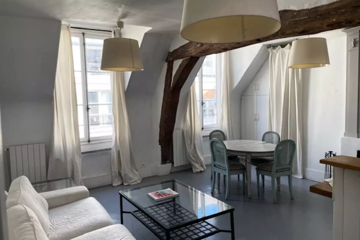 Discover this elegant duplex located in the heart of the Marais, in a 17th century hotel, formerly inhabited by the writer Scarron and Madame de Maintenon.